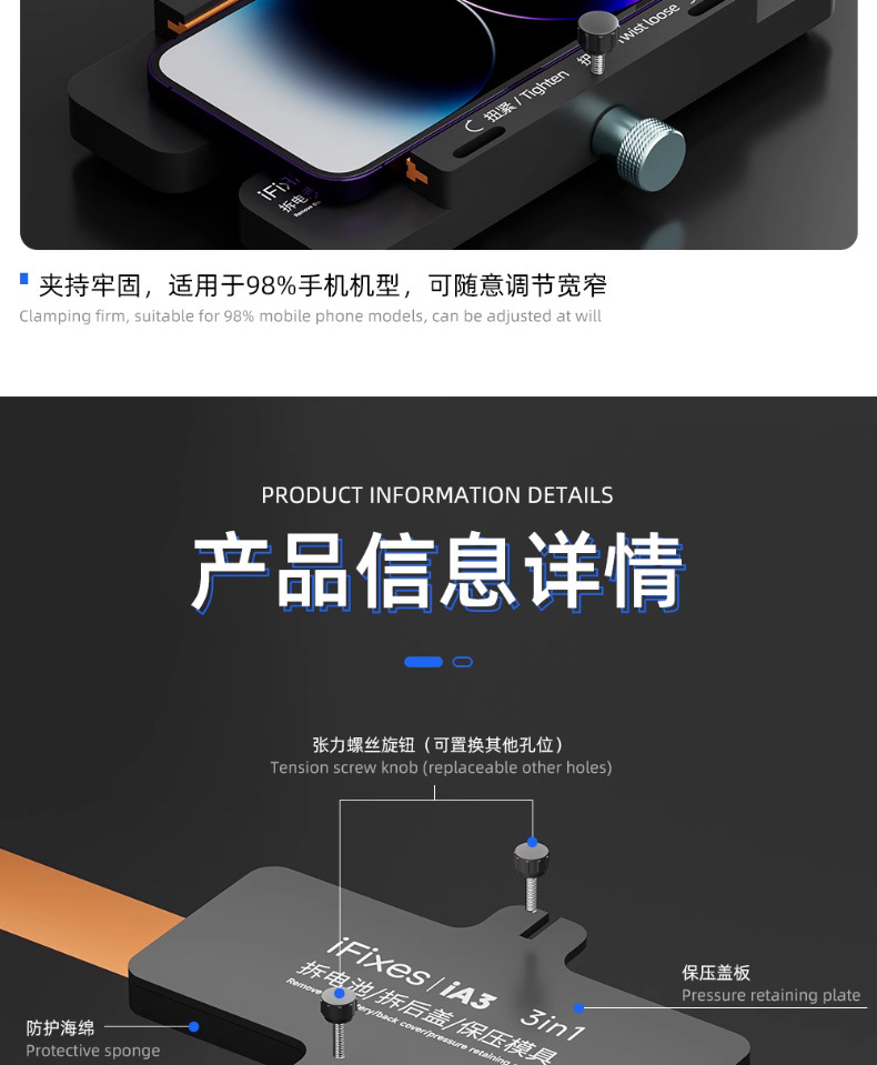 IA3 다기능 고정 애플 스크린 측면 교수형 고정 장치 제거 후면 커버 유리 변경 후면 커버 압력 유지 도구