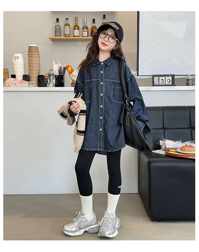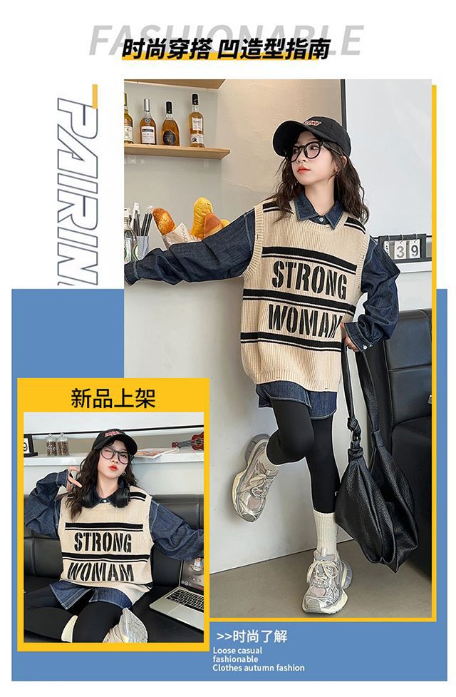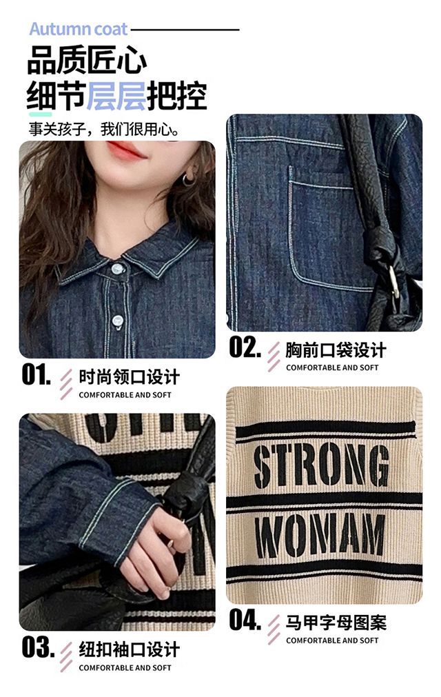 여아 가을 정장 2025 새로운 인터넷 연예인 여아 조끼 바닥 셔츠 3 피스 세트 큰 어린이 유행 가을 옷스토어 가기