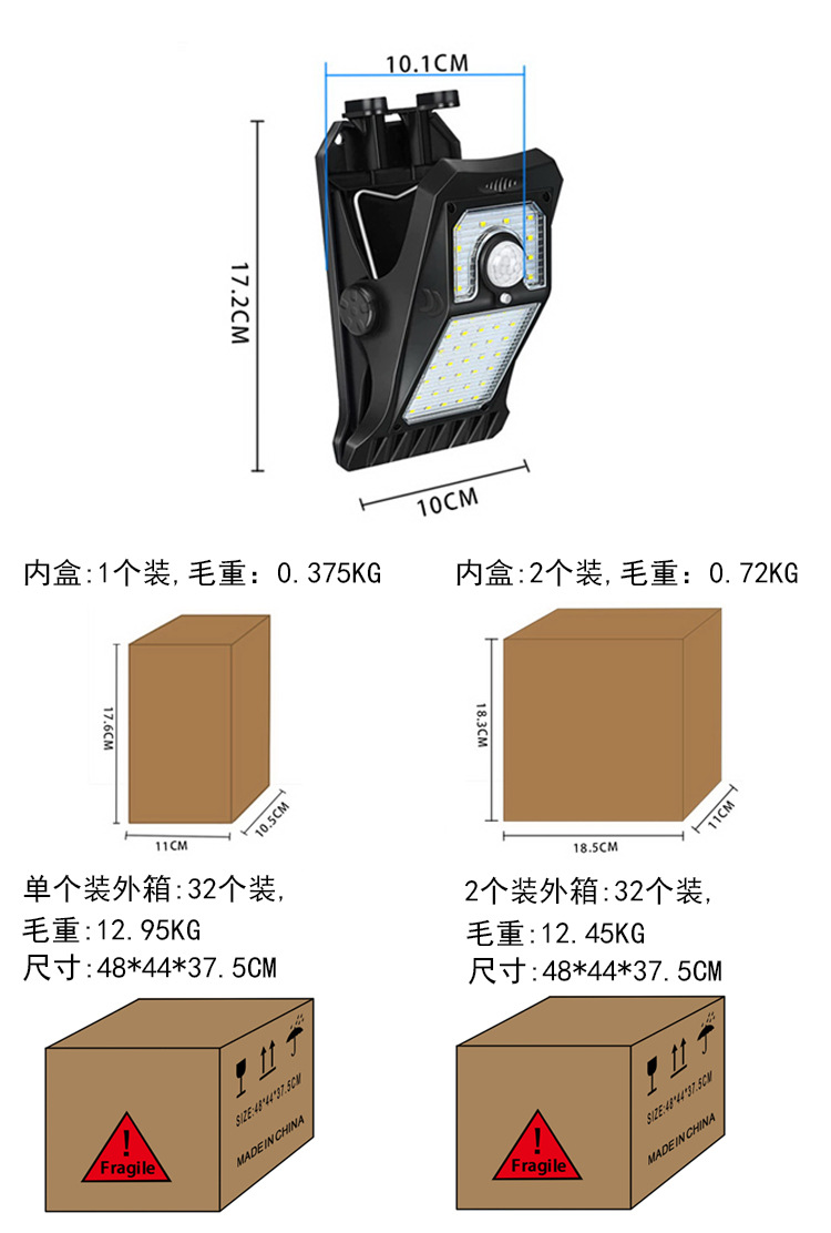 태양 빛 야외 클립 정원 빛 어두운 거리 빛 가구 벽 램프 새로운 유도 방수 태양 빛