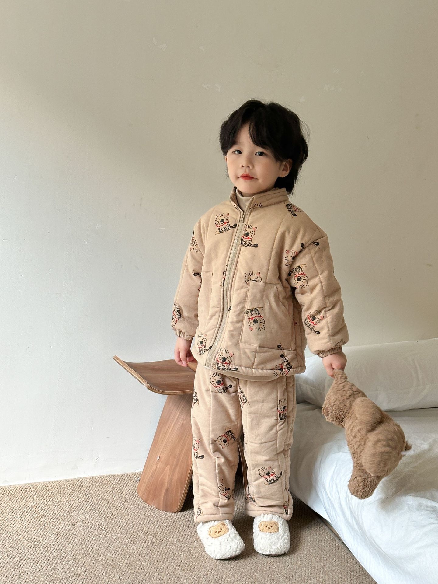 어린이 잠옷 겨울 두꺼운 소년의 따뜻한 아기 기모 3 층 퀼트 소녀 어린이 집 옷 세트