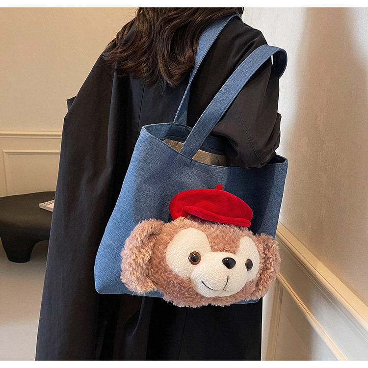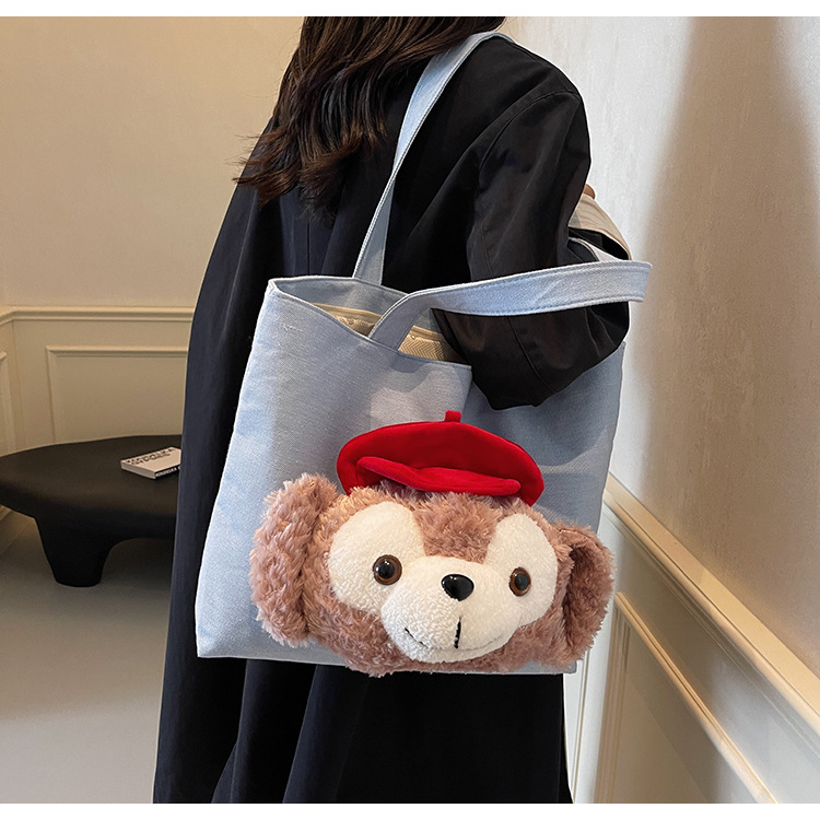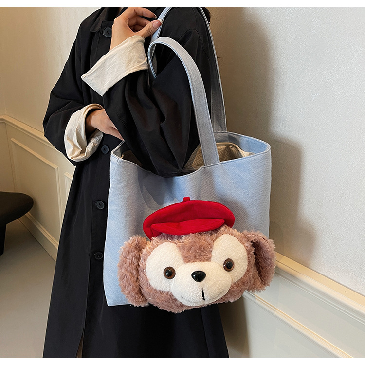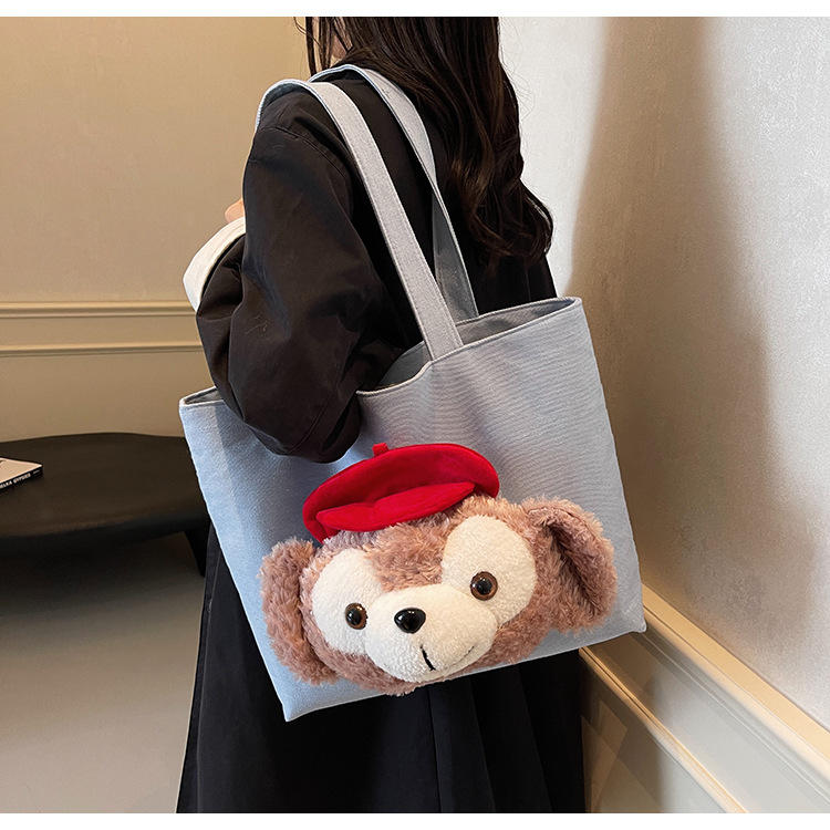 귀여운 패션 캔버스 가방 여성의 가을과 겨울 2024 새로운 캐주얼 올 매치 대용량 어깨 핸드 토트 백