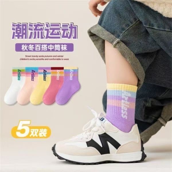 여아 양말 봄 여름용 중간 길이 양말 핑크 딸기곰 어린이 양말 얇은 가을용 귀여운 양말