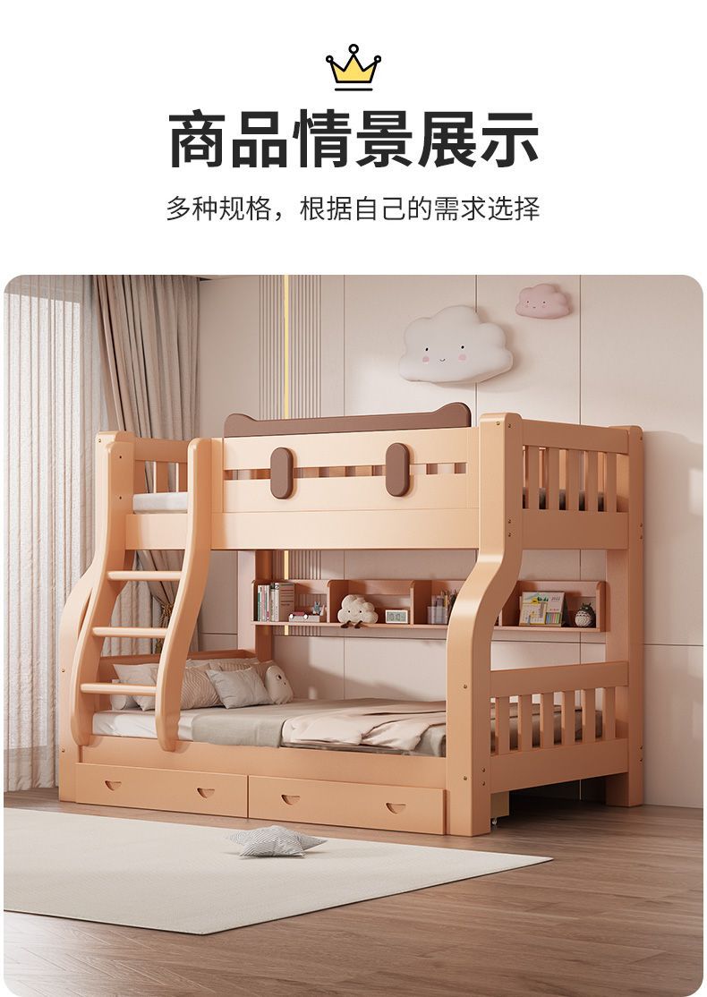 풀 솔리드 우드 침대 벙크 침대 높고 낮은 침대 다기능 2 층 조합 엄마와 아이 침대 어린이 침대 나무 침대
