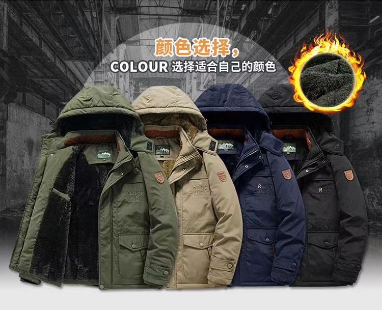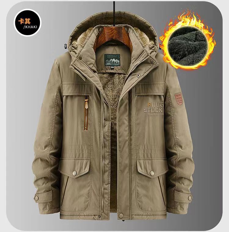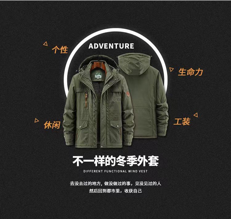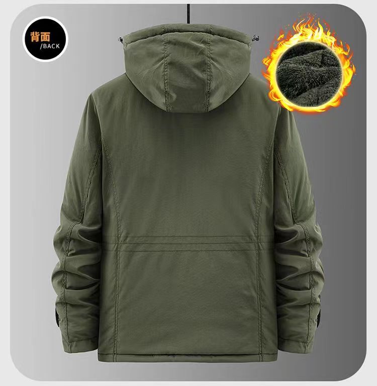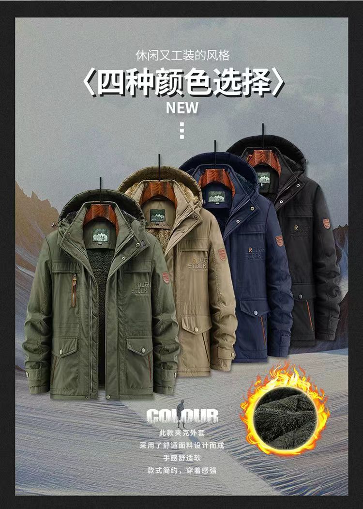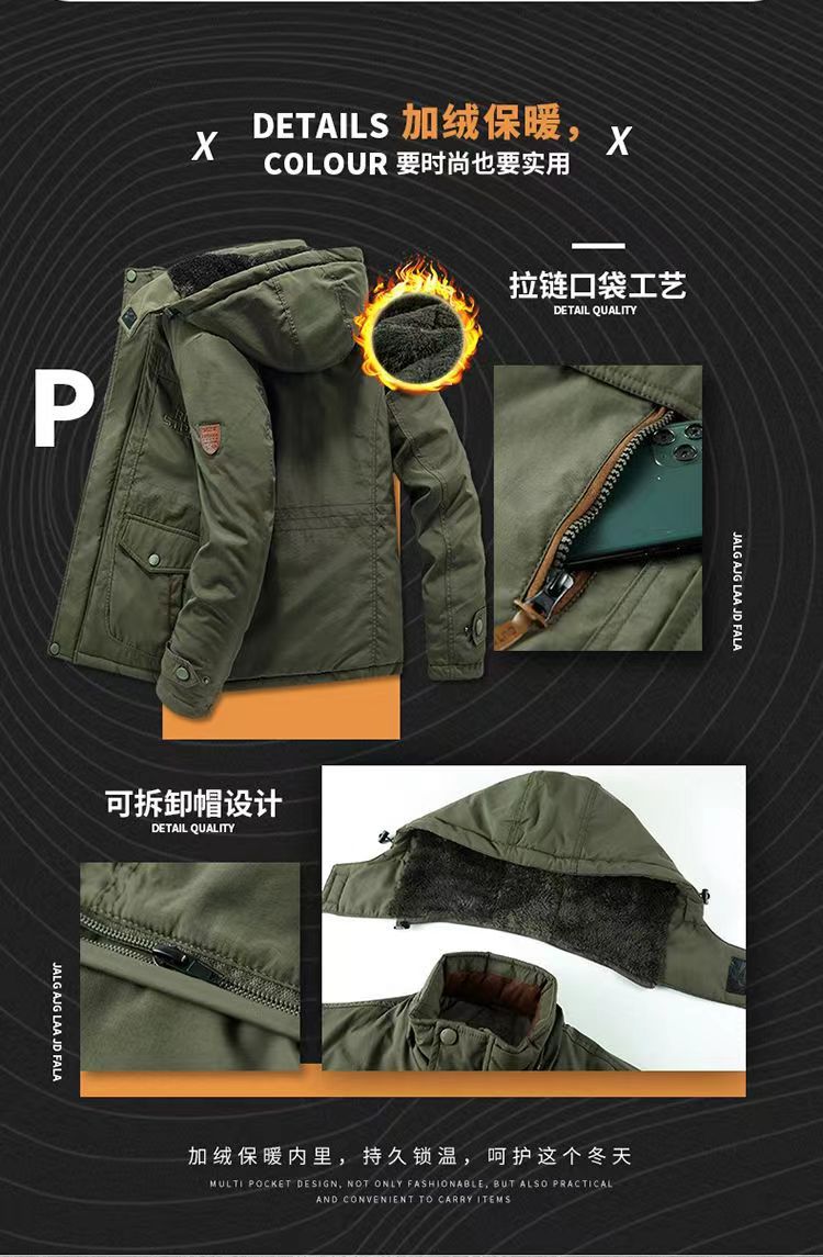 2024 새로운 남성 기모 야외 면화 옷 국경 대외 무역 가을과 겨울 느슨한 도구 따뜻한 모자 끄기 재킷