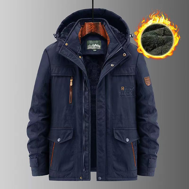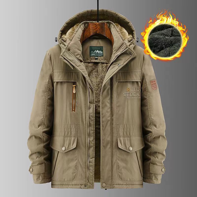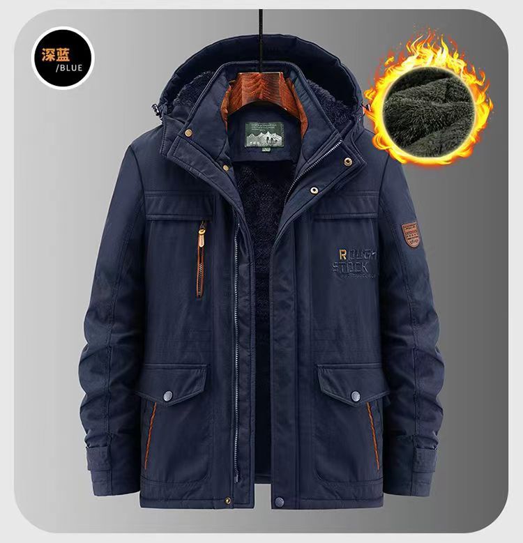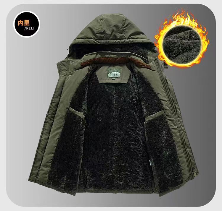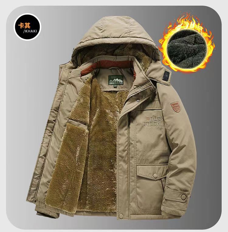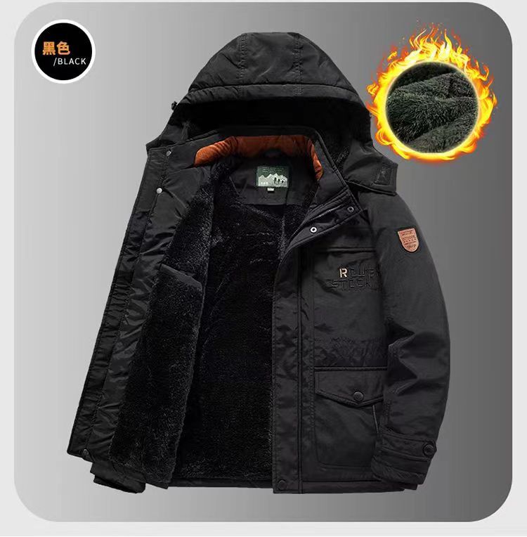 2024 새로운 남성 기모 야외 면화 옷 국경 대외 무역 가을과 겨울 느슨한 도구 따뜻한 모자 끄기 재킷