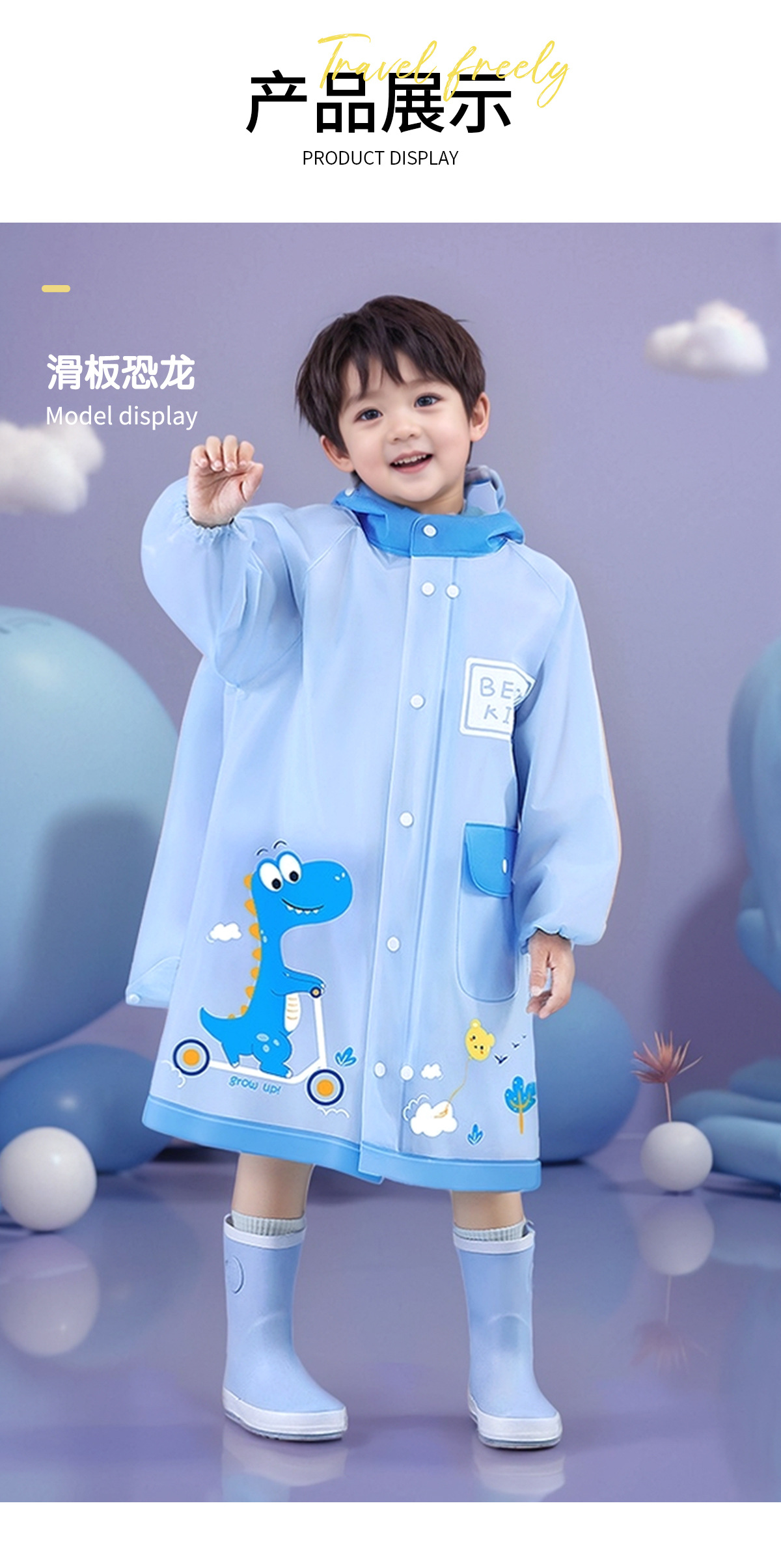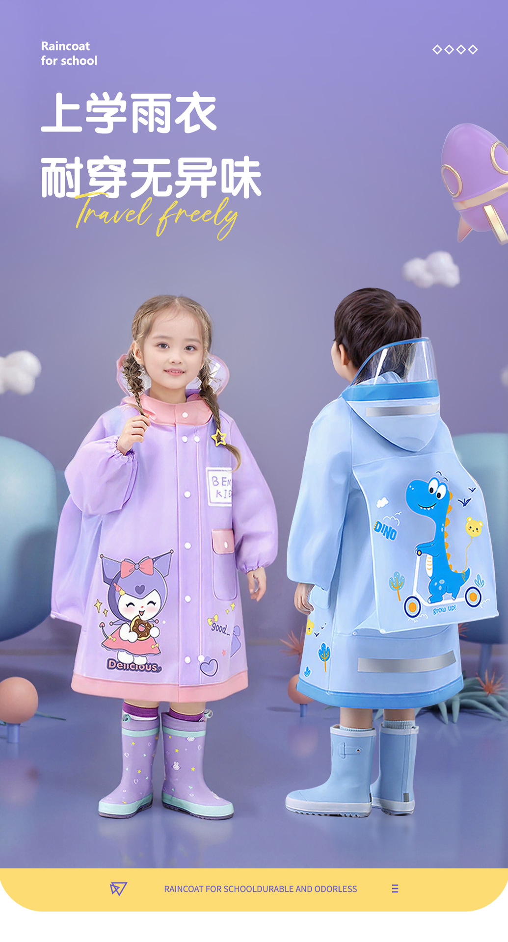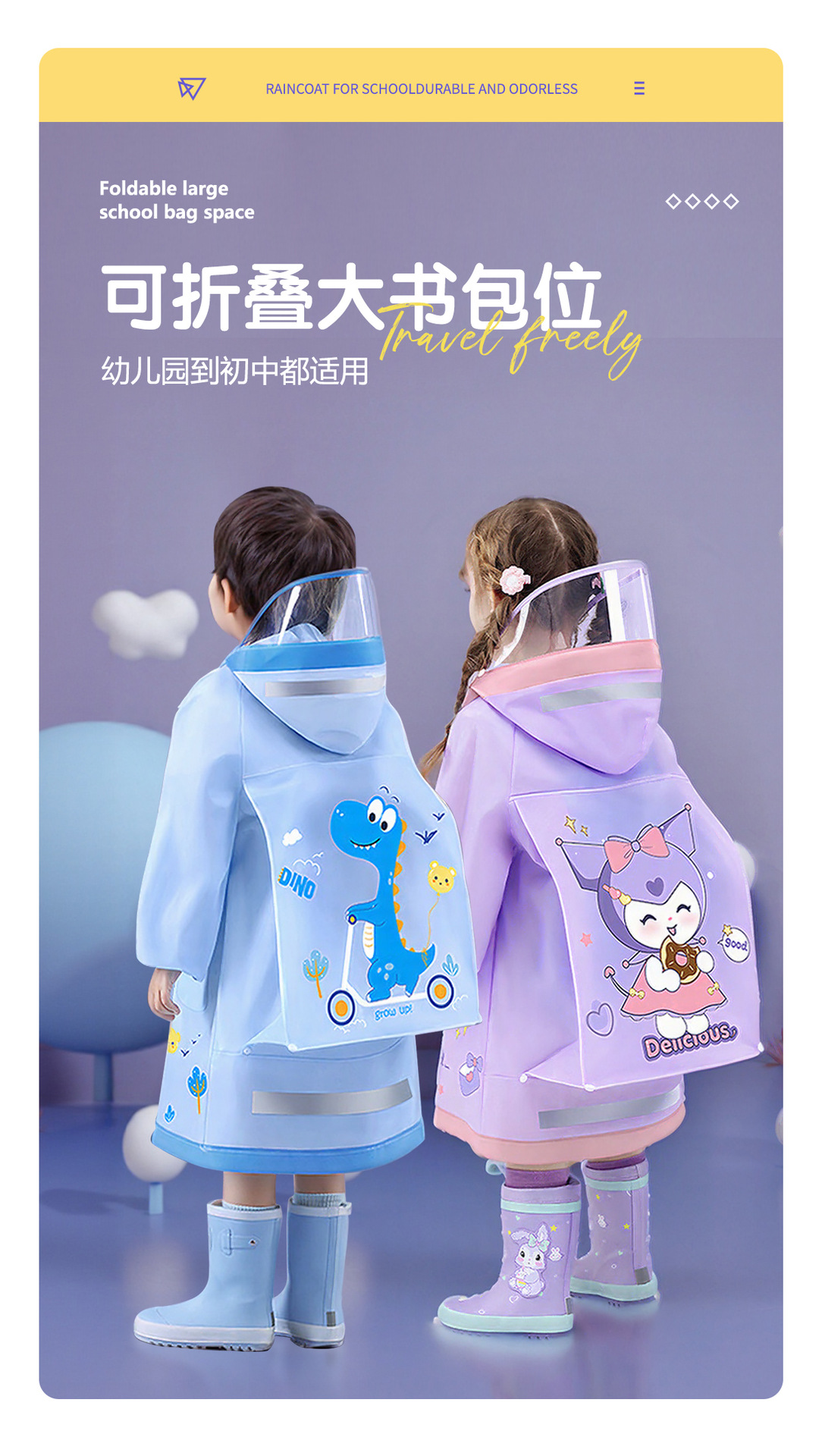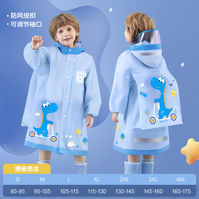 국경 간 비 일회용 도매 6-12 세 긴 비옷 아이들의 새로운 판초 유치원 두껍게 길어진 학교 가방