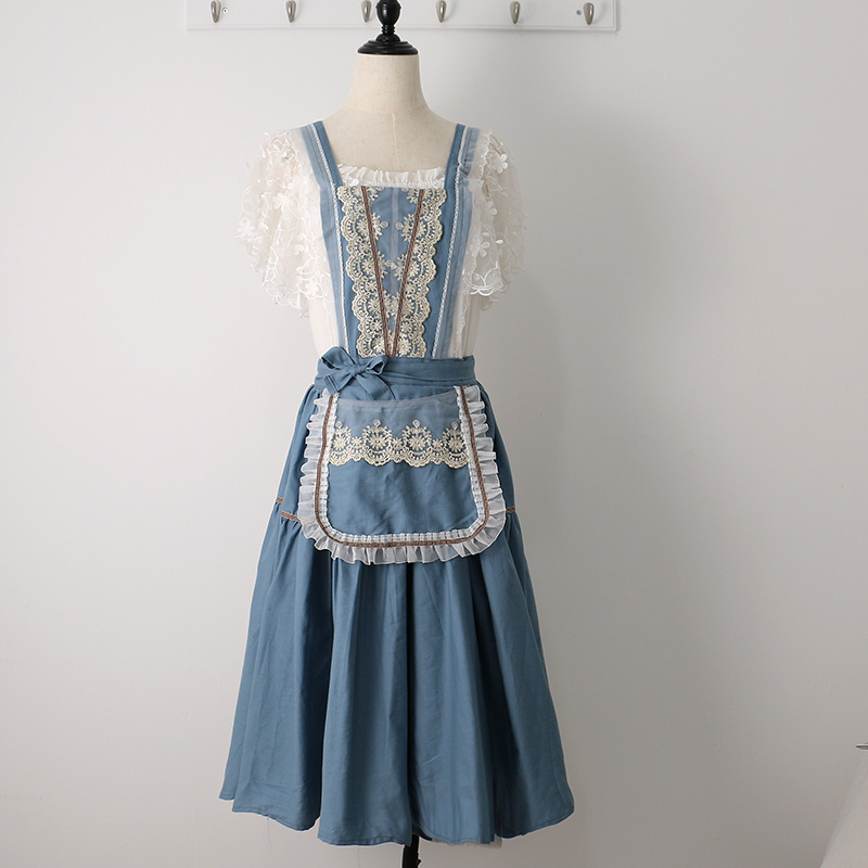 새로운 공주 원피스 레이스 긴 앞치마 꽃 가게 커피 숍 민족 원피스 긴 직장 옷
