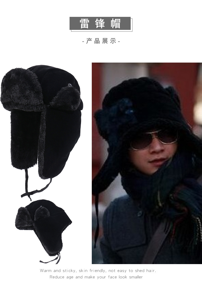 기모 두꺼운 레이 펑 모자 남자와 여자의 겨울 방한 따뜻한 모자 귀 보호 모자 동북 스키 타기 바오 터우 면화 모자