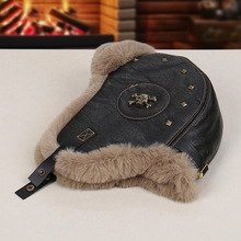 秋冬皮质复古毛绒保暖雷锋帽男骑车防寒护耳帽加厚加绒防风滑雪帽