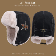 秋冬时尚新款复古毛绒舒适保暖护耳帽骑行花谢五角星装饰雷锋帽