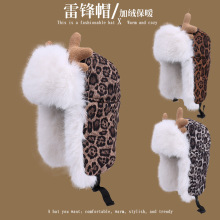 亚马逊跨境时尚新款豹纹复古毛绒护耳帽户外旅行防风滑雪雷锋帽