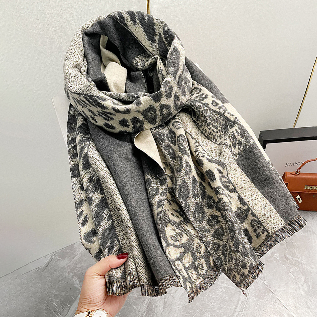 가을과 겨울 새로운 색상 매칭 레오파드 무늬 두꺼운 따뜻한 기질 목도리 분위기 스카프 에어컨 담요 사무실 담요스토어 가기