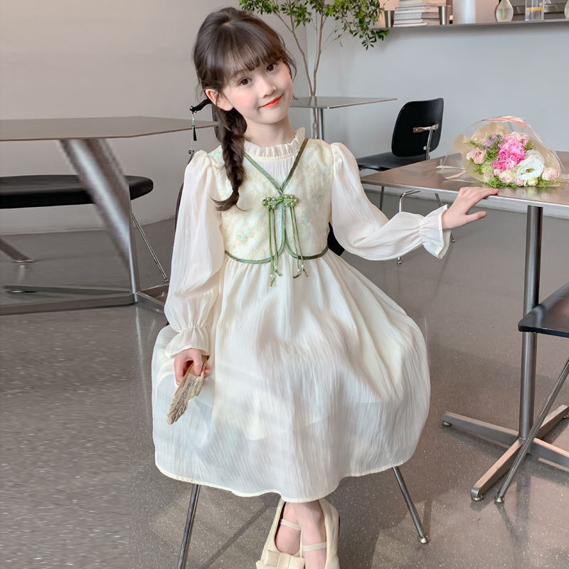 소녀 원피스 봄 원피스 어린이 치마 2024 새로운 한국 스타일 서양식 큰 아동복 소녀 공주 치마