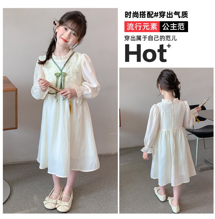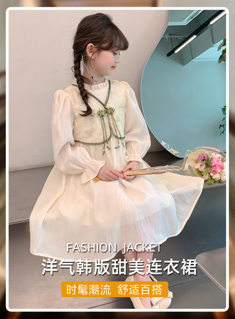 소녀 원피스 봄 원피스 어린이 치마 2024 새로운 한국 스타일 서양식 큰 아동복 소녀 공주 치마스토어 가기