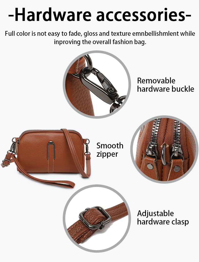 2025 여성용 가방 정품 가죽 숄더백 1 층 소 가죽 휴대 전화 동전 지갑 다목적 캐주얼 클러치 백