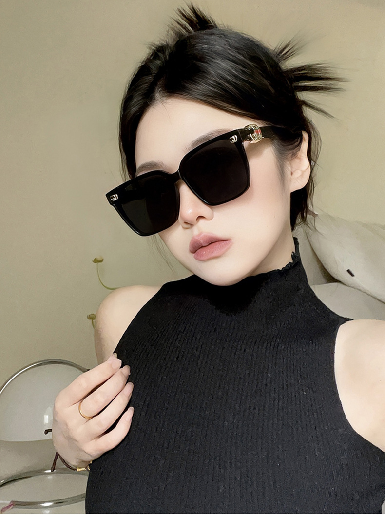 Gm 우수한 감각 선글라스 여성 Ins 한국 스타일 빅 프레임 사이버 연예인 안경 둥근 얼굴 슬리밍 운전 자외선 방지 선글라스스토어 가기