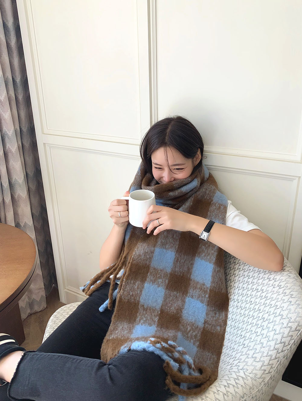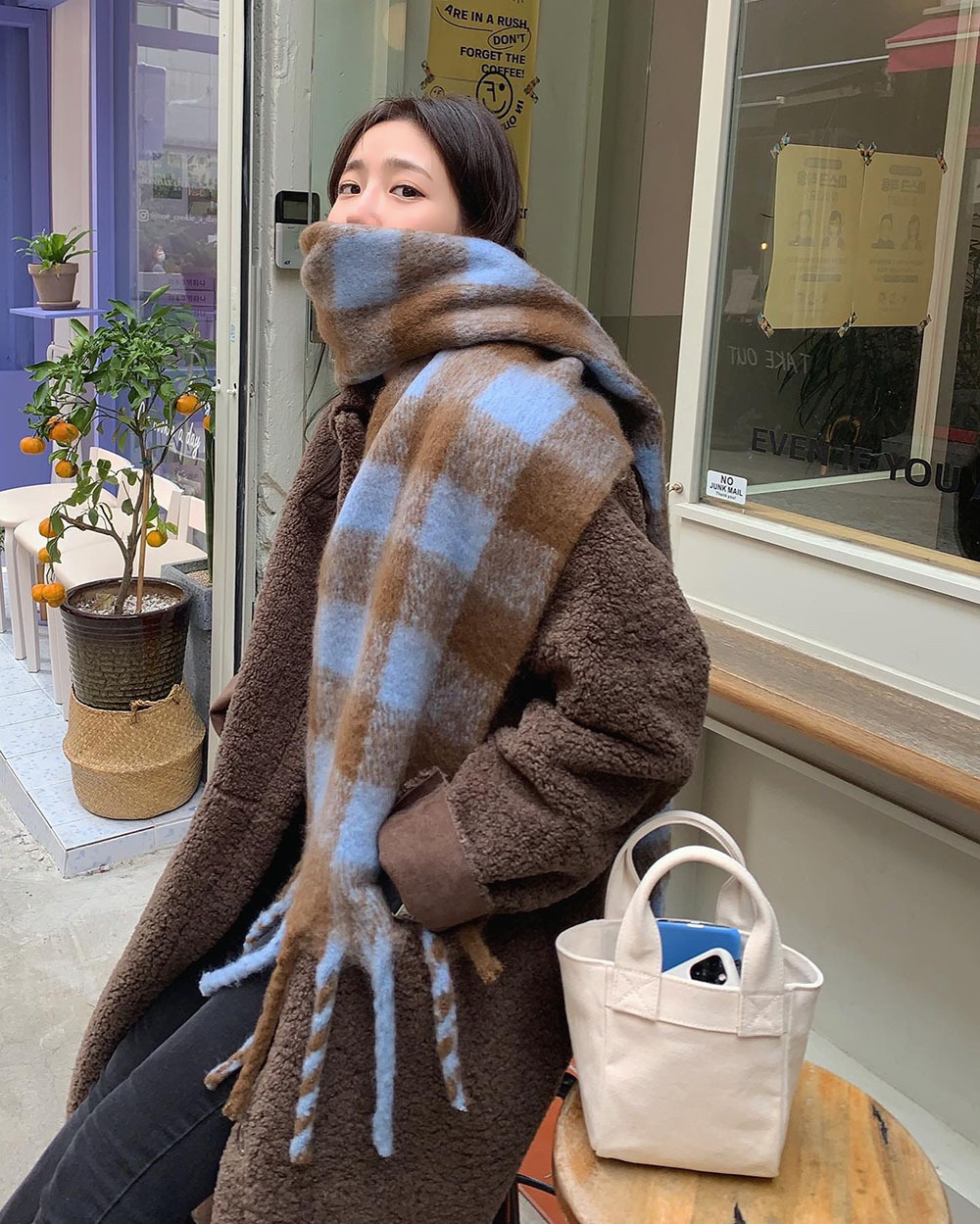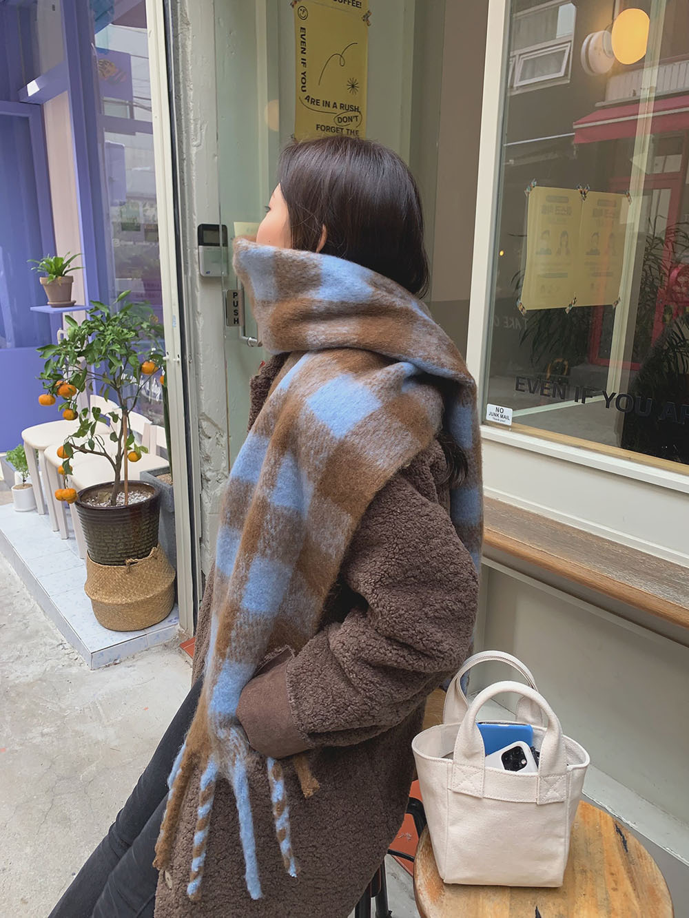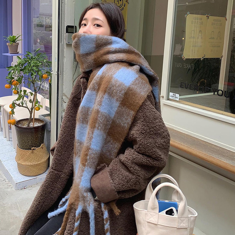 가을과 겨울 캐시미어 격자 무늬 술 스카프 한국 스타일 여성 사이클링 여행 따뜻한 패션 니트 스카프 목도리스토어 가기