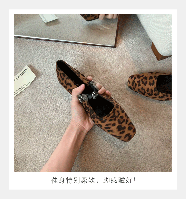기질 작은 사각형 머리 사랑 다이아몬드 벨트 얕은 입 메리 제인 신발 여성 레오파드 무늬 플랫 슈즈를 가진 포도 어머니의 양가죽 버전