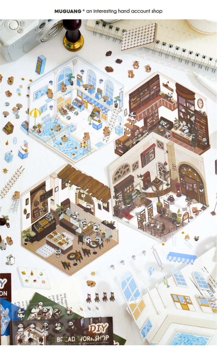 황혼의 애완 동물 조경 스티커 동화 순간 시리즈 귀여운 일러스트 소재 어린이 수제 DIY 3 차원 오두막
