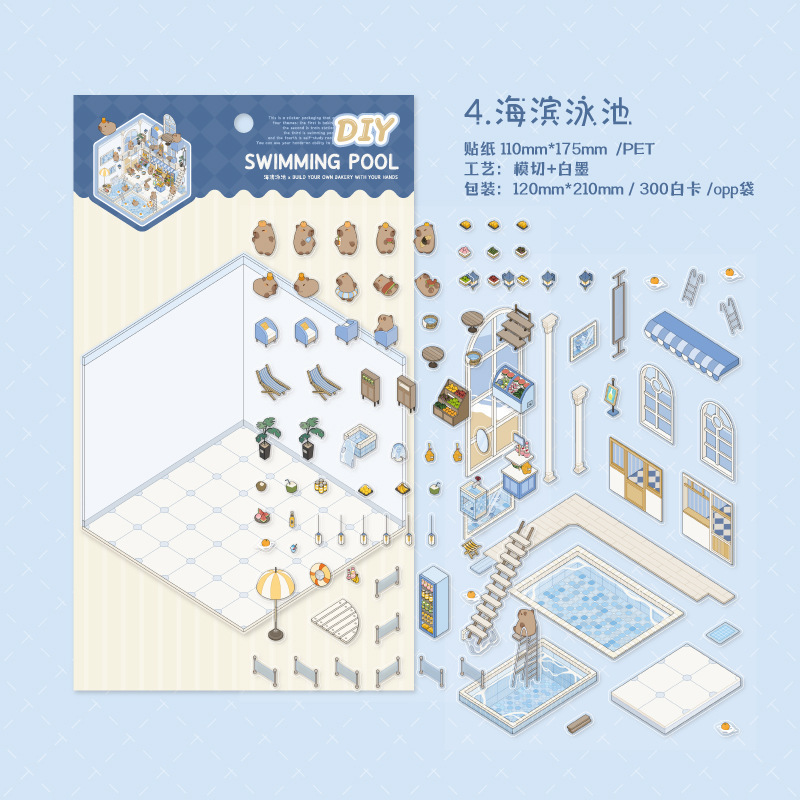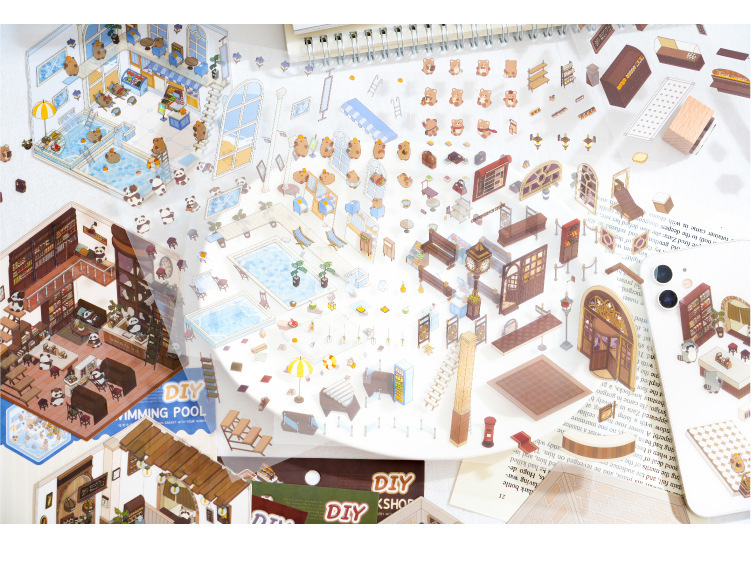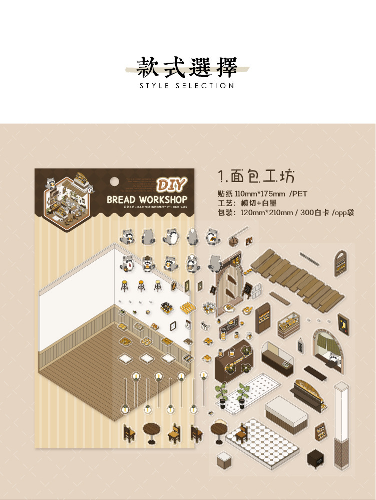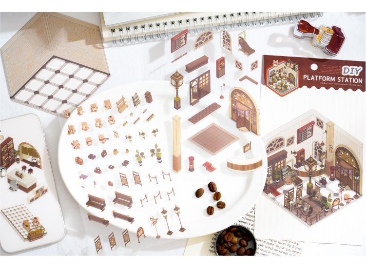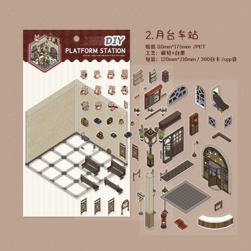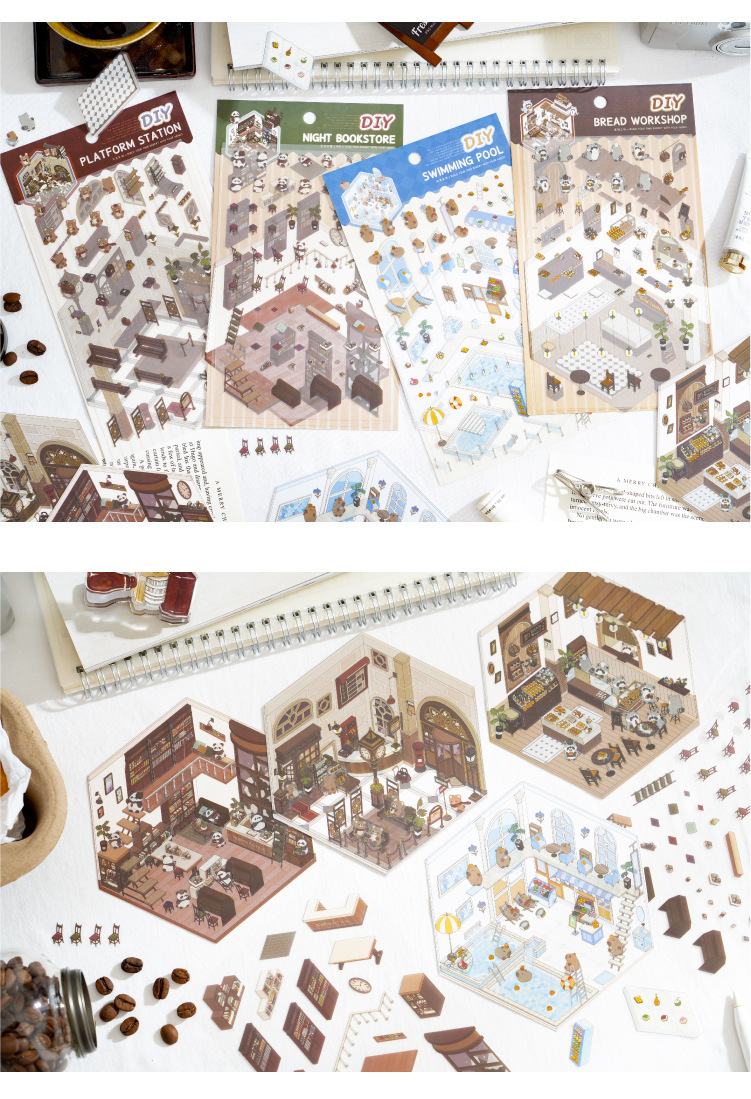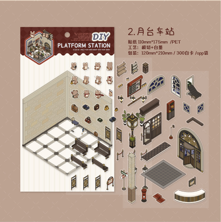 황혼의 애완 동물 조경 스티커 동화 순간 시리즈 귀여운 일러스트 소재 어린이 수제 DIY 3 차원 오두막스토어 가기