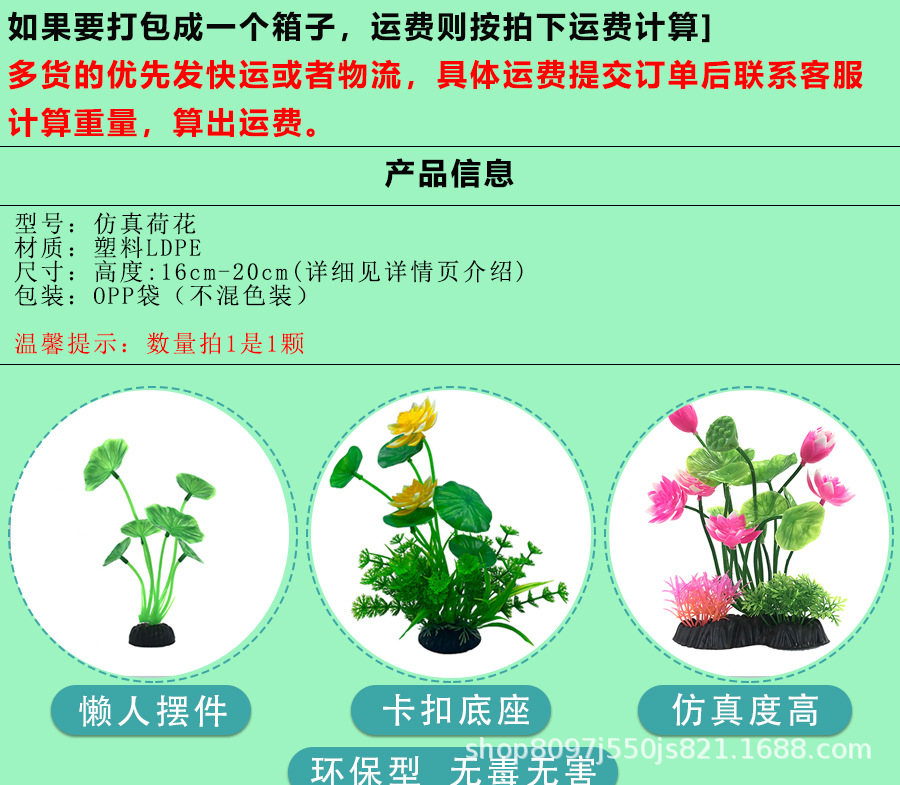소스 제조 업체 물고기 탱크 조경 수족관 플라스틱 시뮬레이션 물 식물 연꽃 연꽃 마이크로 조경 장식 장식품 도매스토어 가기