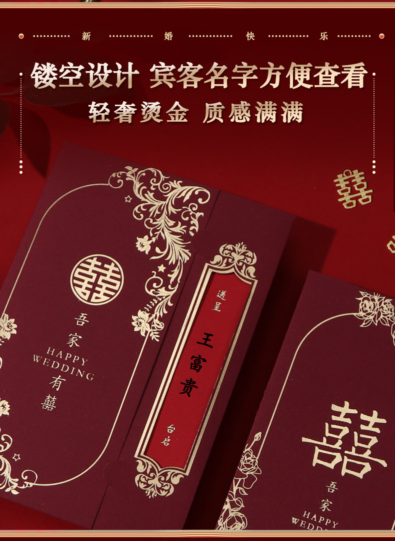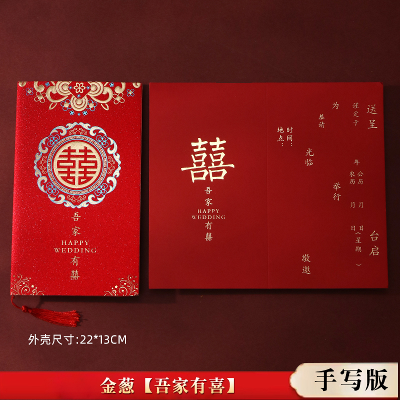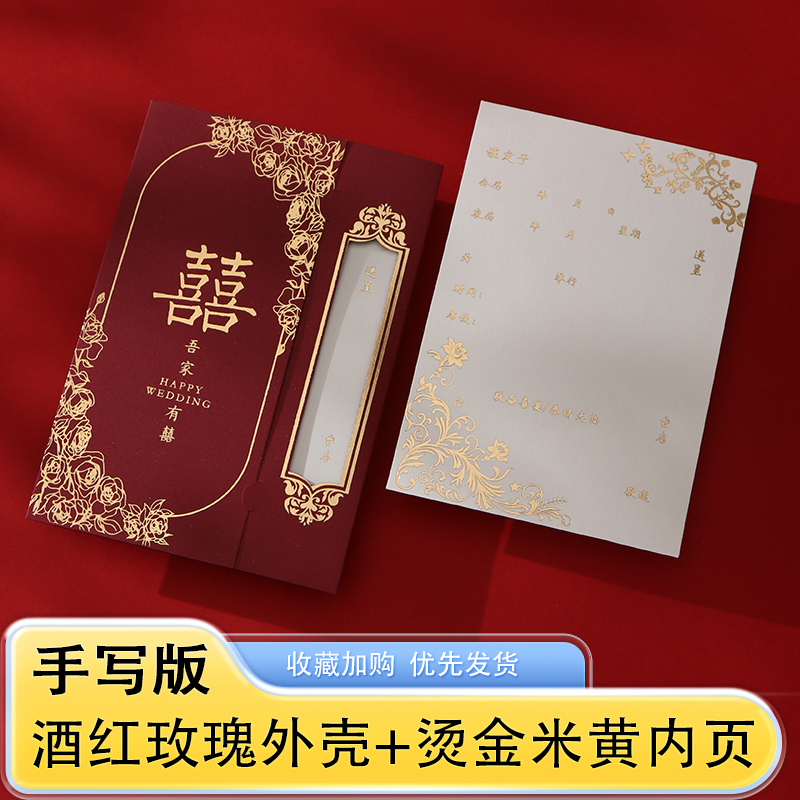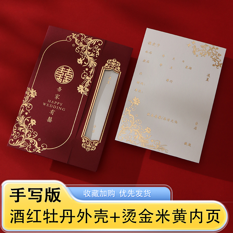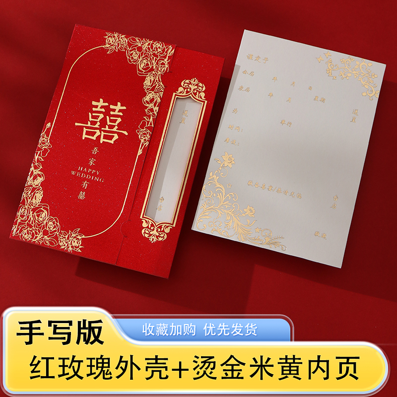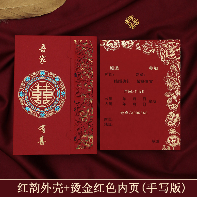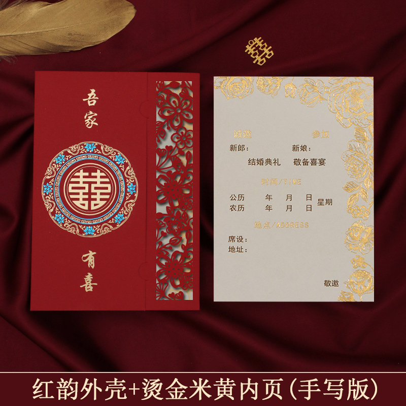 • 손글씨 버전 - Hongyun My Family Youxi Hollow 초대장 [빨간색 핫 스탬핑 내부 페이지] 10부