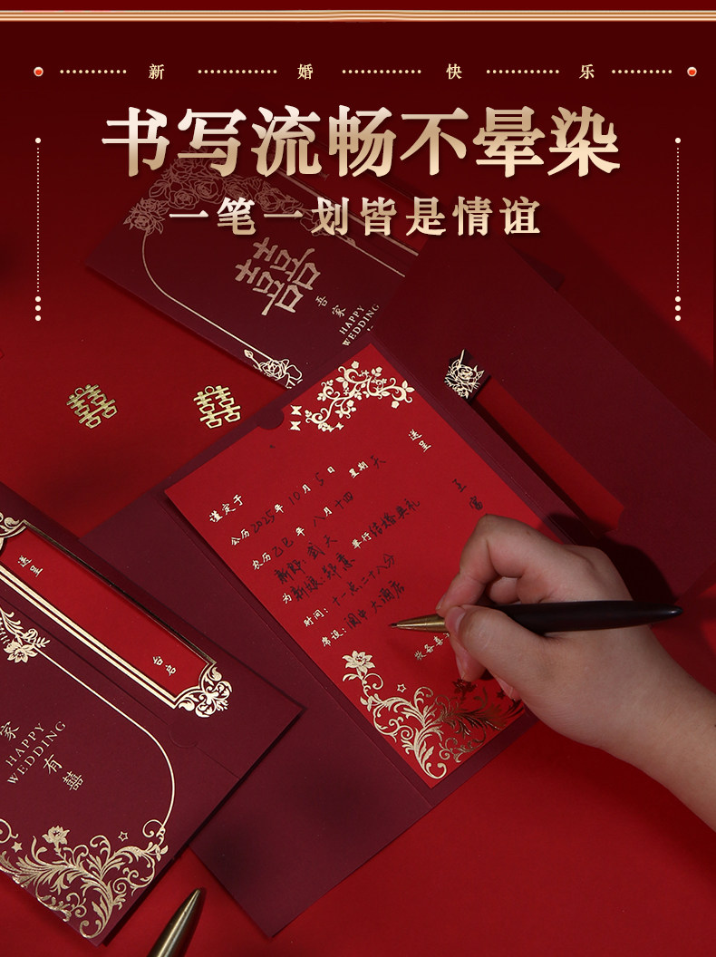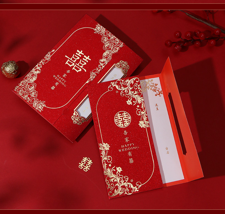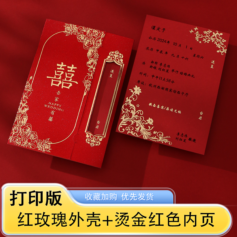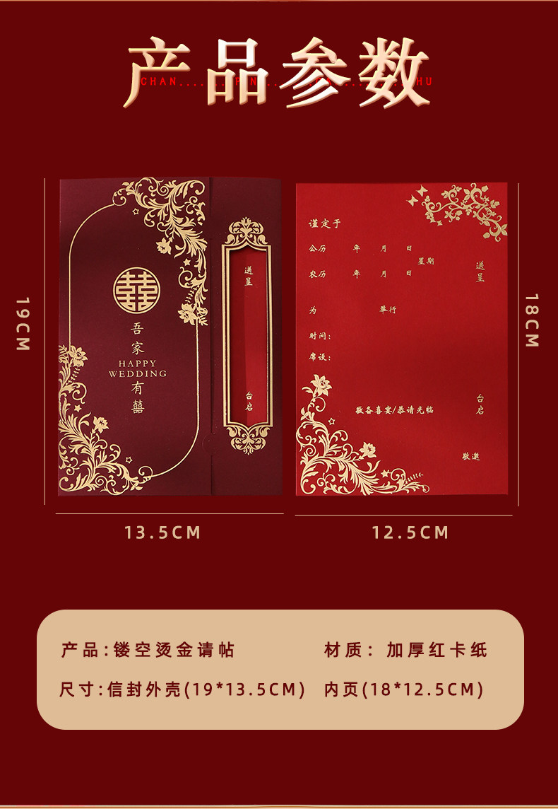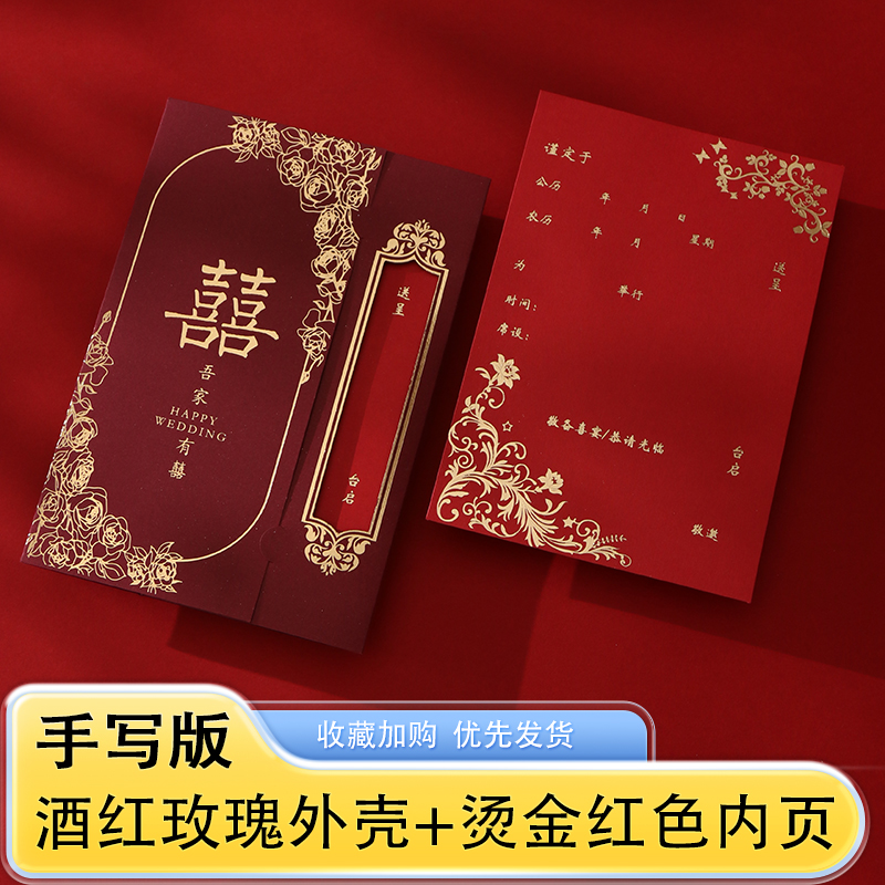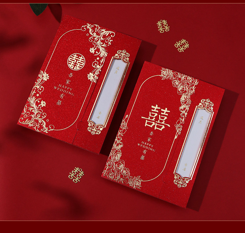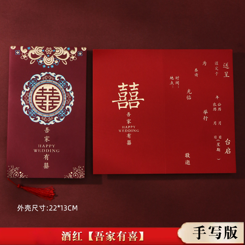 • 손글씨 버전 - Hongyun My Family Youxi Hollow 초대장 [빨간색 핫 스탬핑 내부 페이지] 10부