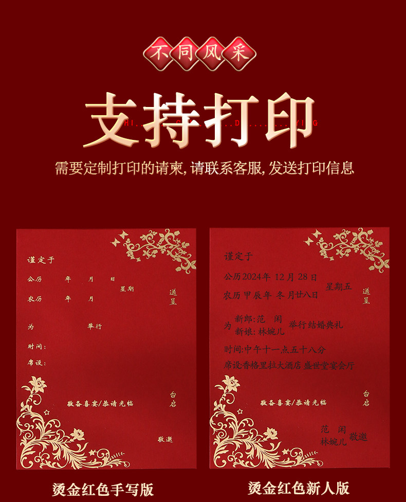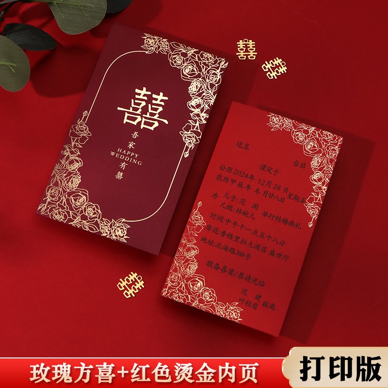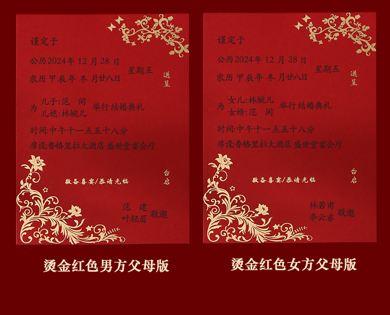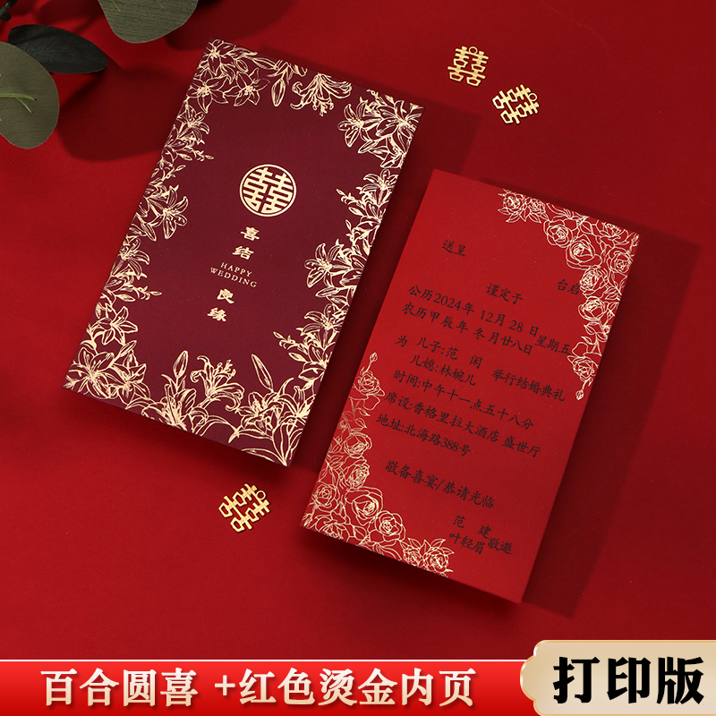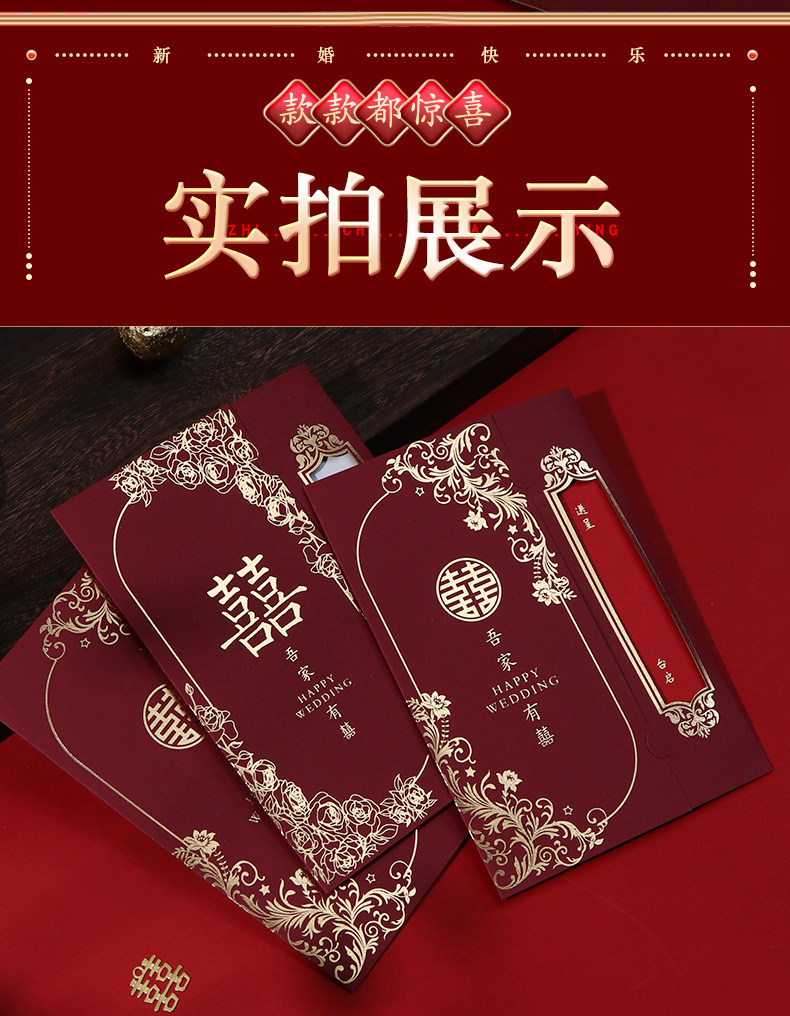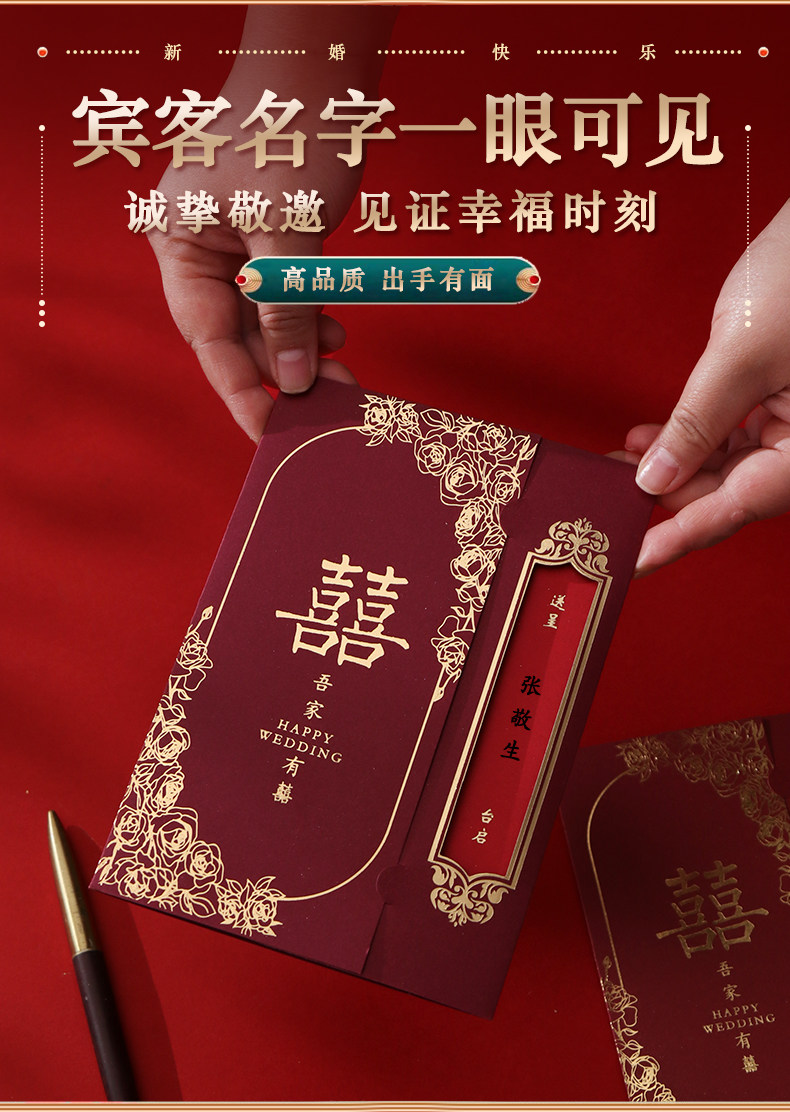 • 손글씨 버전 - Hongyun My Family Youxi Hollow 초대장 [빨간색 핫 스탬핑 내부 페이지] 10부