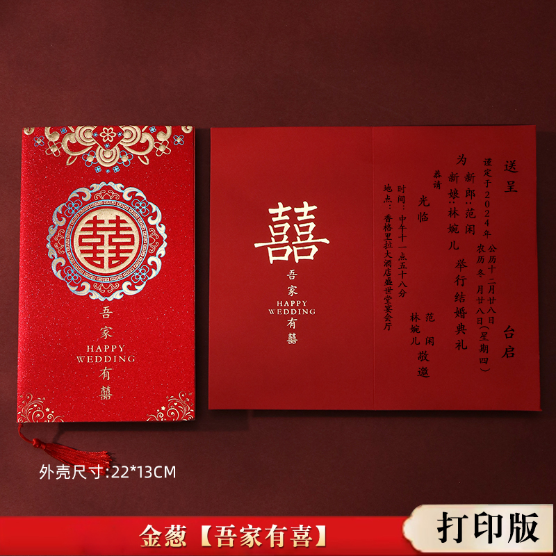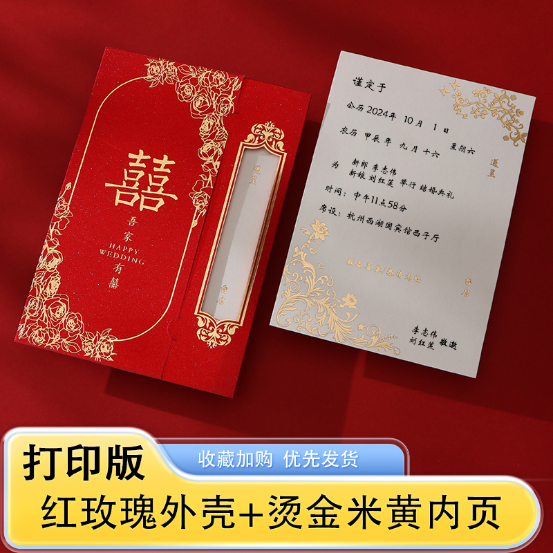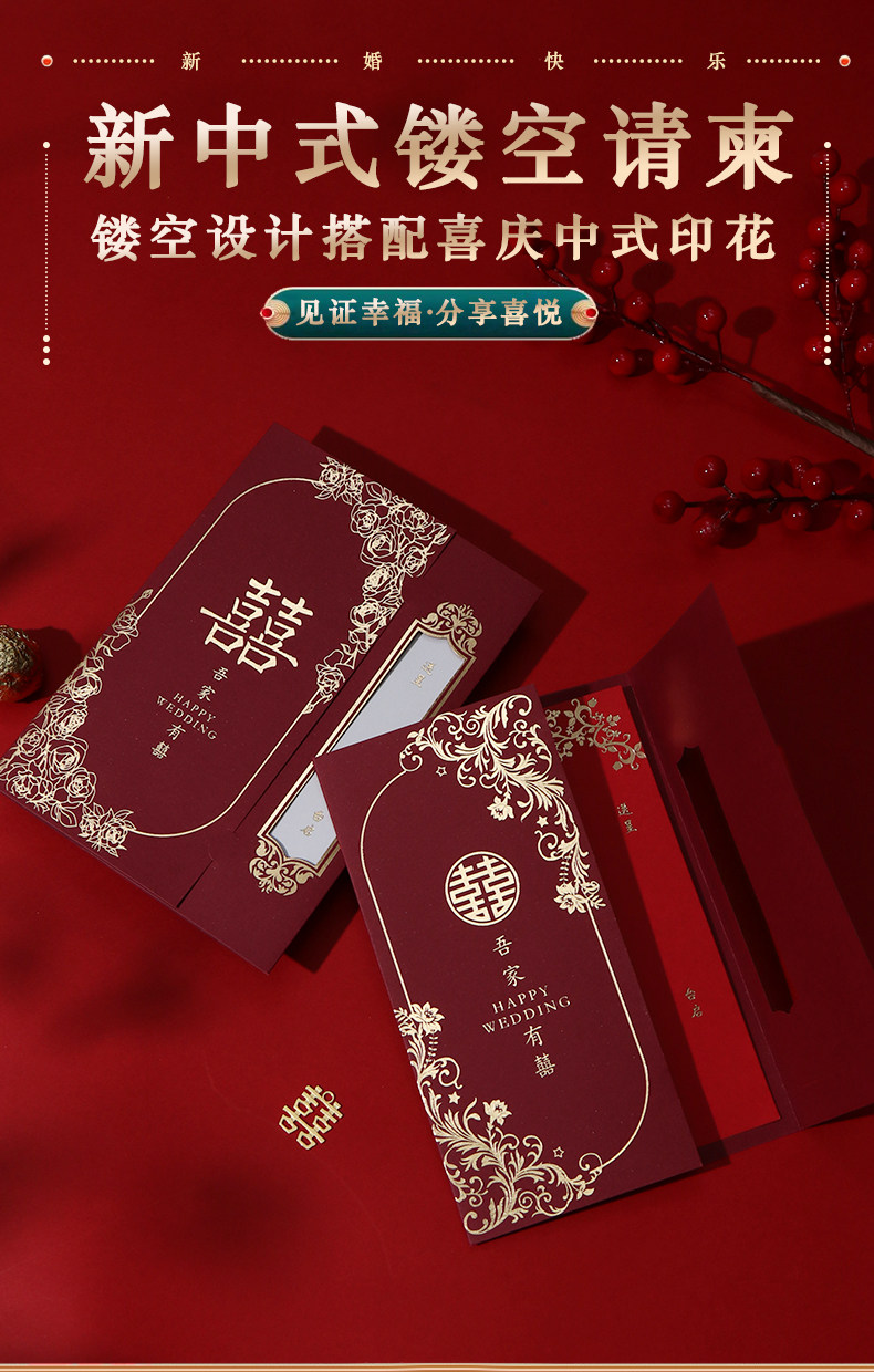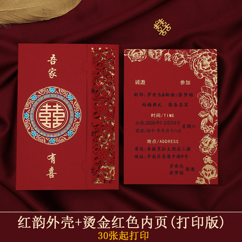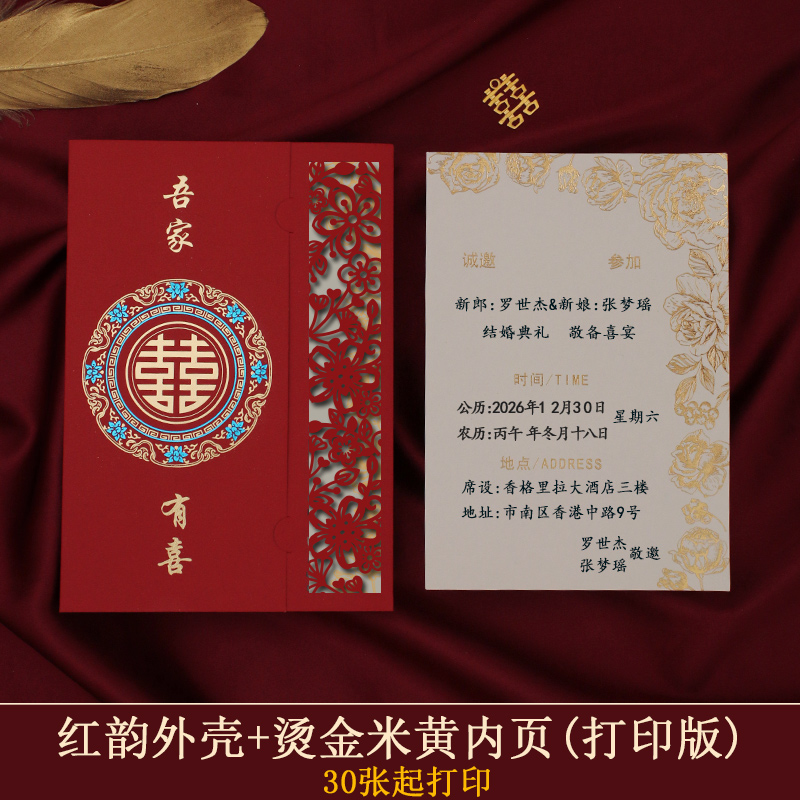• 인쇄 버전 - Hongyun My Family Youxi Hollow 초대장 [빨간색 핫 스탬핑 내부 페이지] 10 장
