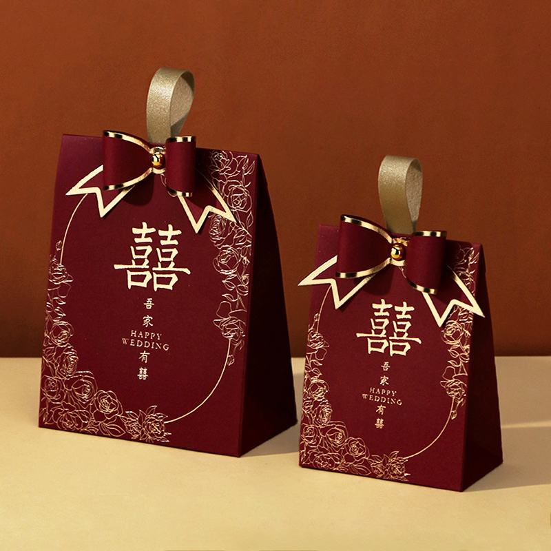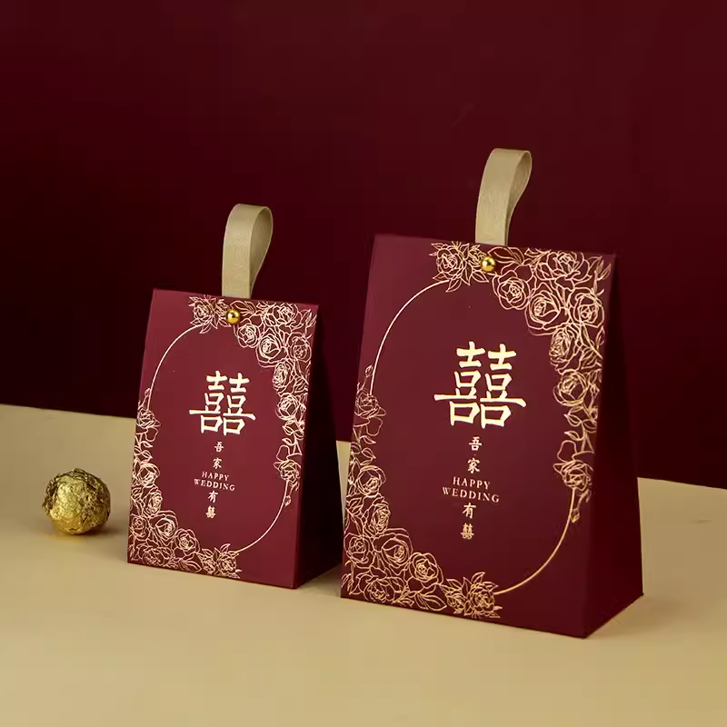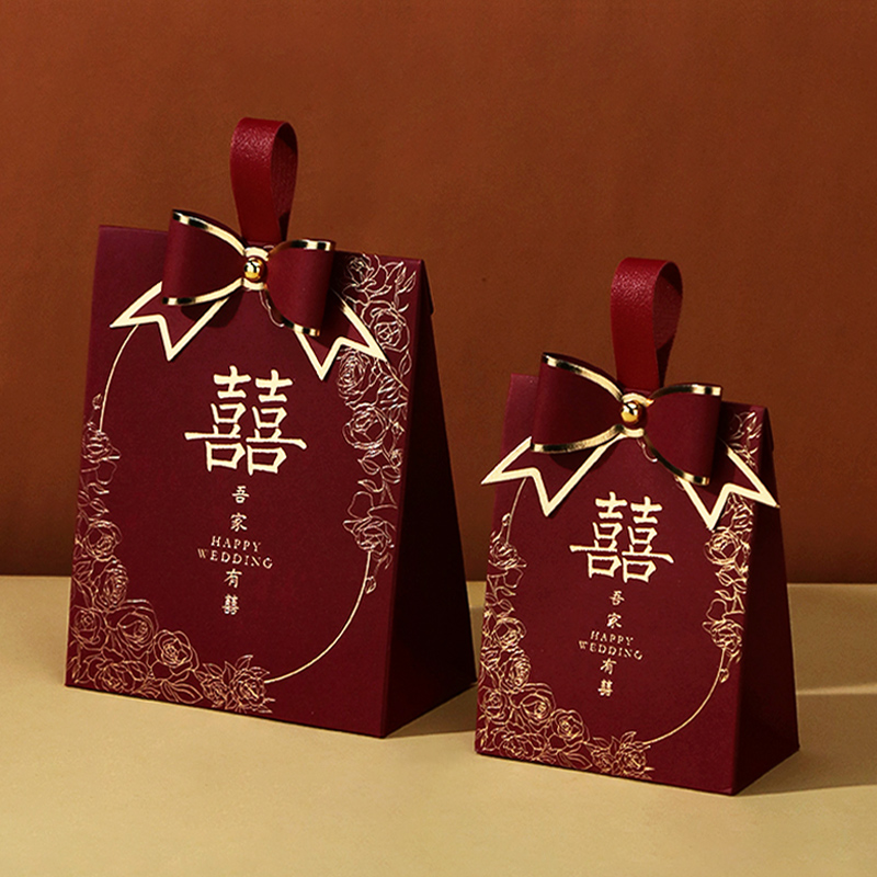 • 더블 로즈 [핫스탬핑 리본 선물 상자] 레드 가죽 로프_소형 20개 (소형 설탕 10개 담을 수 있음)