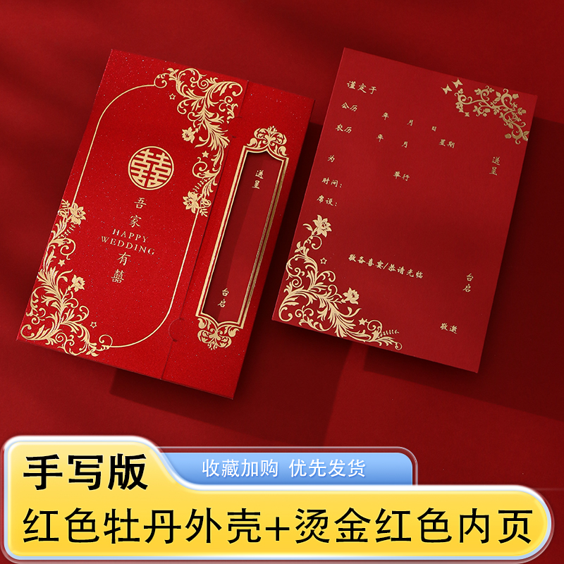 • 손글씨 버전 - 붉은 모란 중공 초대장 [빨간색 핫 스탬핑 내부 페이지] 10부