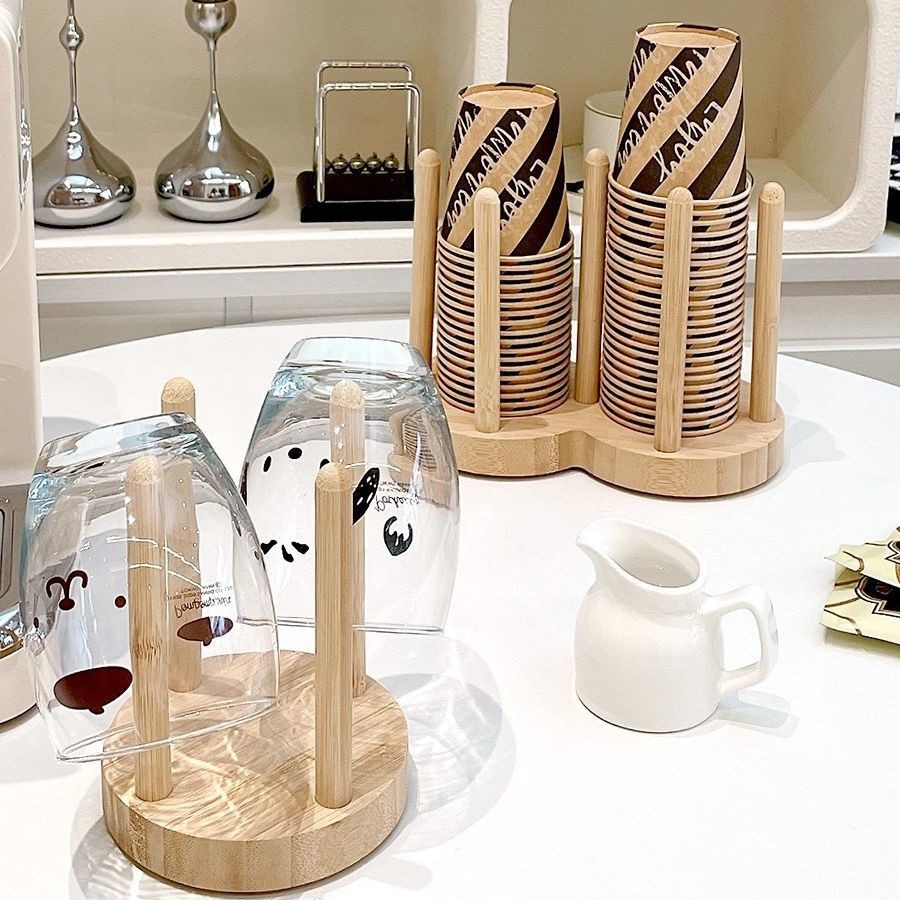 나무 종이 컵 홀더 가정용 유리 컵 홀더 저장 우유 차 커피 바 컵 테이커 현대 간단한 나무 컵 홀더