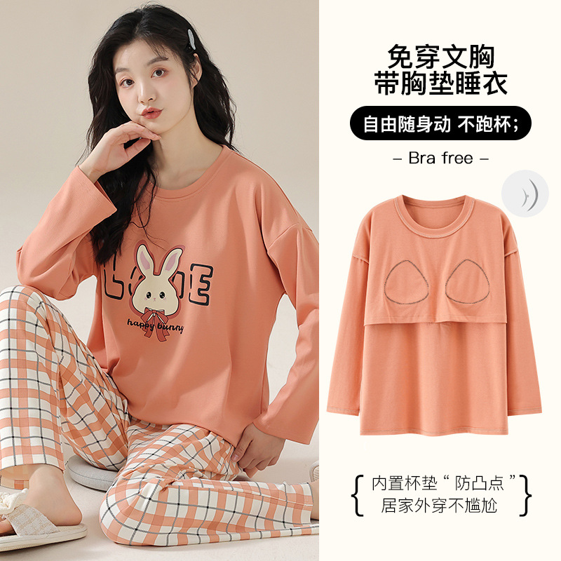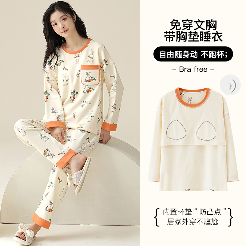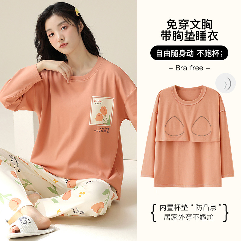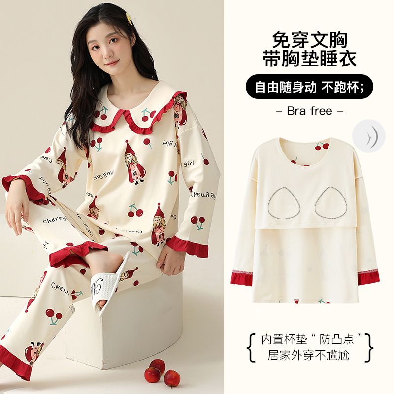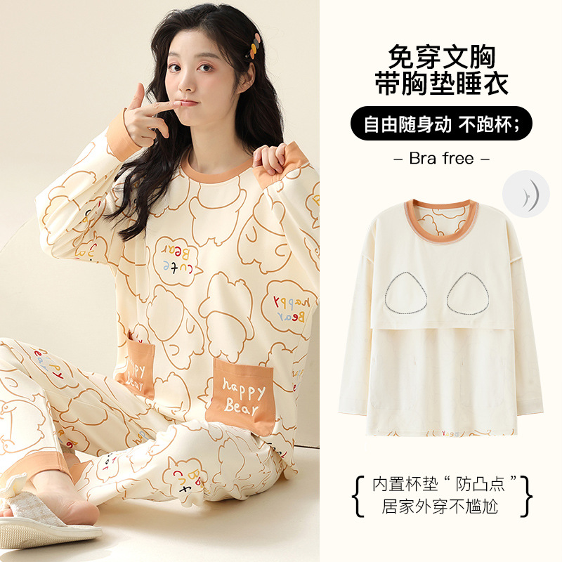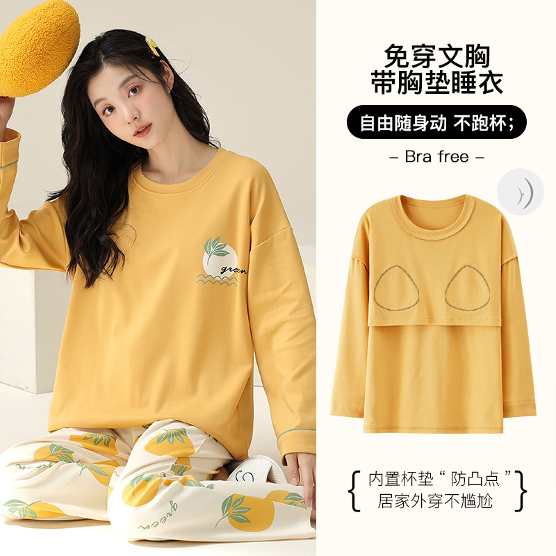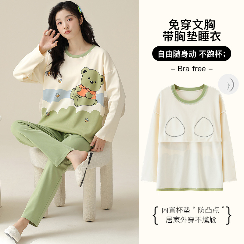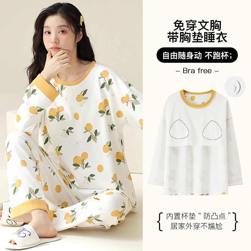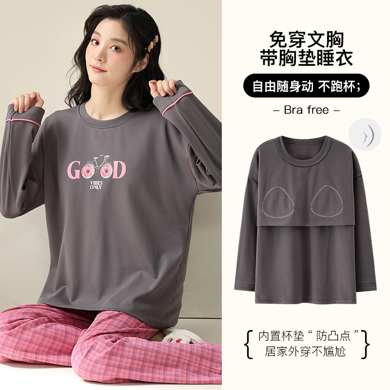 잠옷 여성의 봄과 가을면 가슴 패드가 달린 긴팔 바지 5XL 초대형 의상 홈 세트스토어 가기