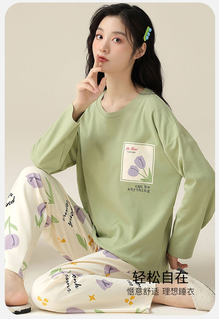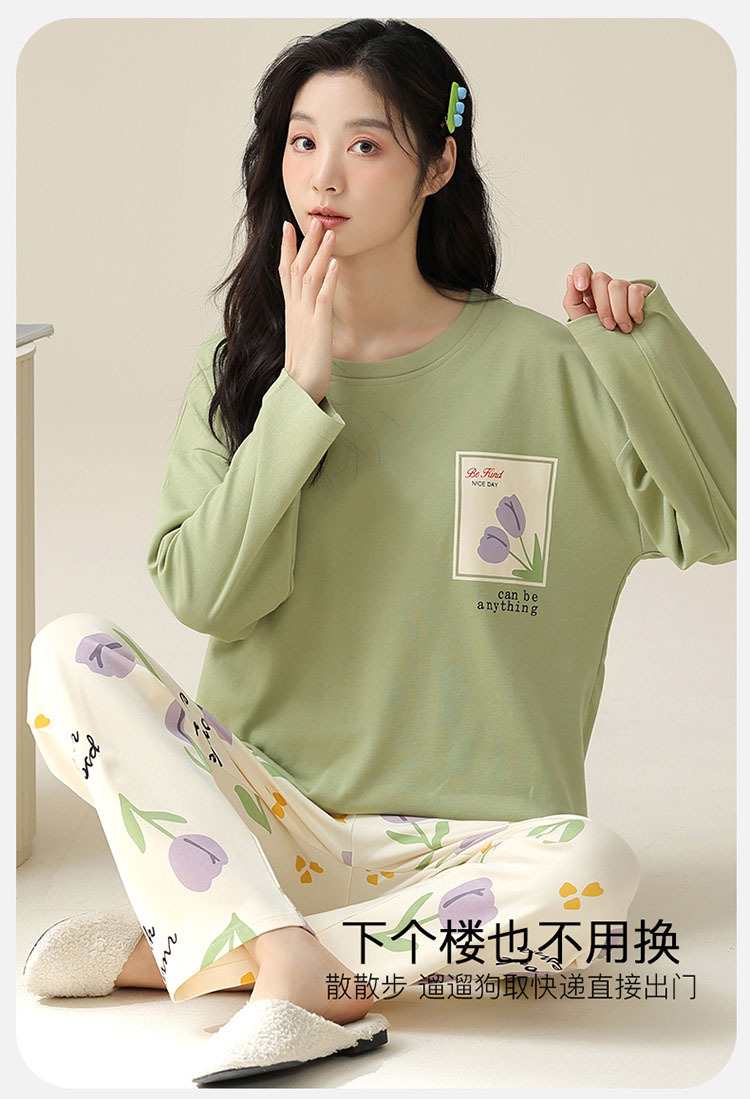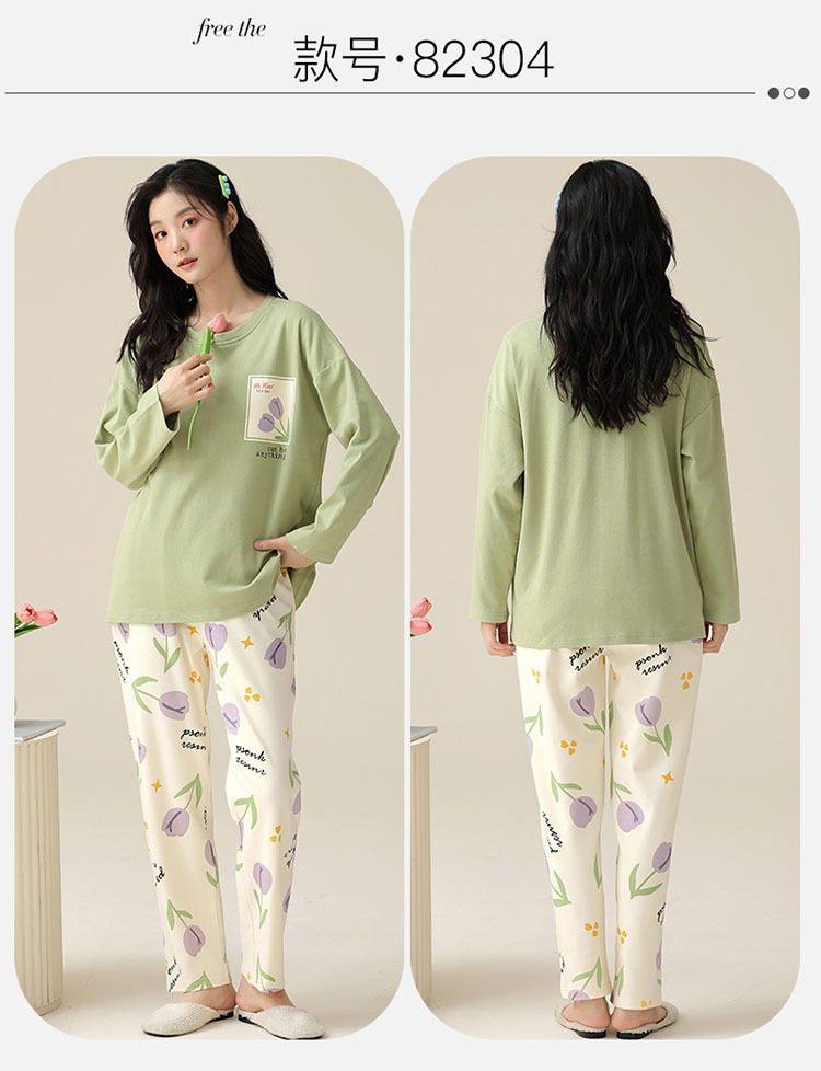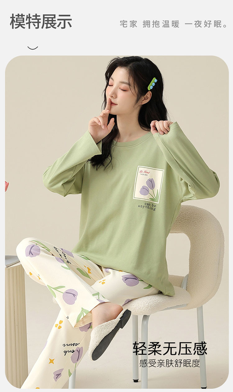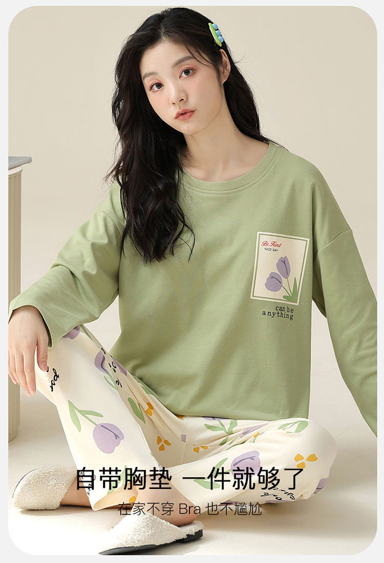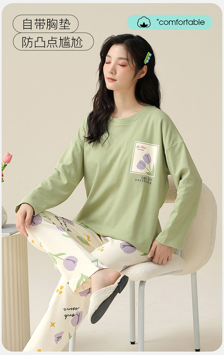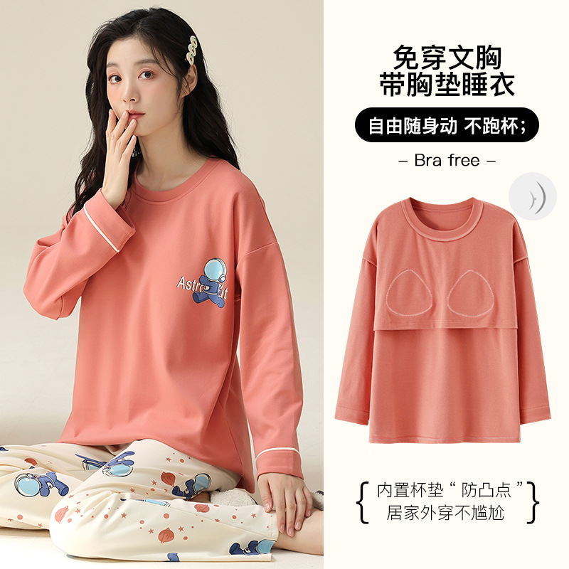 잠옷 여성의 봄과 가을면 가슴 패드가 달린 긴팔 바지 5XL 초대형 의상 홈 세트스토어 가기