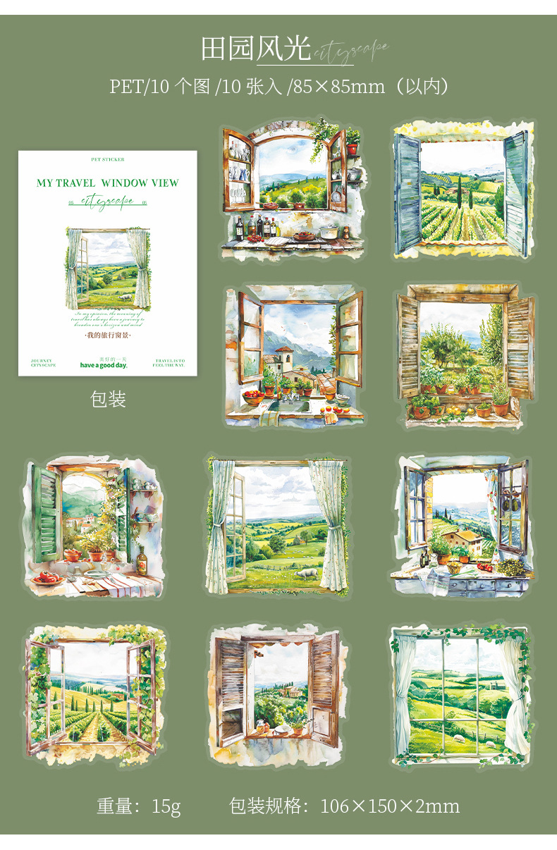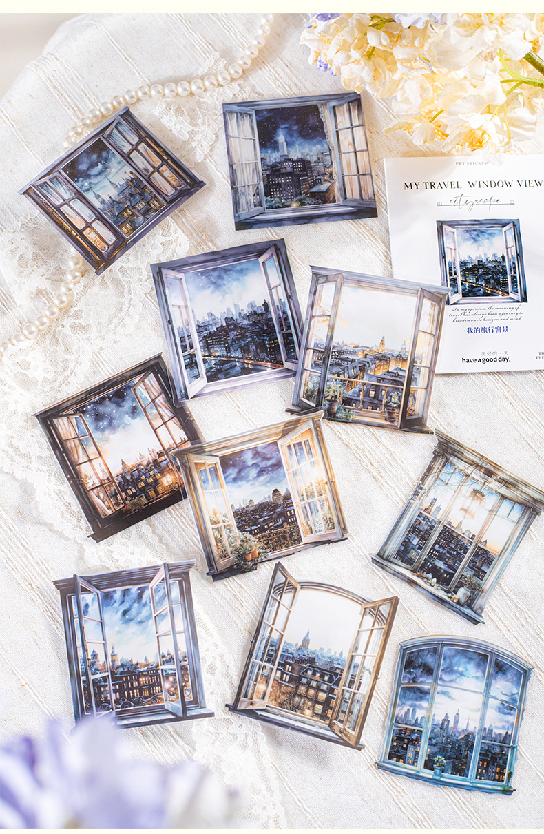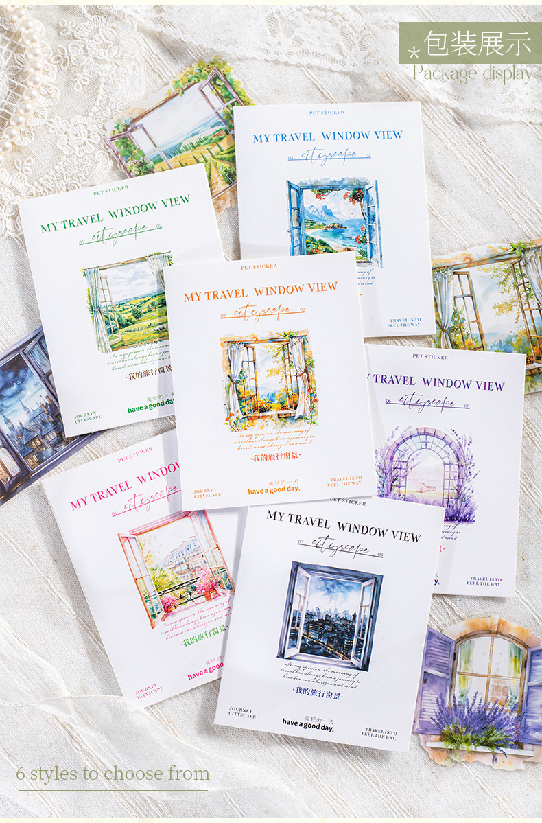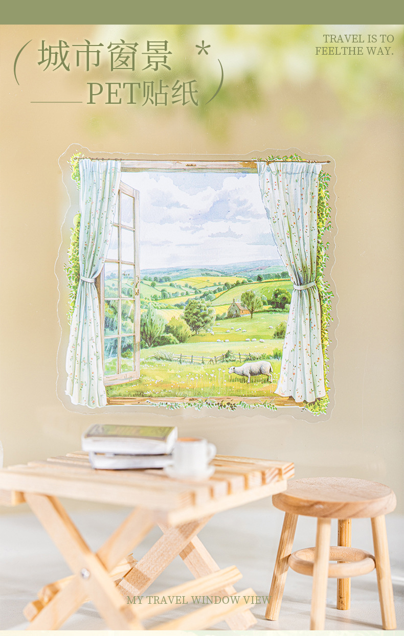 아름다운 날 도시 창 애완 동물 스티커 내 여행 창 시리즈 6 선택한 복고풍 소재 스티커