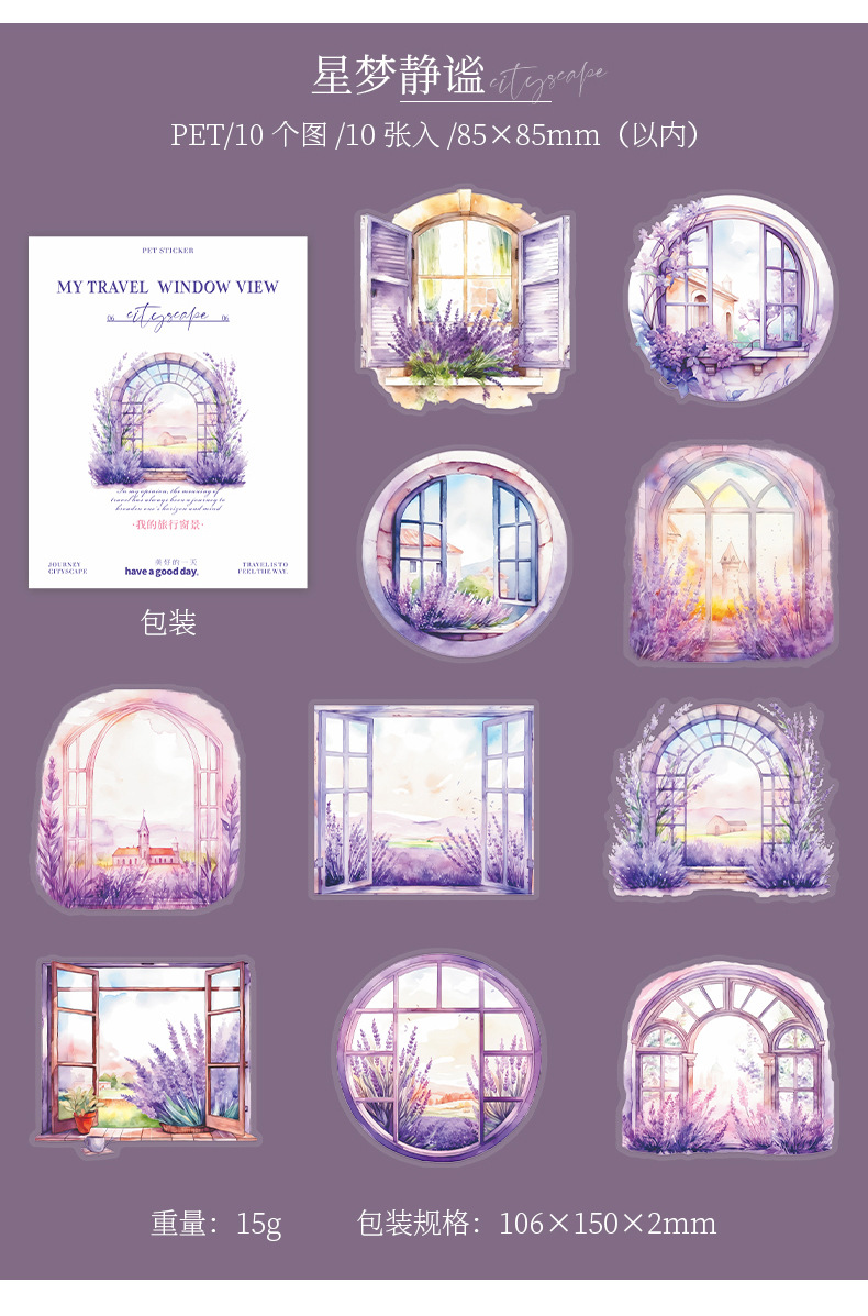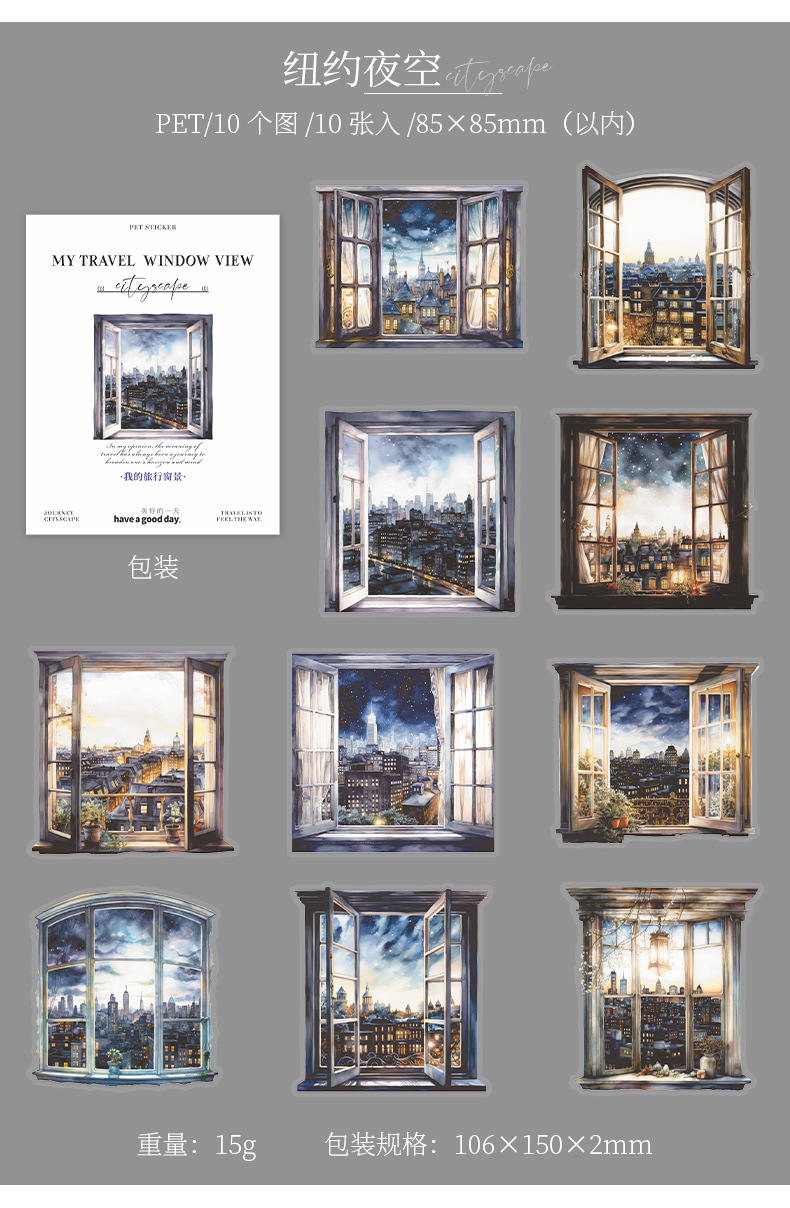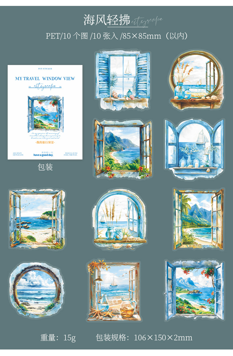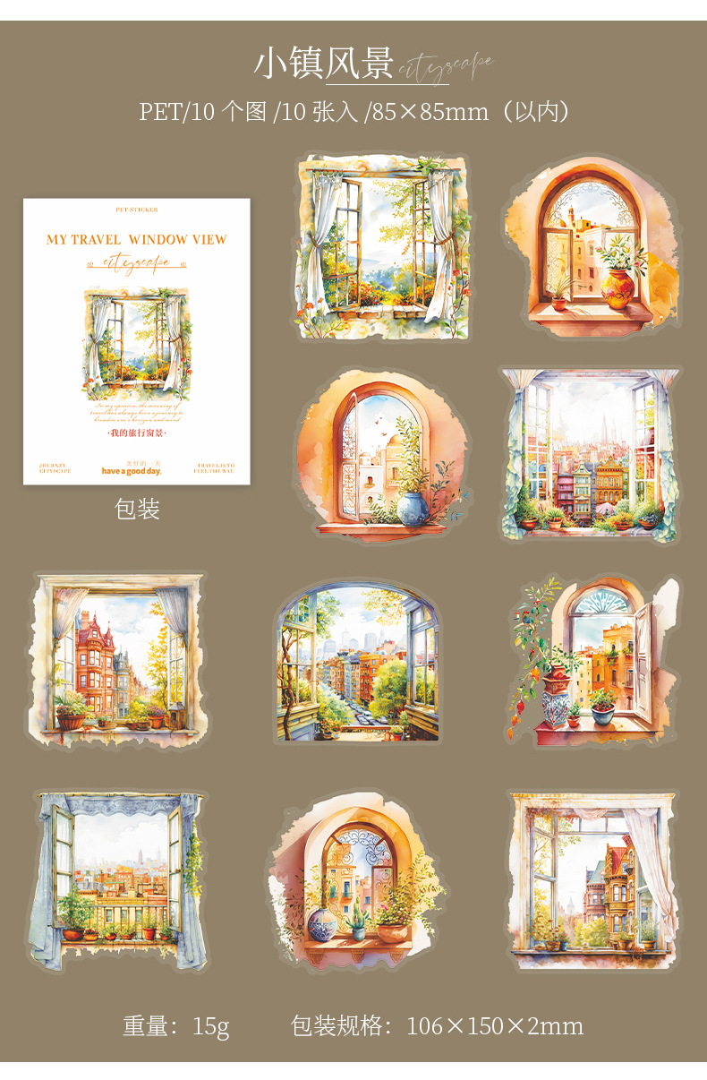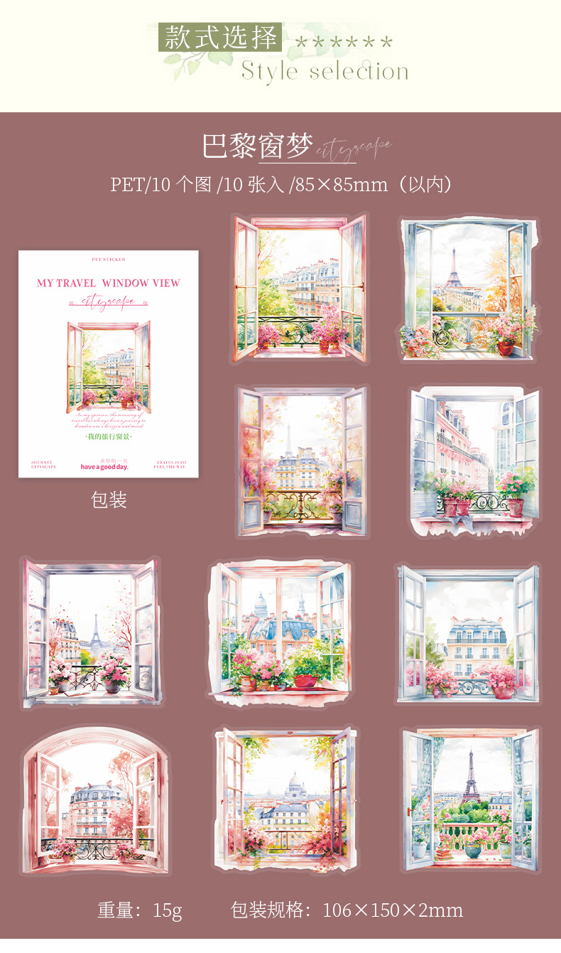 아름다운 날 도시 창 애완 동물 스티커 내 여행 창 시리즈 6 선택한 복고풍 소재 스티커