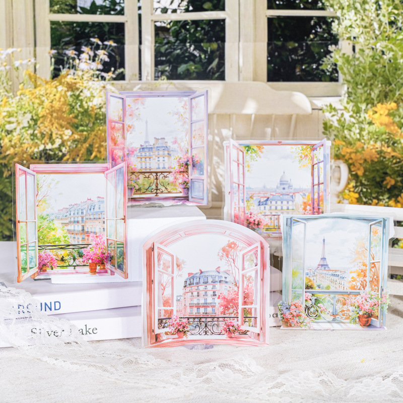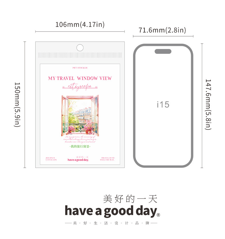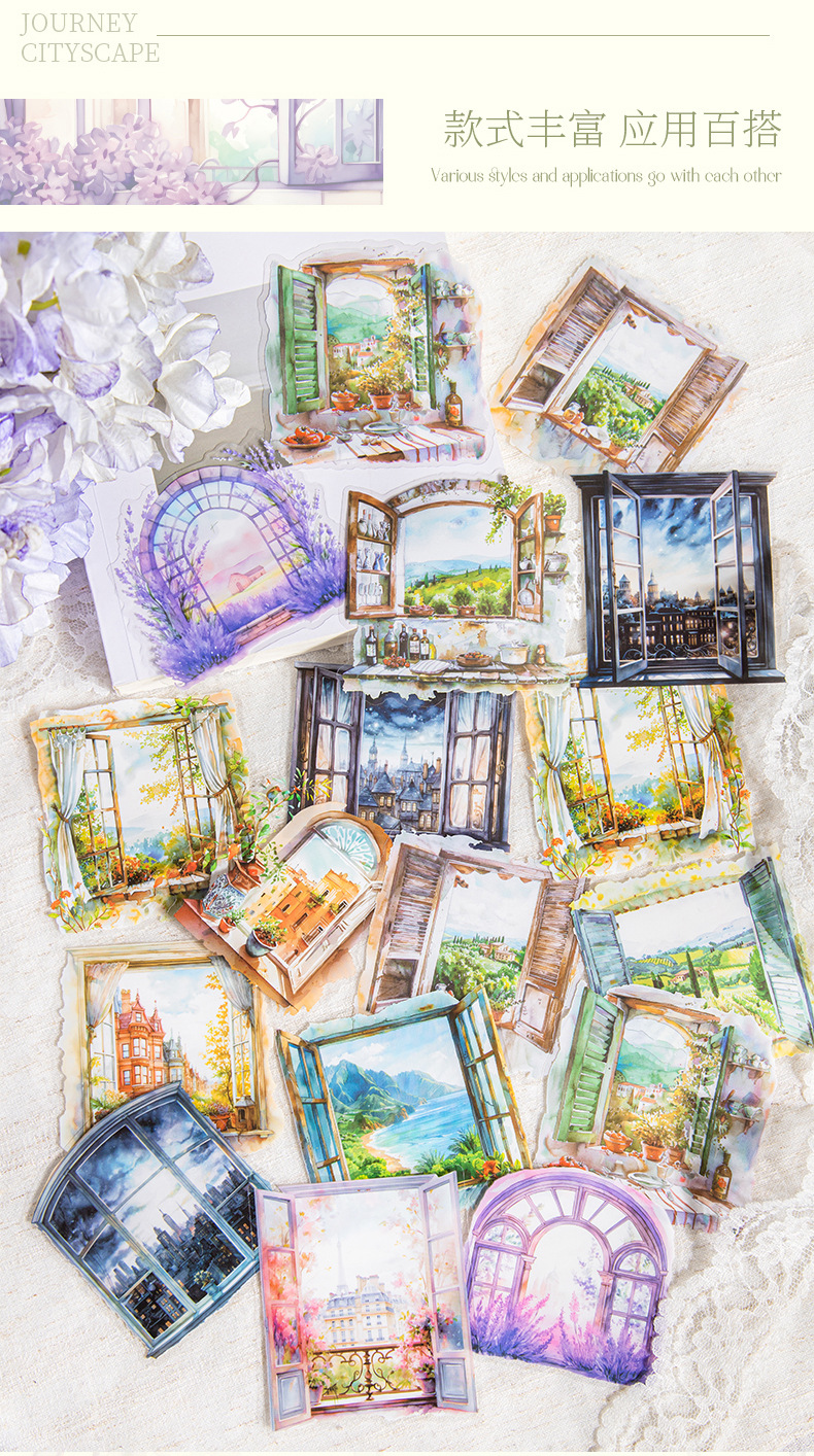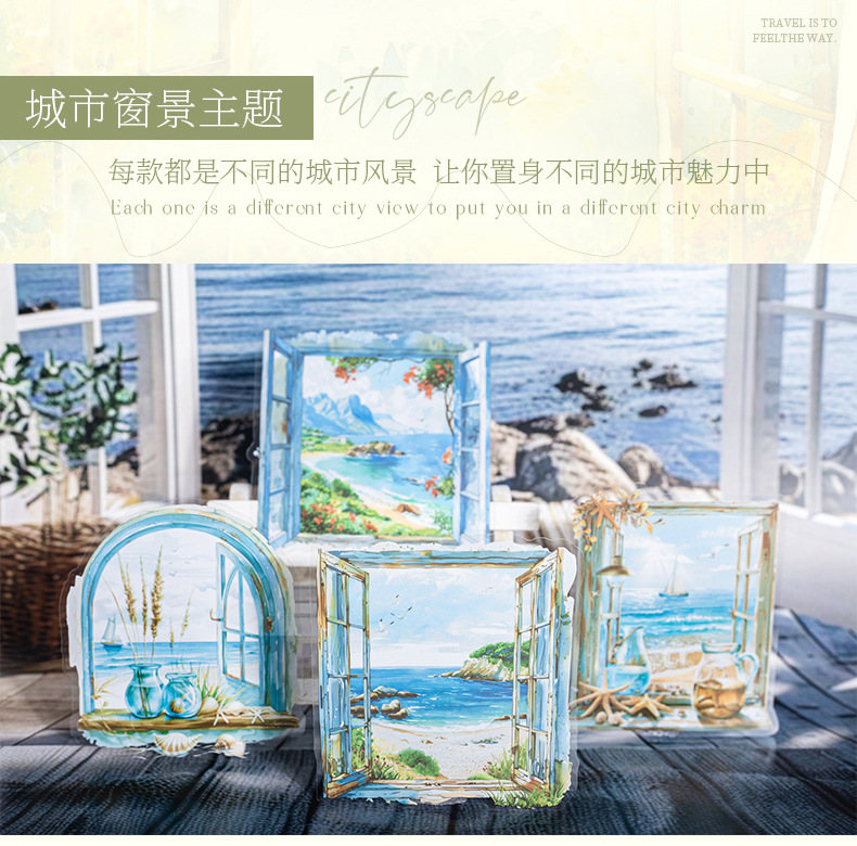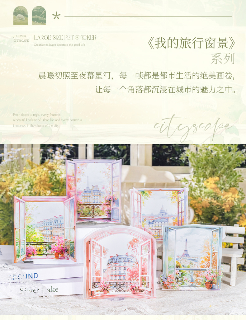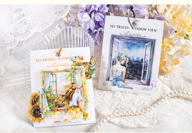 아름다운 날 도시 창 애완 동물 스티커 내 여행 창 시리즈 6 선택한 복고풍 소재 스티커스토어 가기