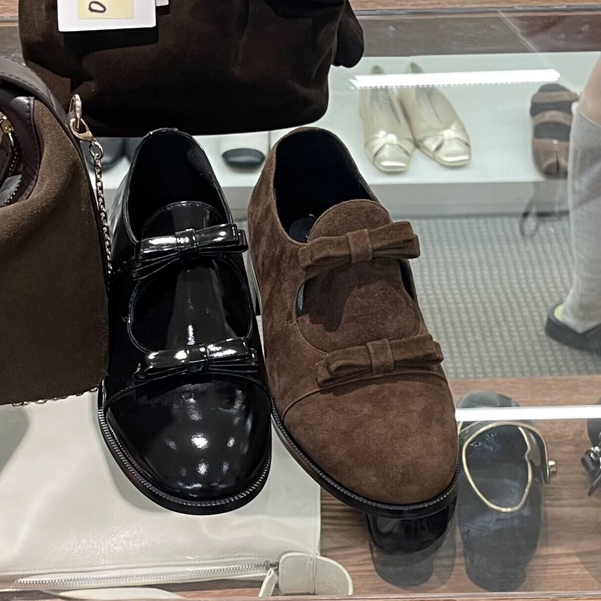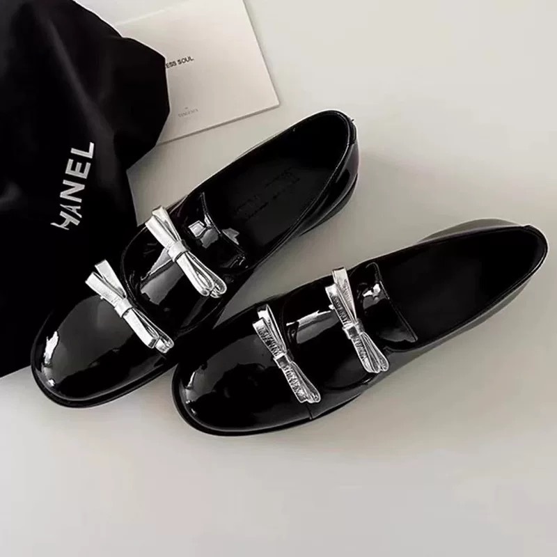정품 가죽 한국 틈새 디자인 더블 벨트 활 깊은 입 로퍼 작은 가죽 신발 여성의 가을과 겨울 새로운 올 매치 싱글 레이어 신발스토어 가기