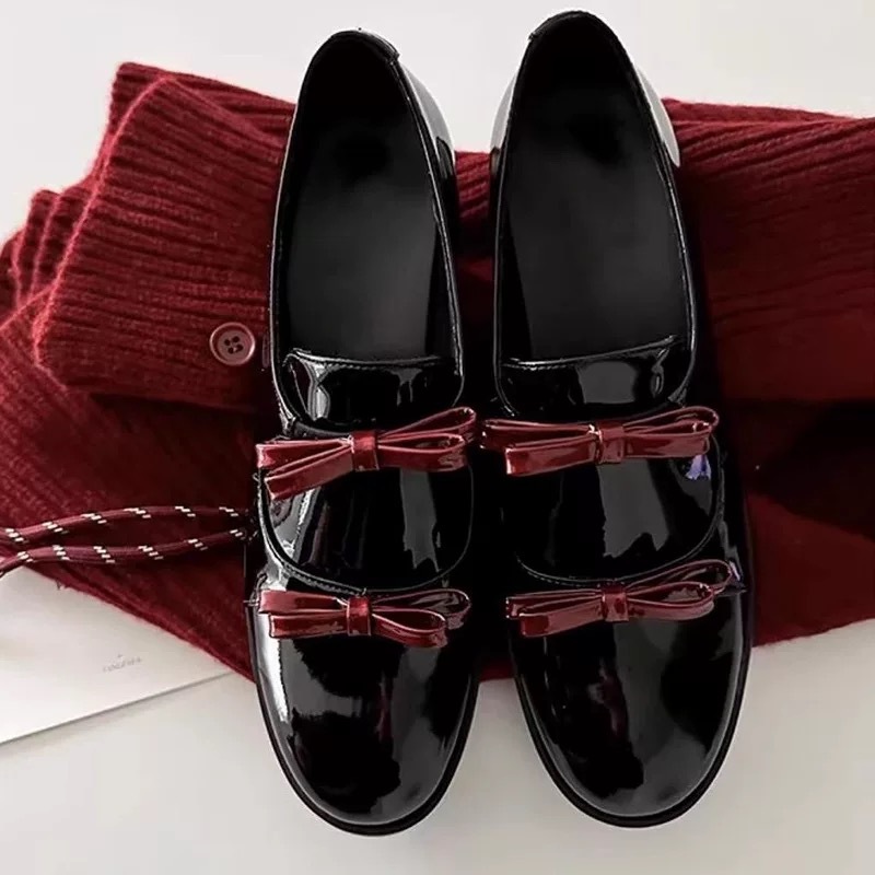 정품 가죽 한국 틈새 디자인 더블 벨트 활 깊은 입 로퍼 작은 가죽 신발 여성의 가을과 겨울 새로운 올 매치 싱글 레이어 신발