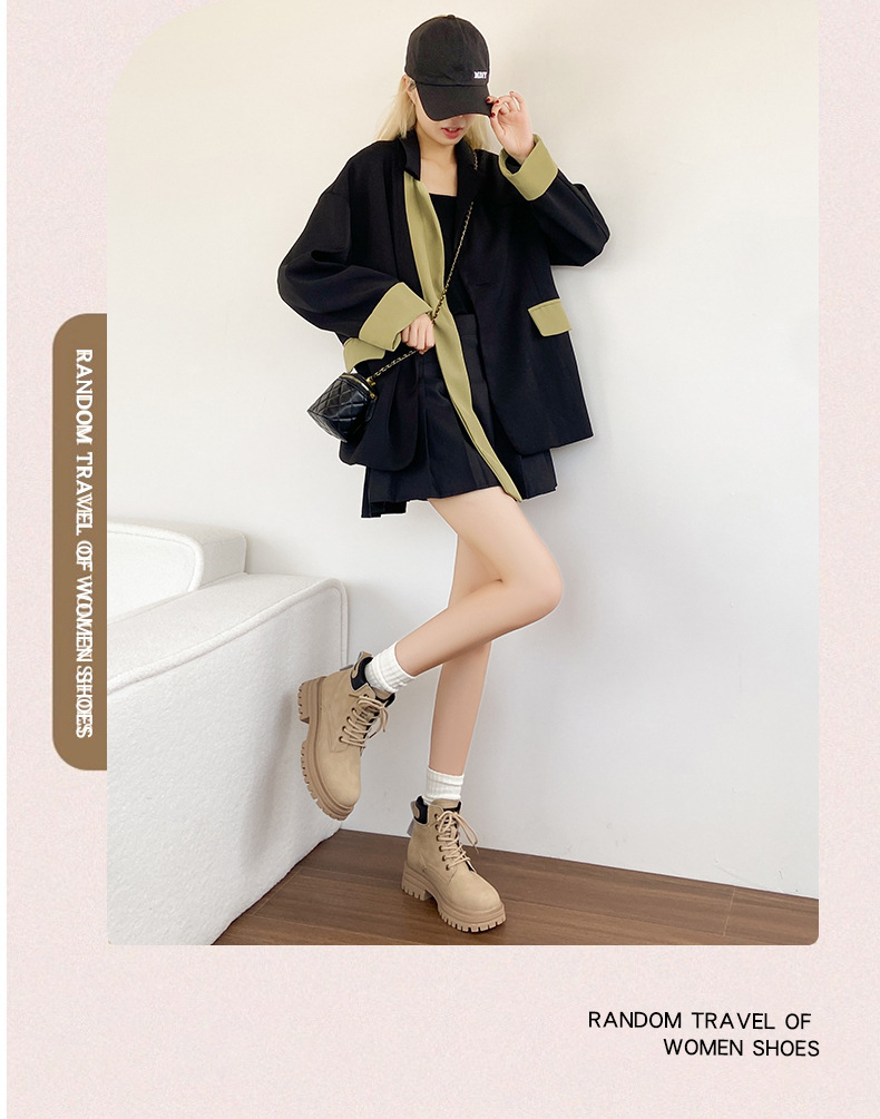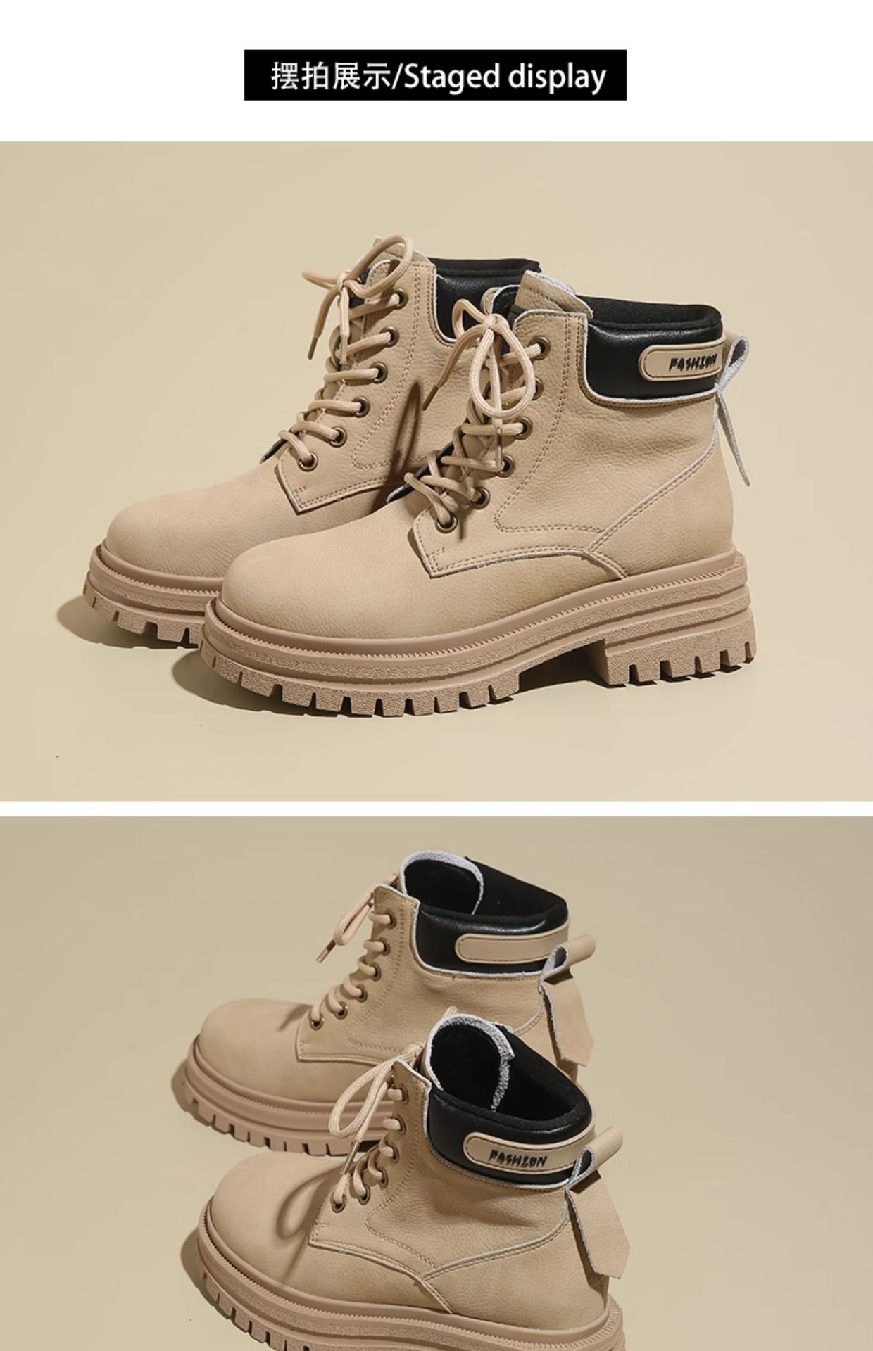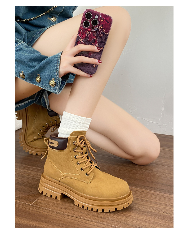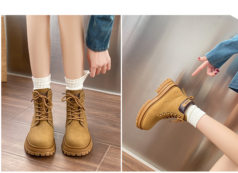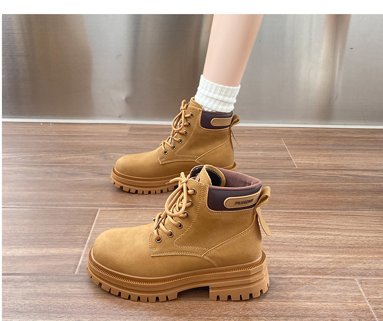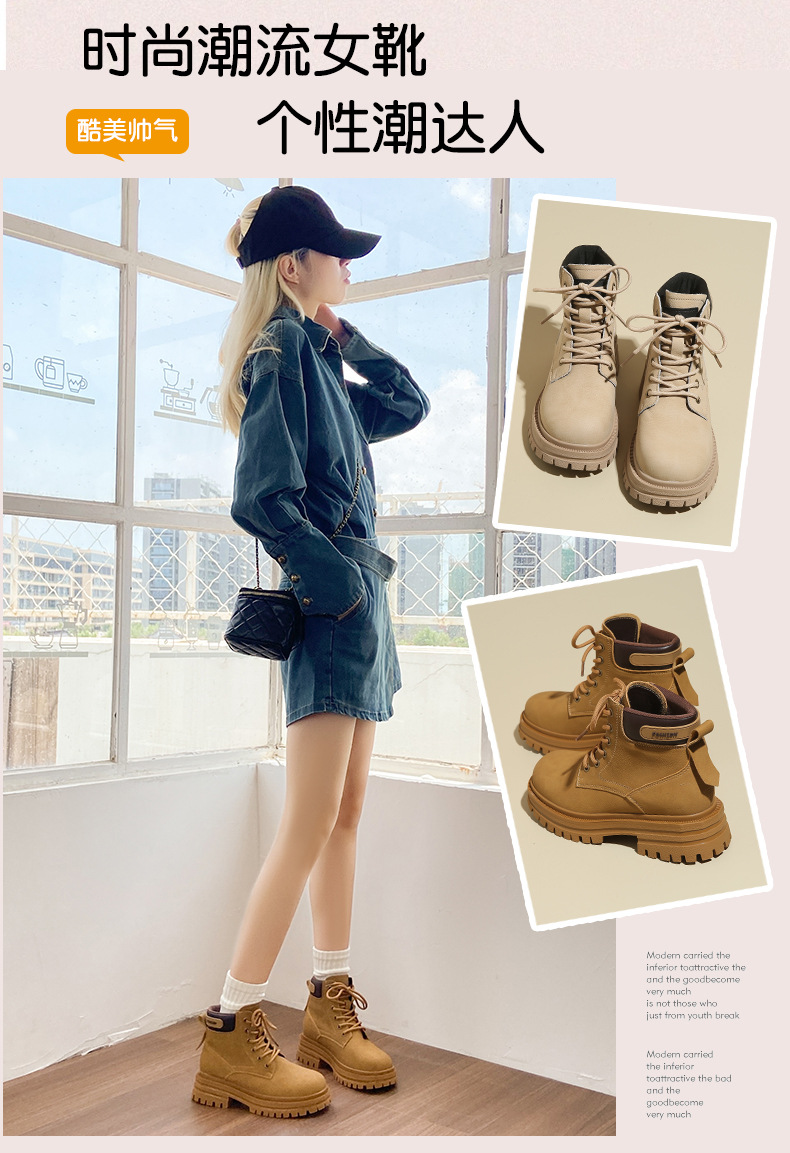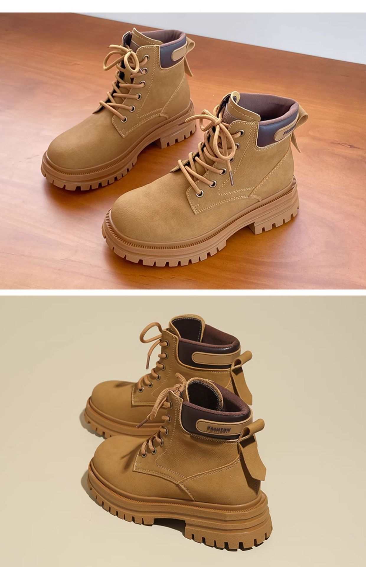 Bumblebee Martin 부츠 여성 정품 가죽 빈티지 올 매치 쇼트 부츠 두꺼운 밑창 부츠 증가 폭발성 등산 킥 나쁜 대황 부츠