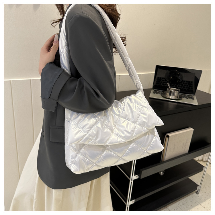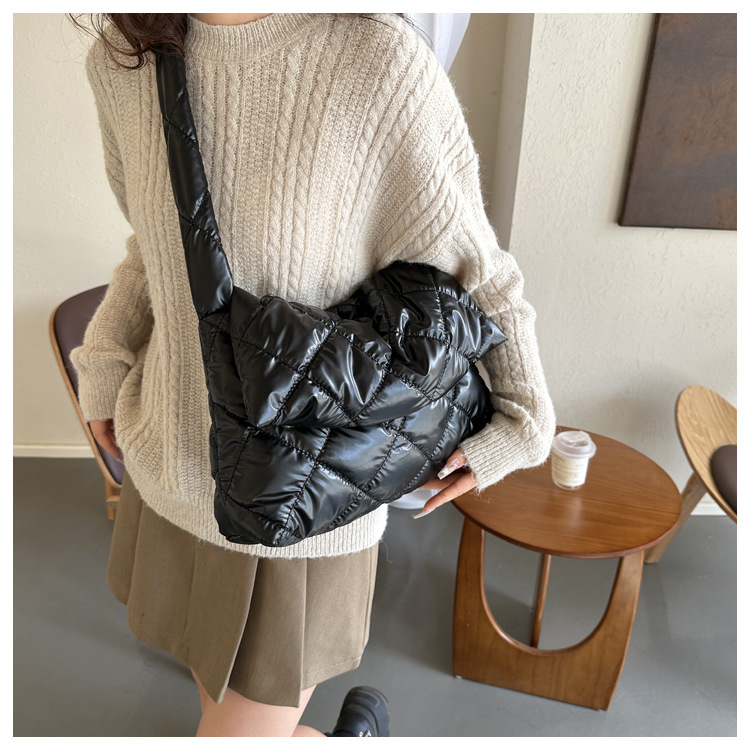 2024 가을과 겨울 새로운 어깨 가방 구름 주름 캐주얼 독특한 대용량 면화 가방 크로스 바디 여성용 가방 통근