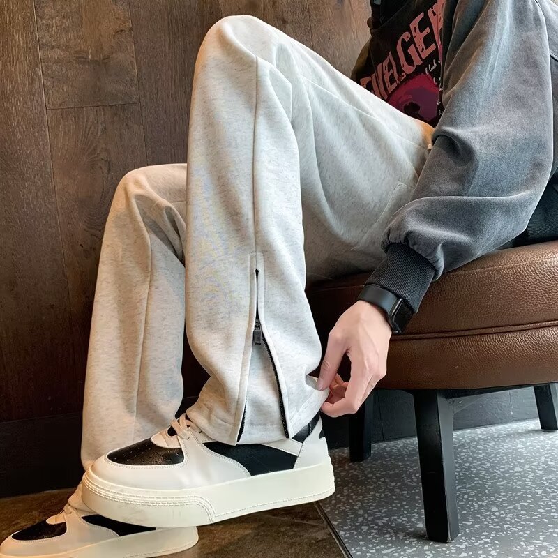 Wei Pants 남자의 봄 디자인 지퍼 다리 스포츠 팬츠 트렌디 한 브랜드 플루토늄 핸섬 느슨한 직선 캐주얼 팬츠스토어 가기