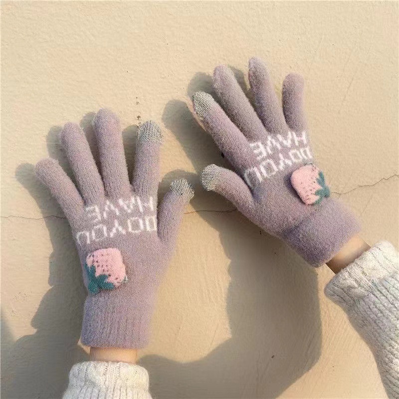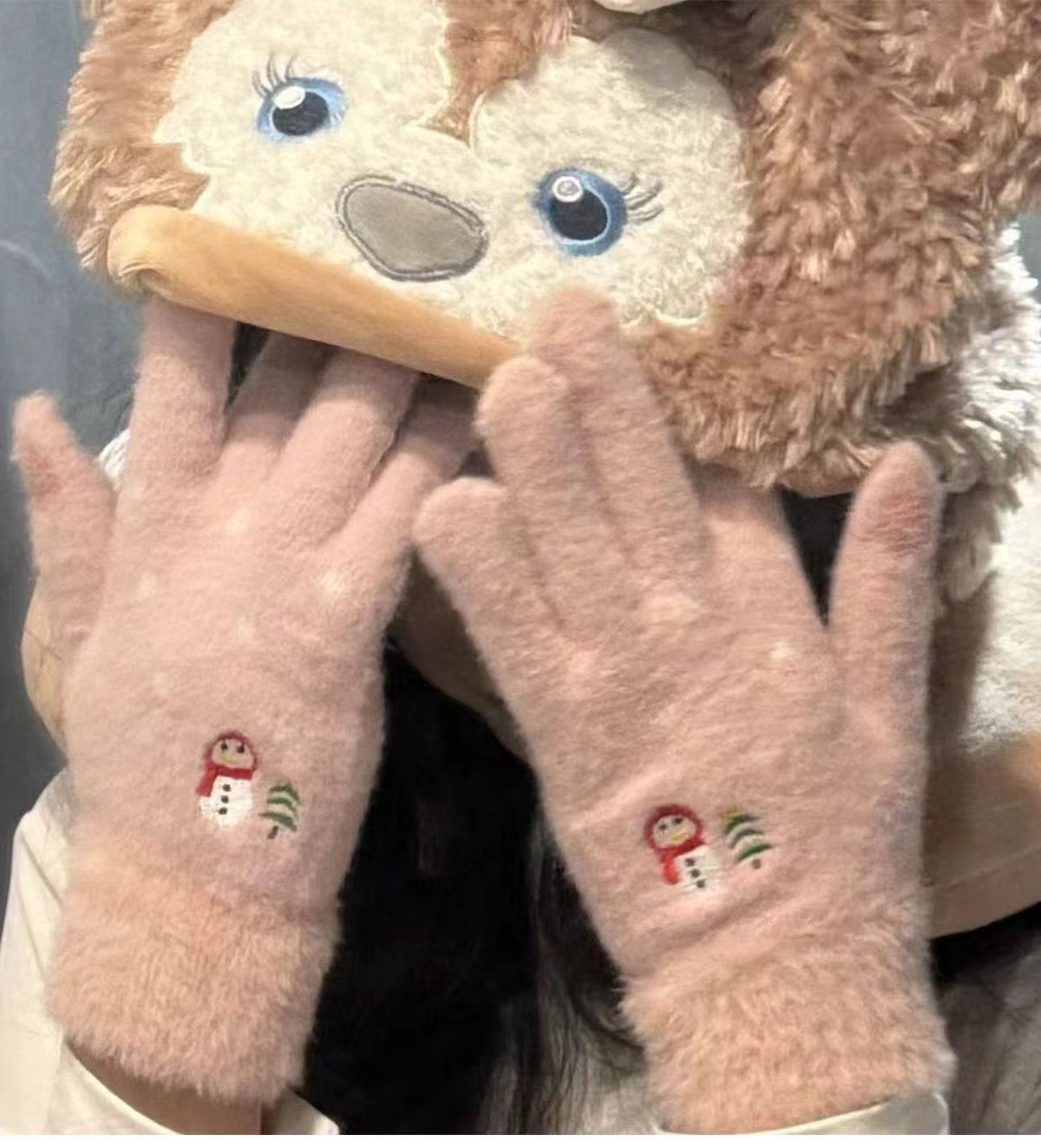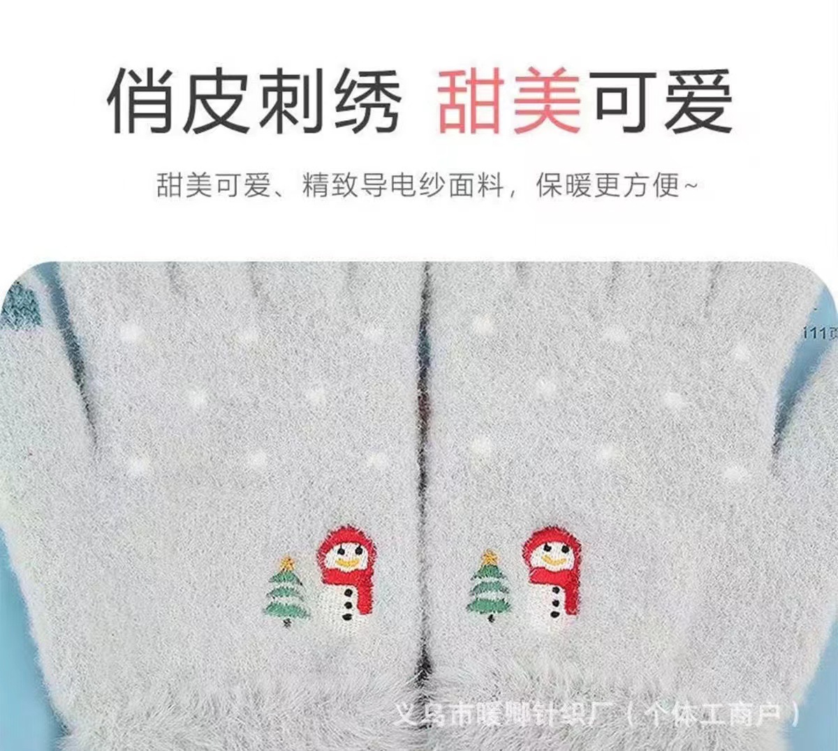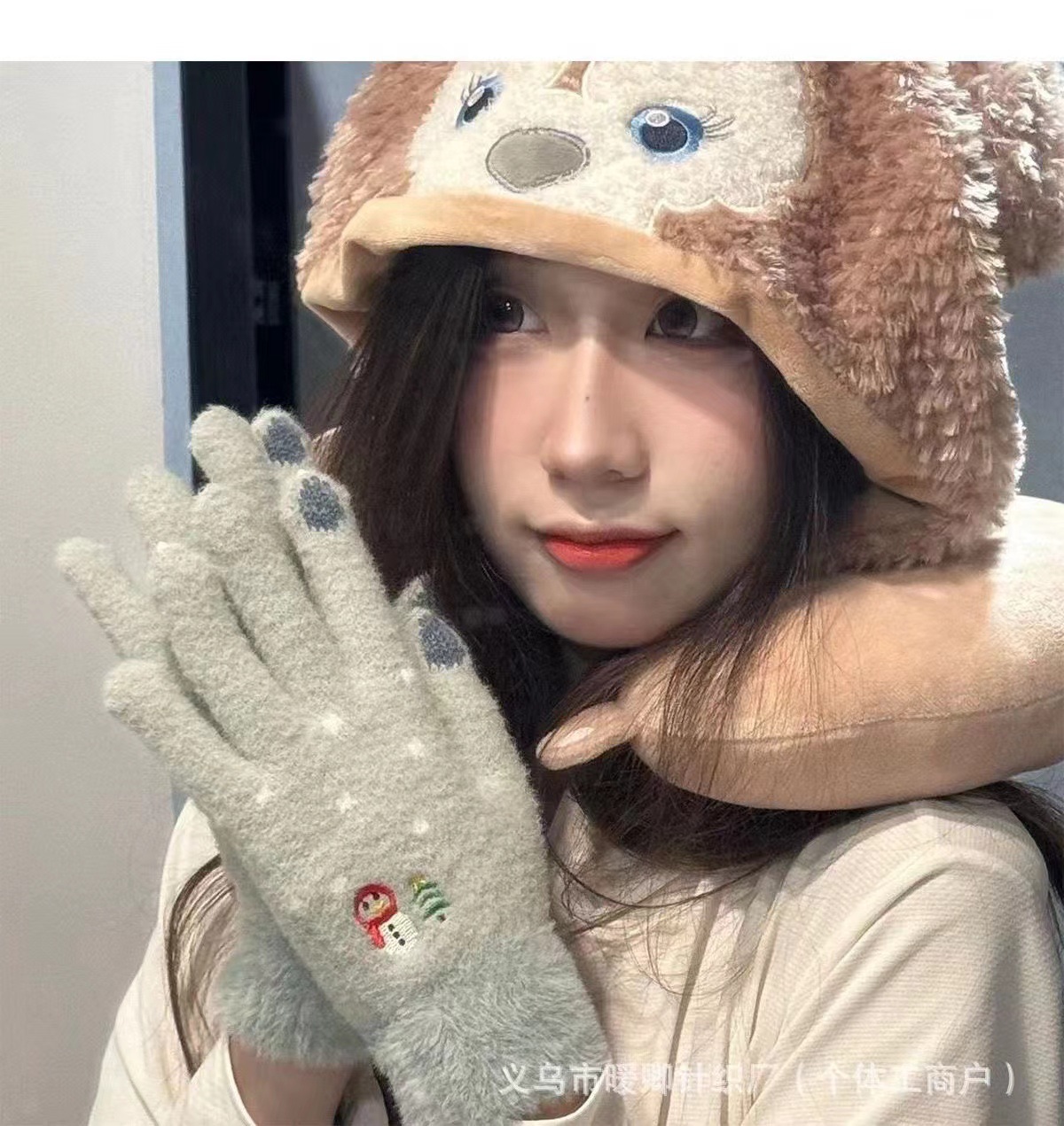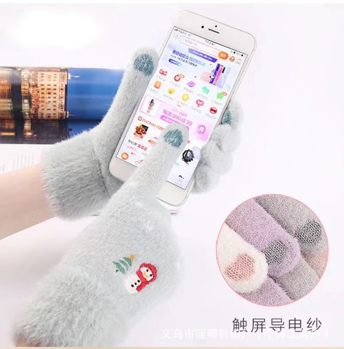 봉제 장갑 세트 가을과 겨울 숙녀 기모 니트 장갑 따뜻한 차가운 두꺼운 만화 귀여운 장갑 도매스토어 가기