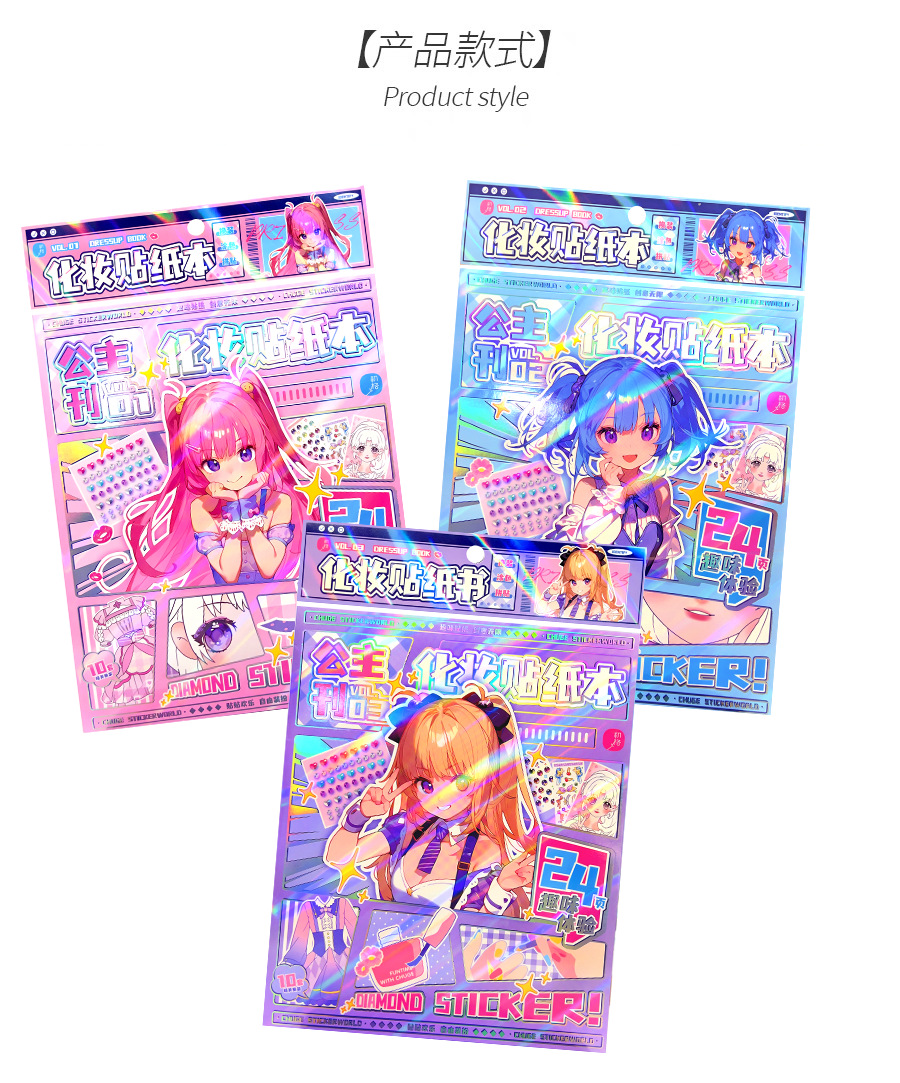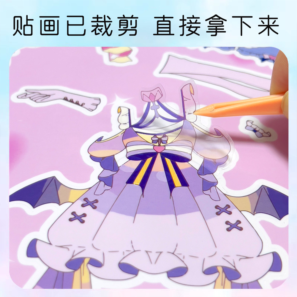 공주 메이크업 원피스 네일 메이크업 원피스 업 만화 귀여운 아름다운 소녀 색칠 장식 스티커 소재스토어 가기