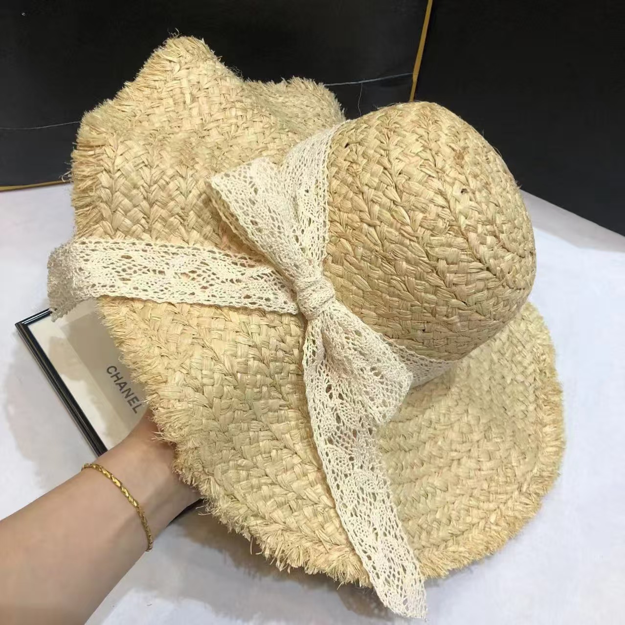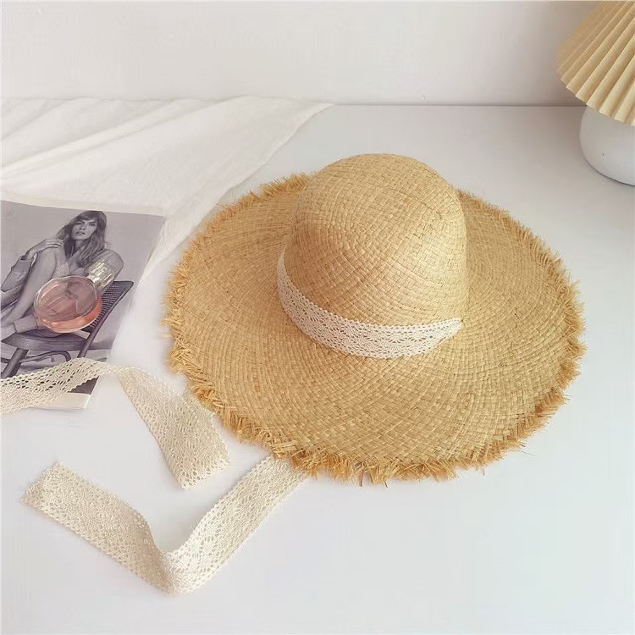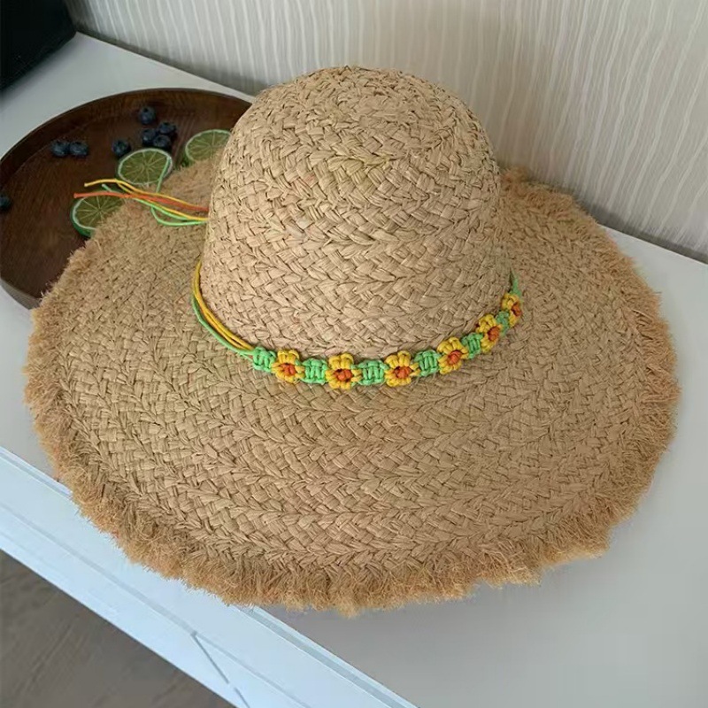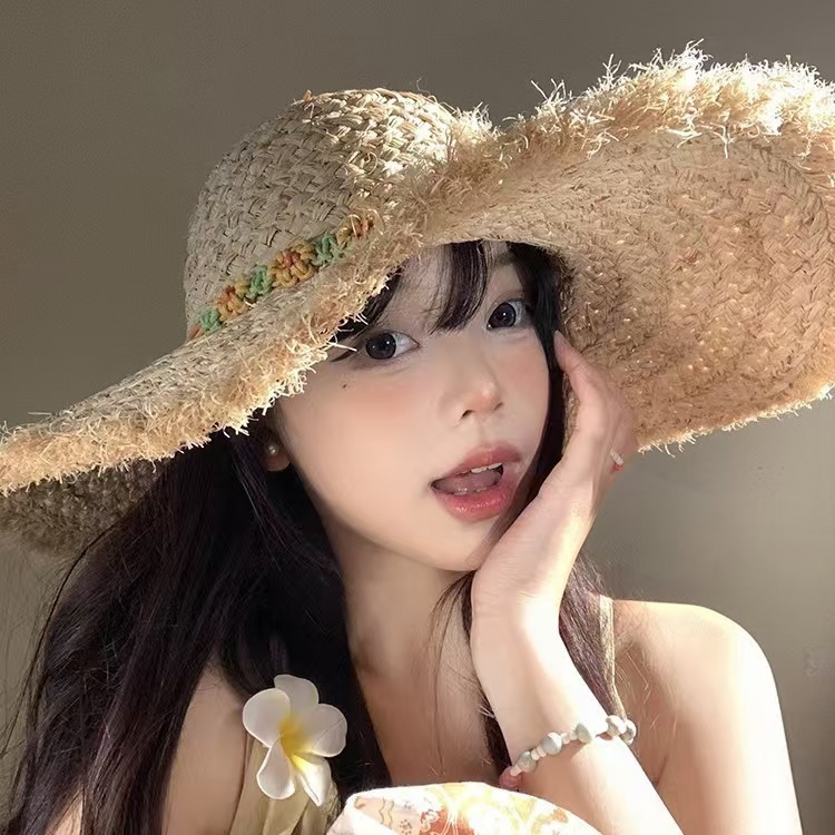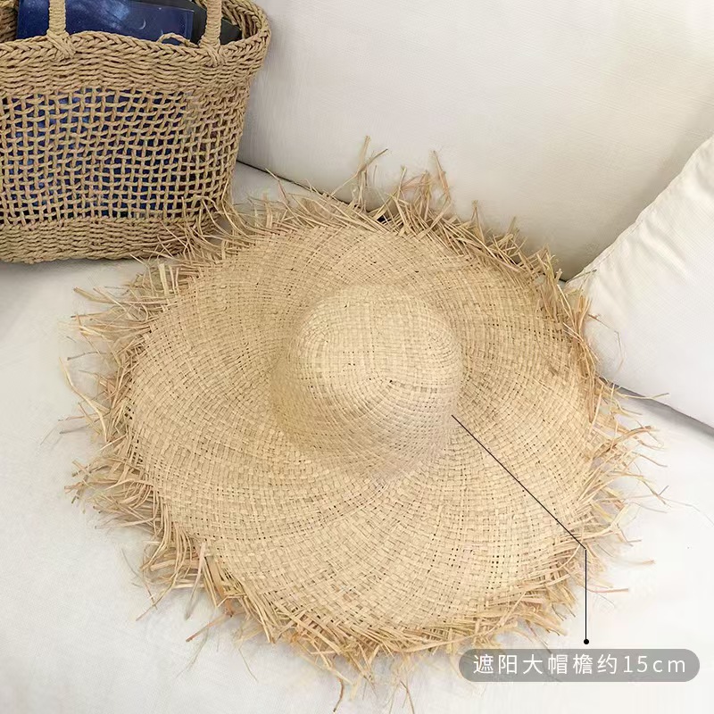 여름 Ins 스타일 대형 브림 래피 스트로 모자 해변 휴일 태양 보호 및 양산 모자를 위한 여성용 비치 모자스토어 가기