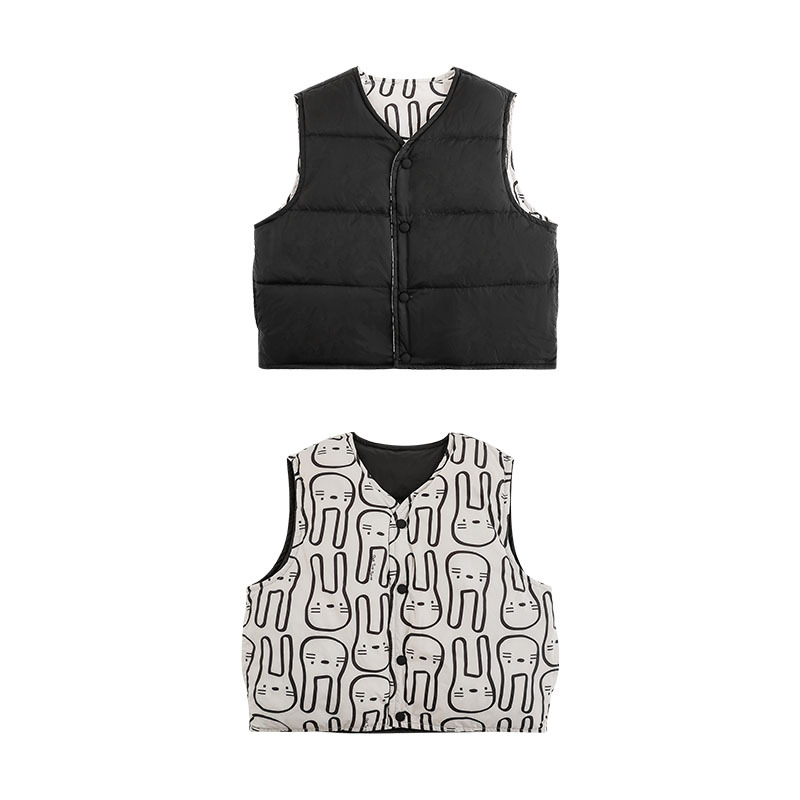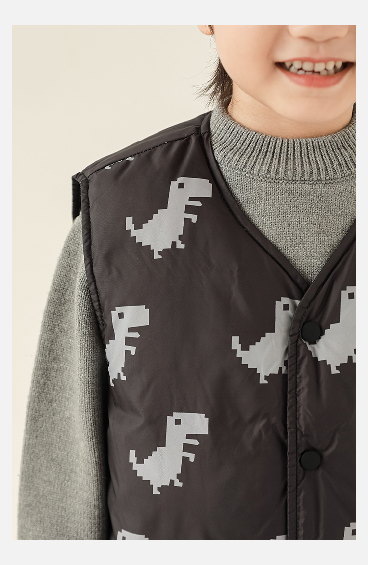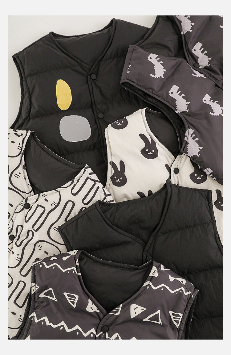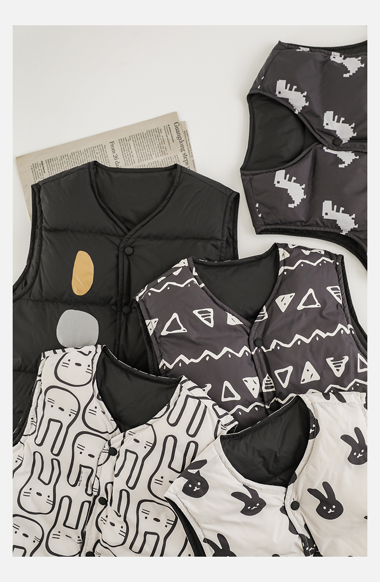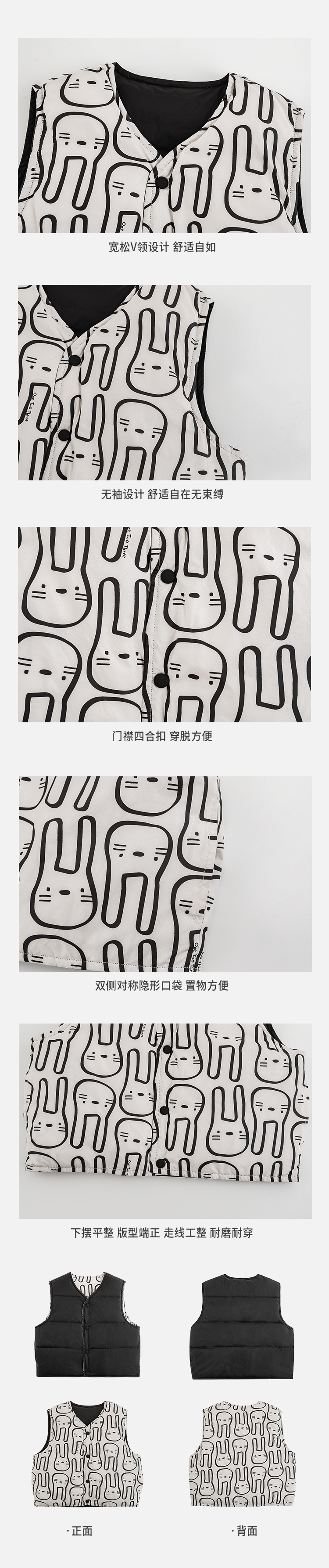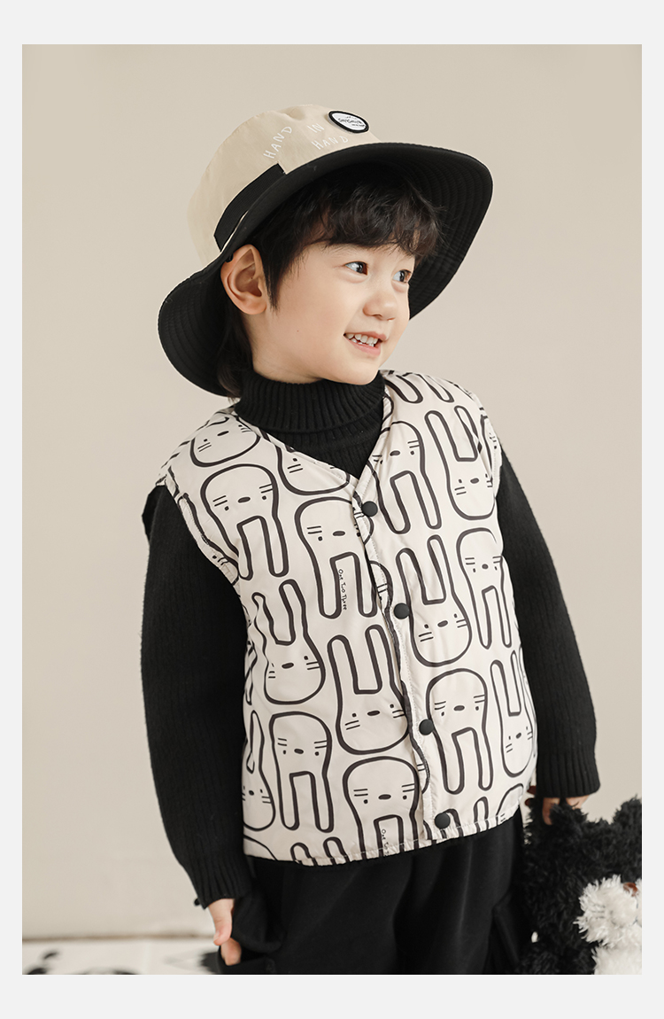 Wulibuyi 소년 2025 새로운 만화 낙서 양면 조끼 겨울 어린이 귀여운 따뜻한 조끼 재킷