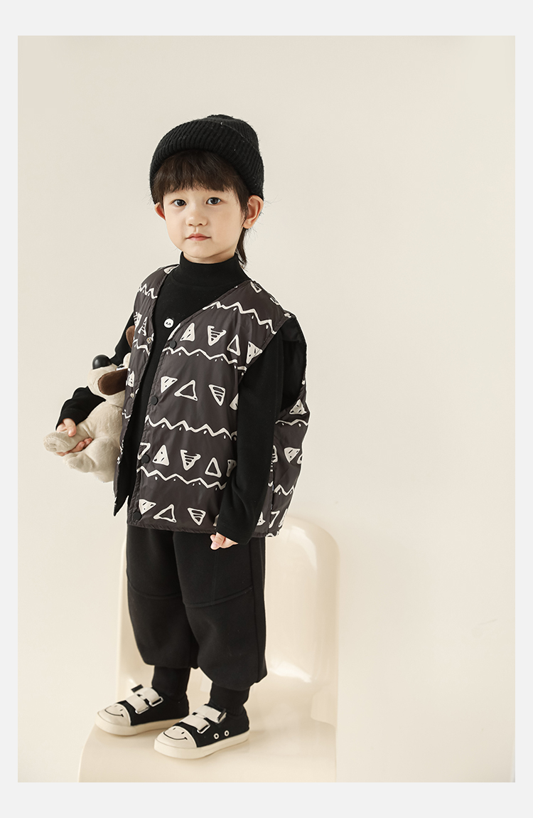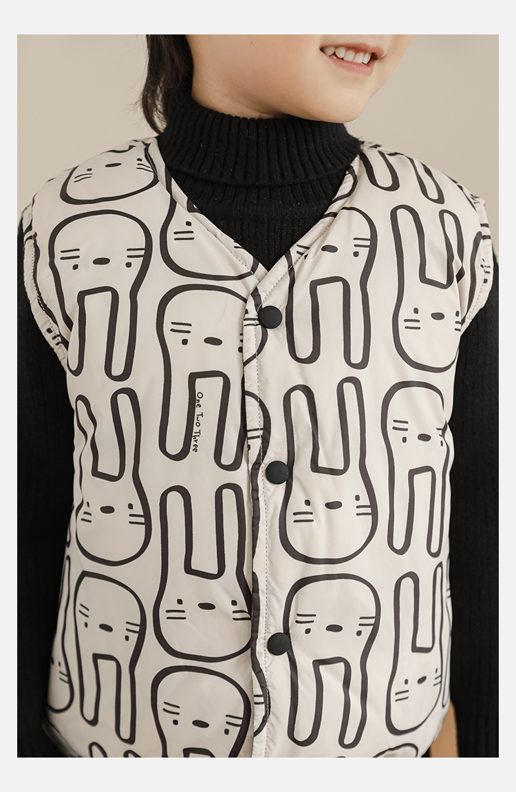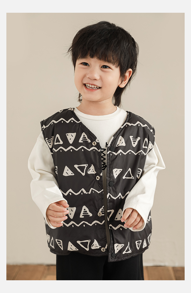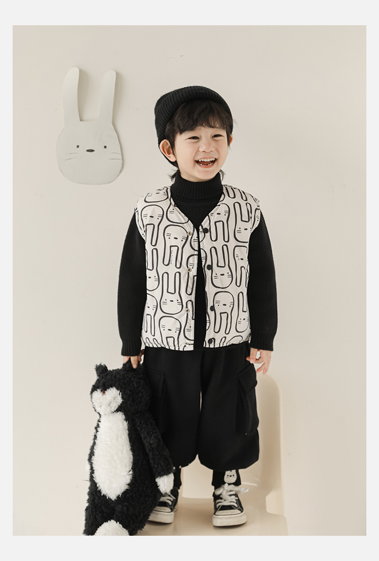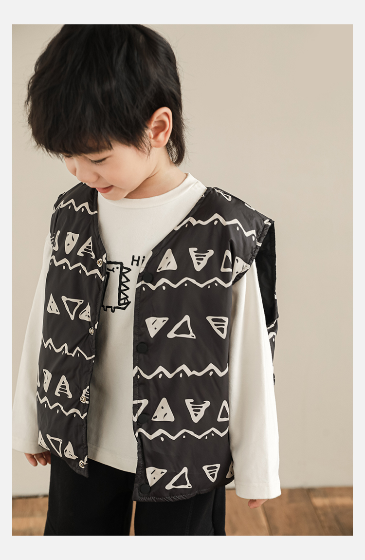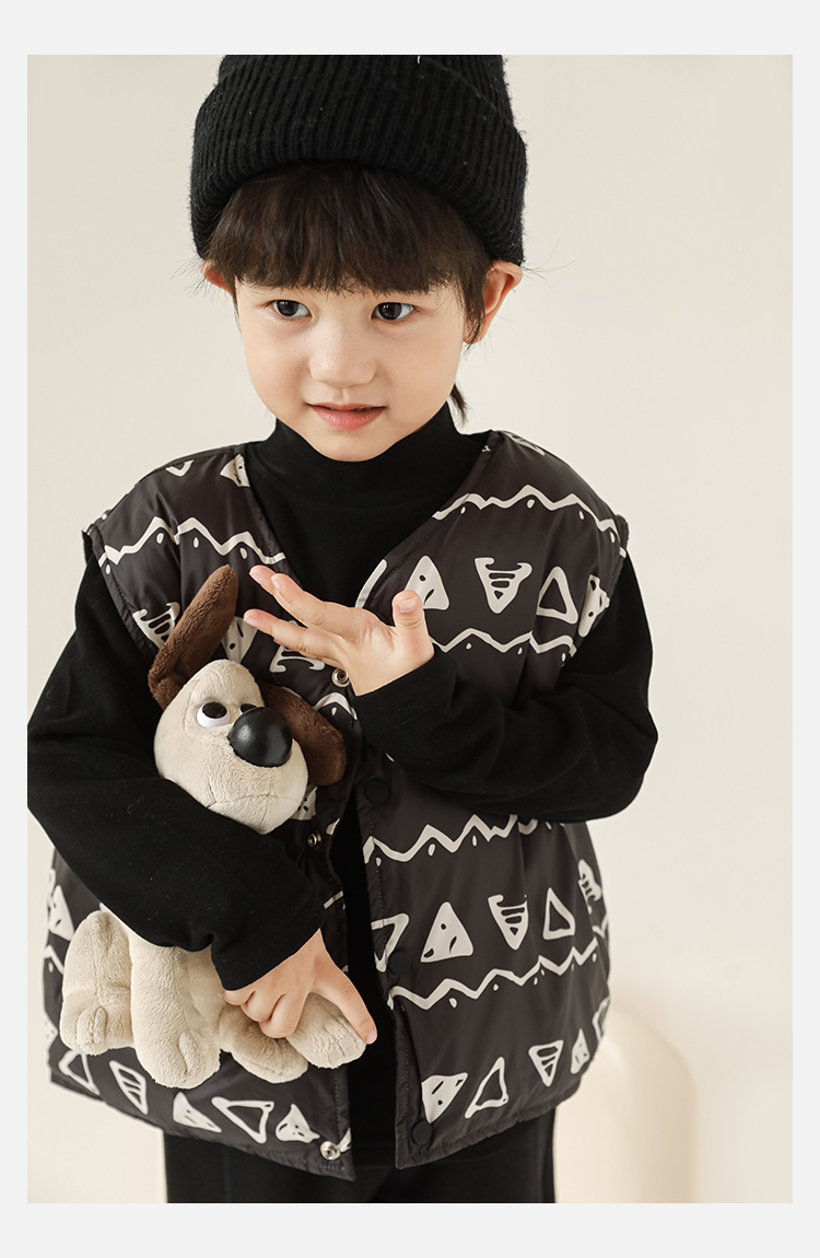 Wulibuyi 소년 2025 새로운 만화 낙서 양면 조끼 겨울 어린이 귀여운 따뜻한 조끼 재킷