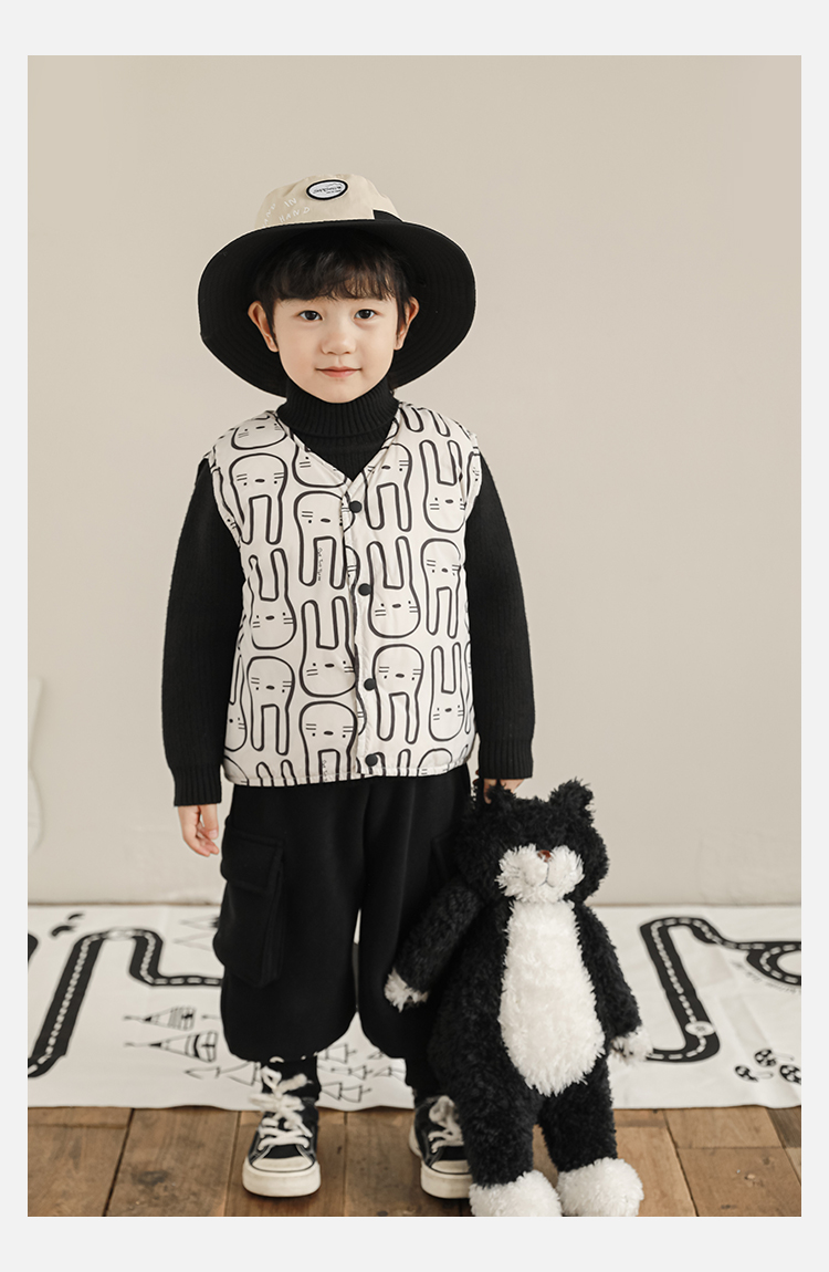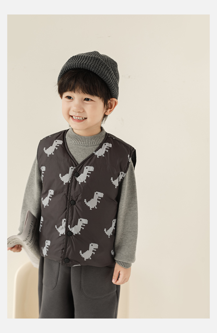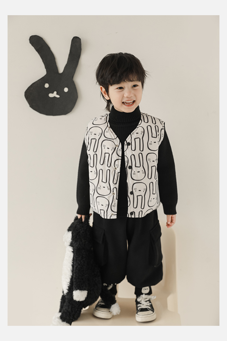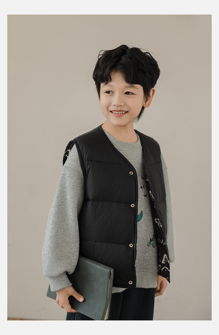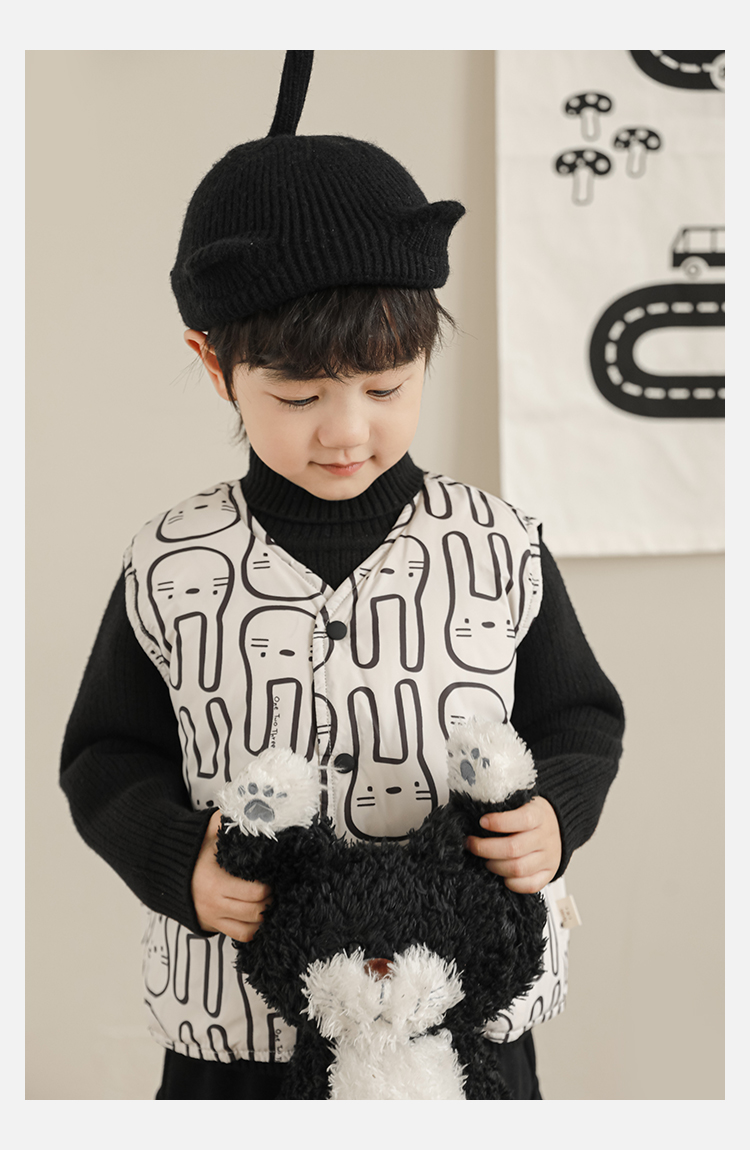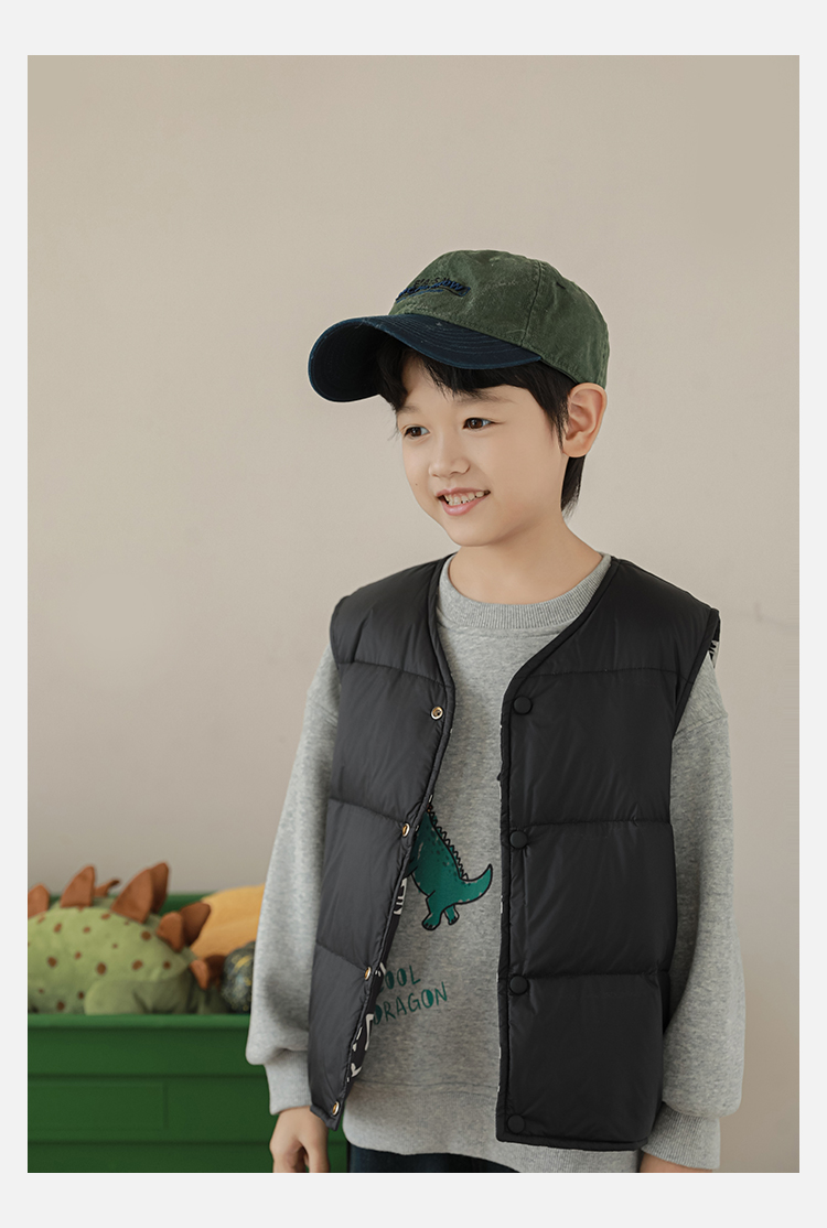 Wulibuyi 소년 2025 새로운 만화 낙서 양면 조끼 겨울 어린이 귀여운 따뜻한 조끼 재킷