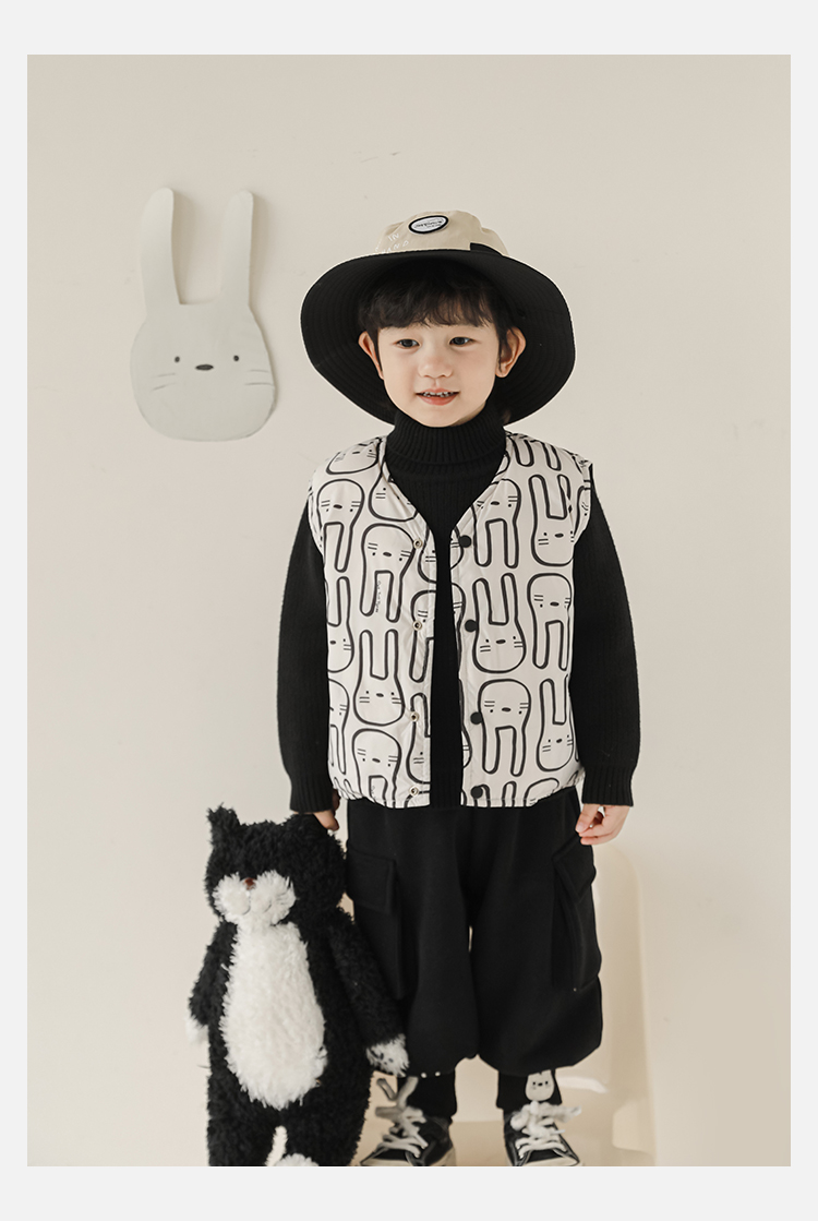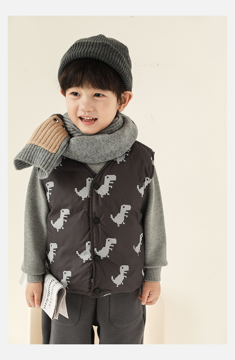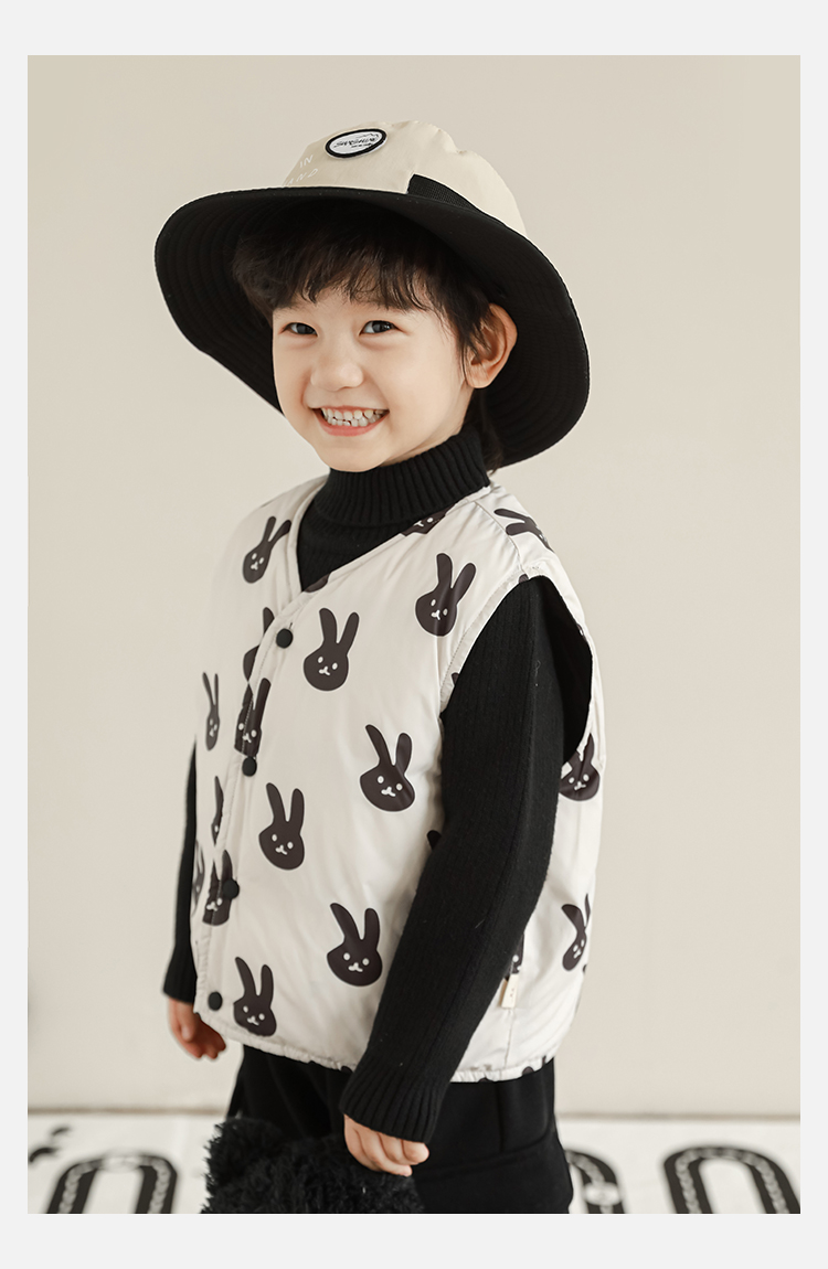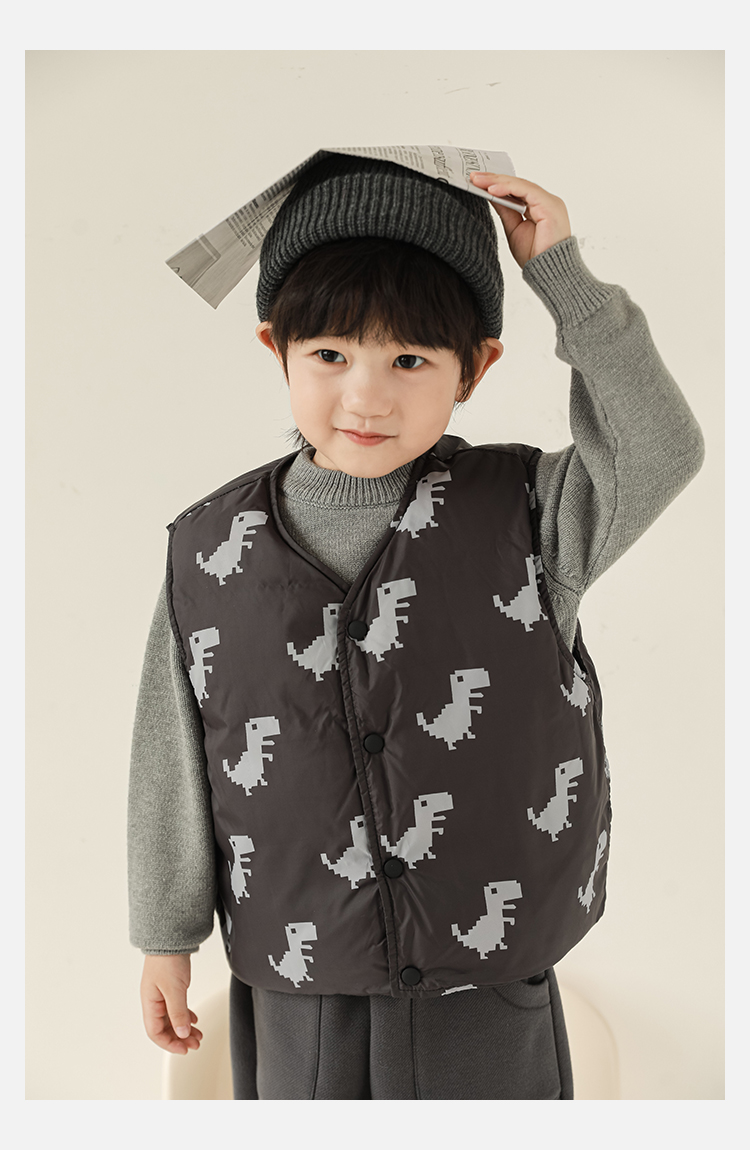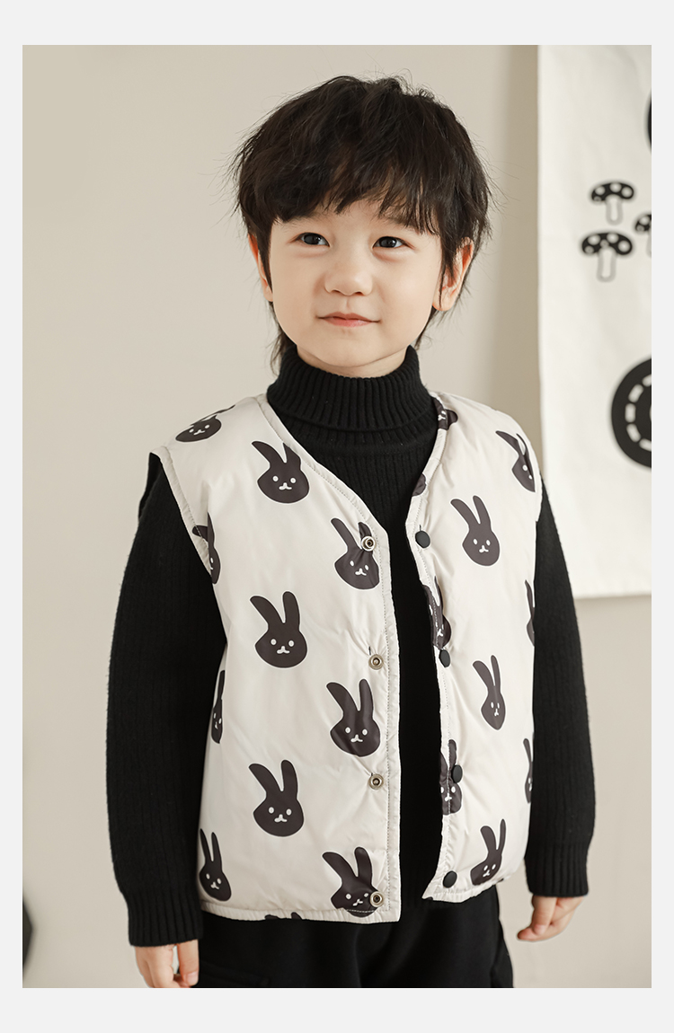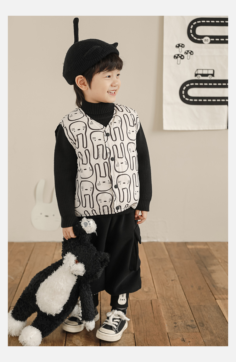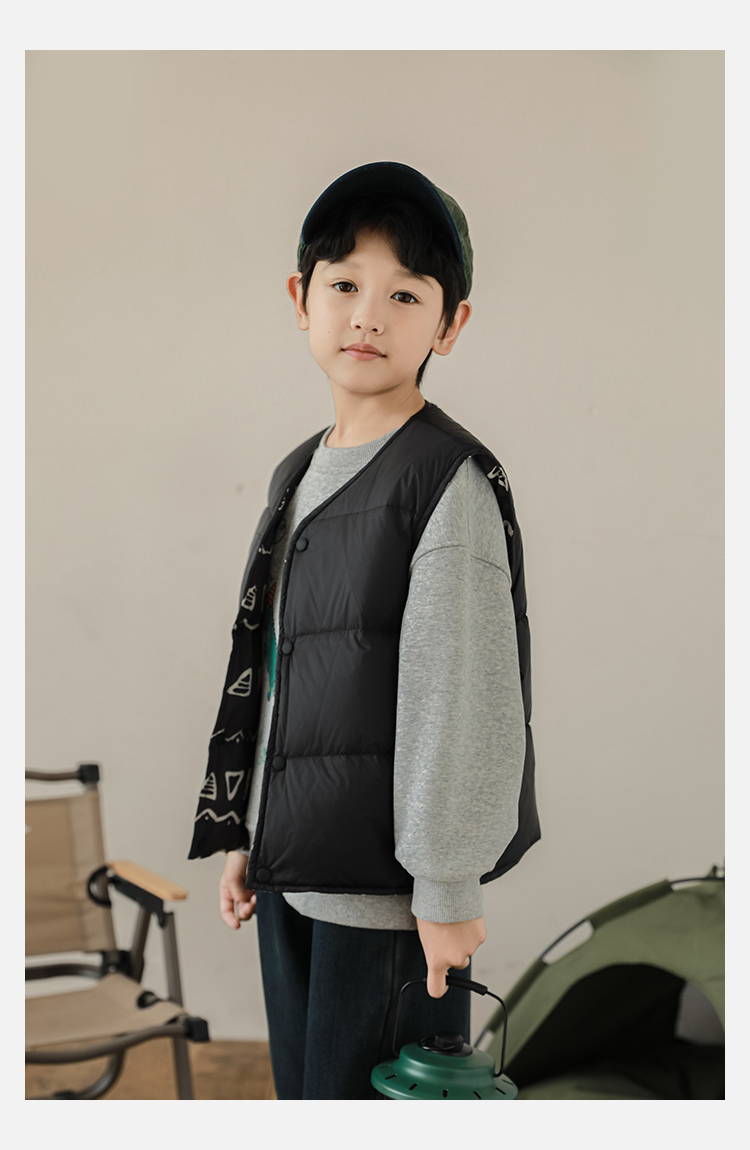 Wulibuyi 소년 2025 새로운 만화 낙서 양면 조끼 겨울 어린이 귀여운 따뜻한 조끼 재킷