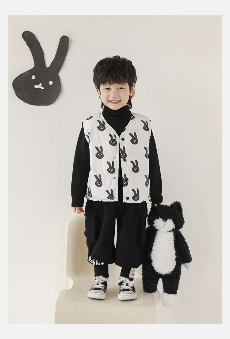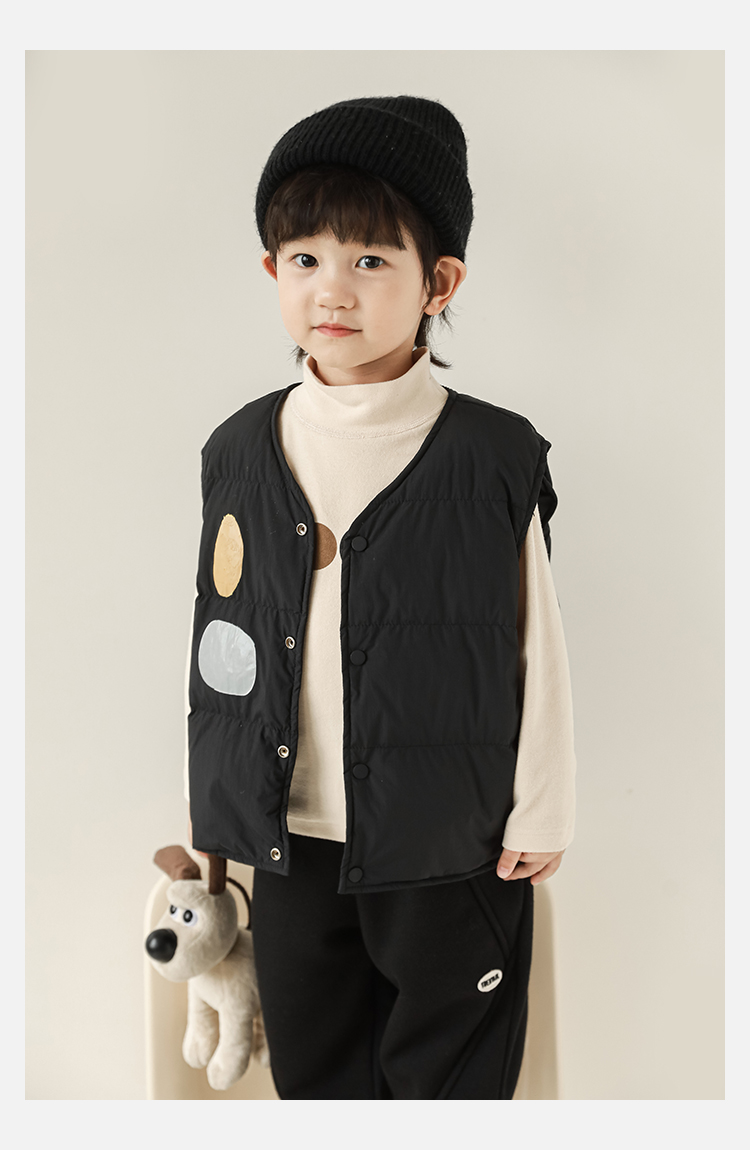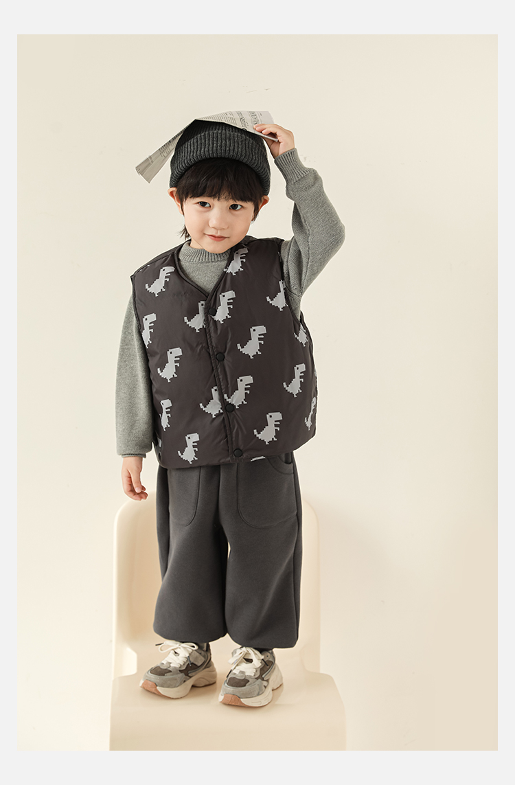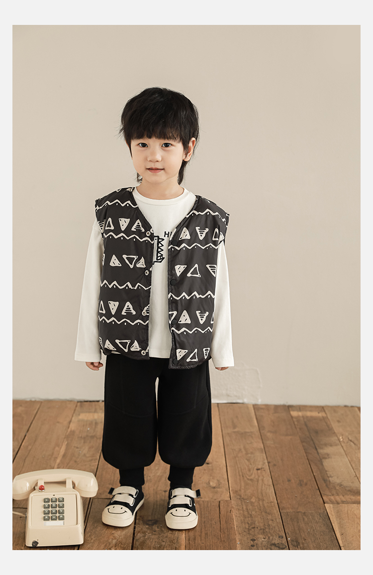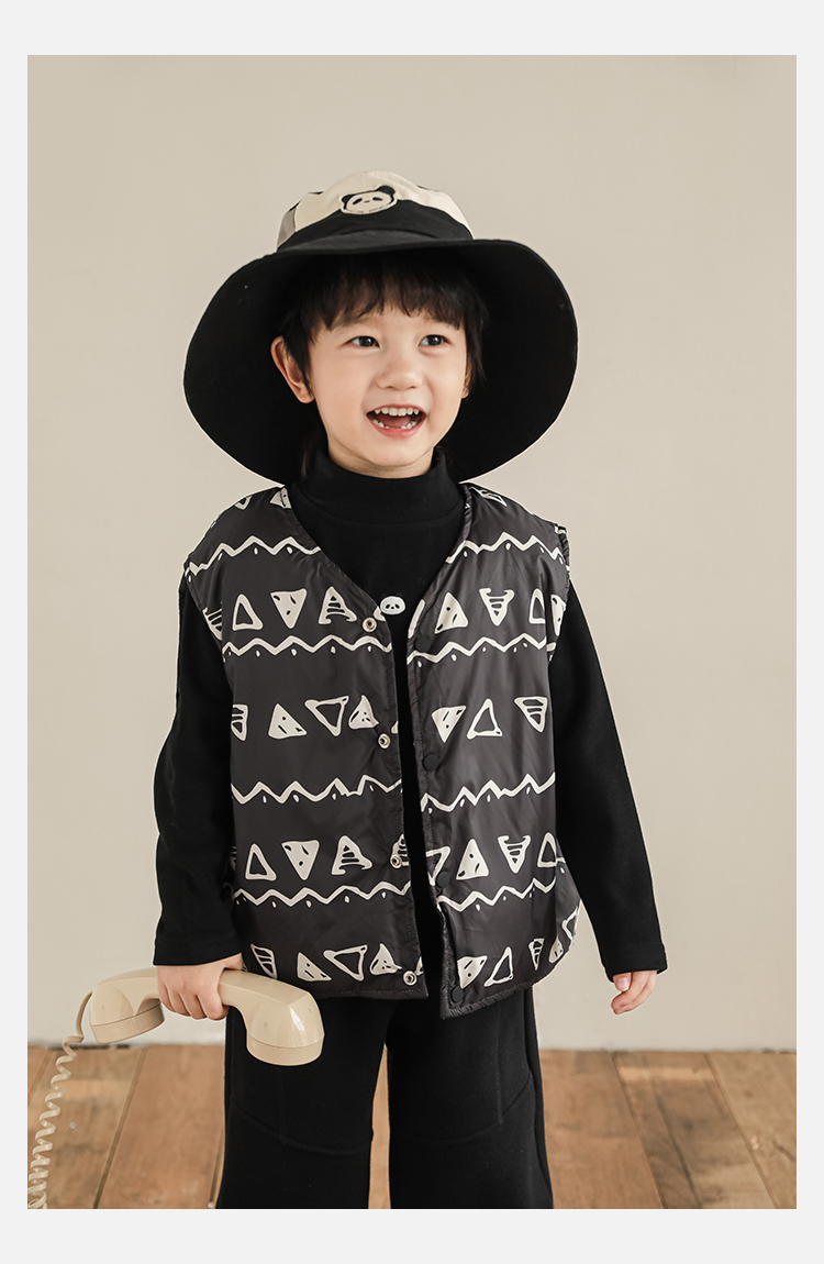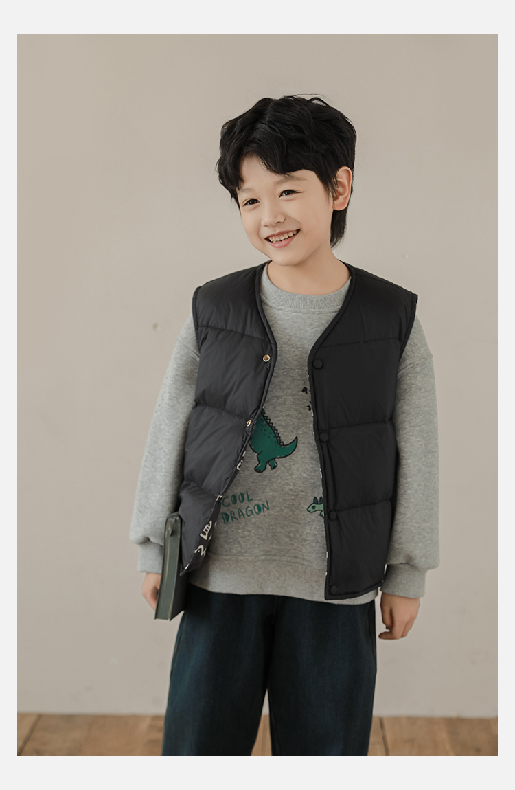 Wulibuyi 소년 2025 새로운 만화 낙서 양면 조끼 겨울 어린이 귀여운 따뜻한 조끼 재킷
